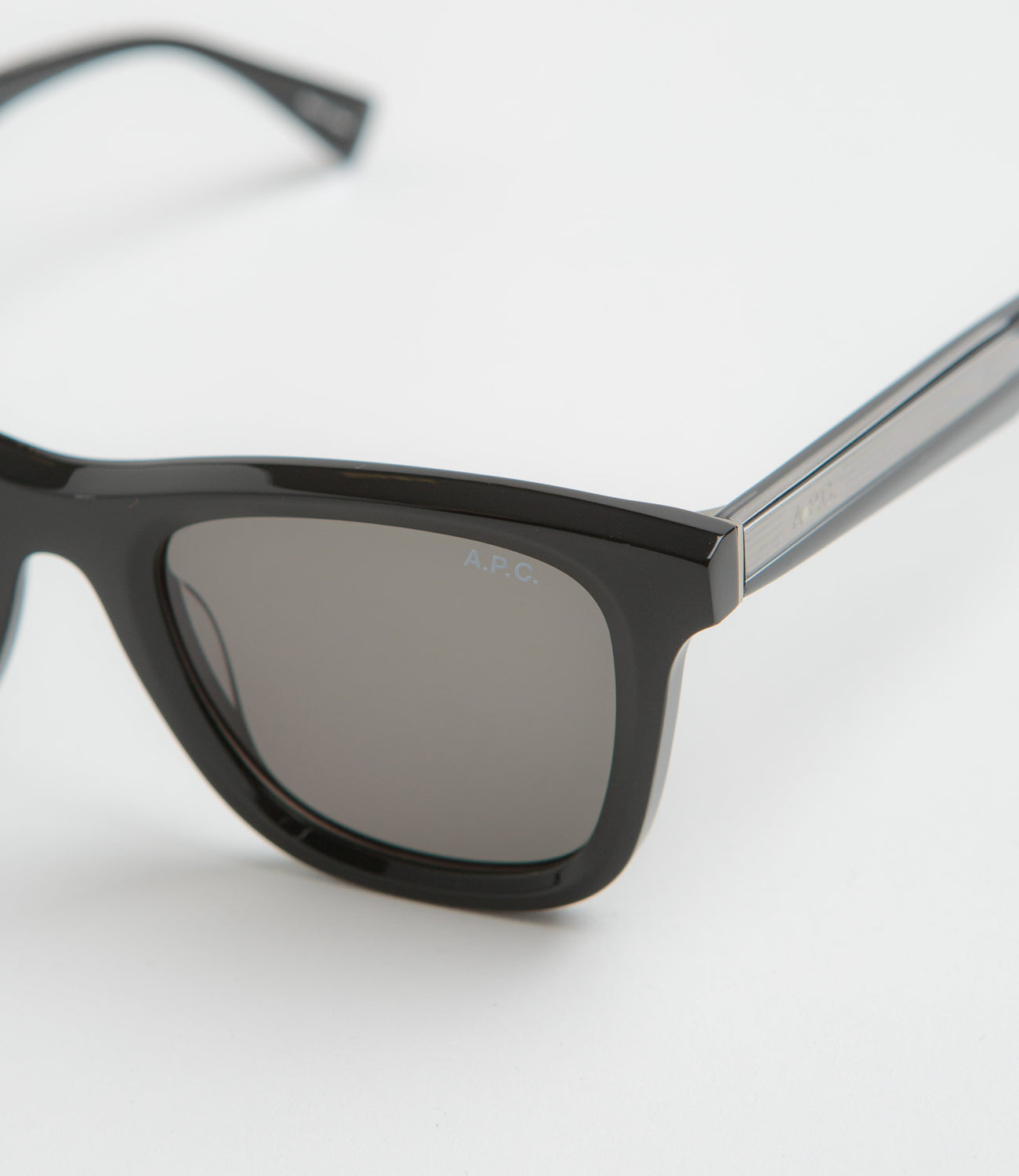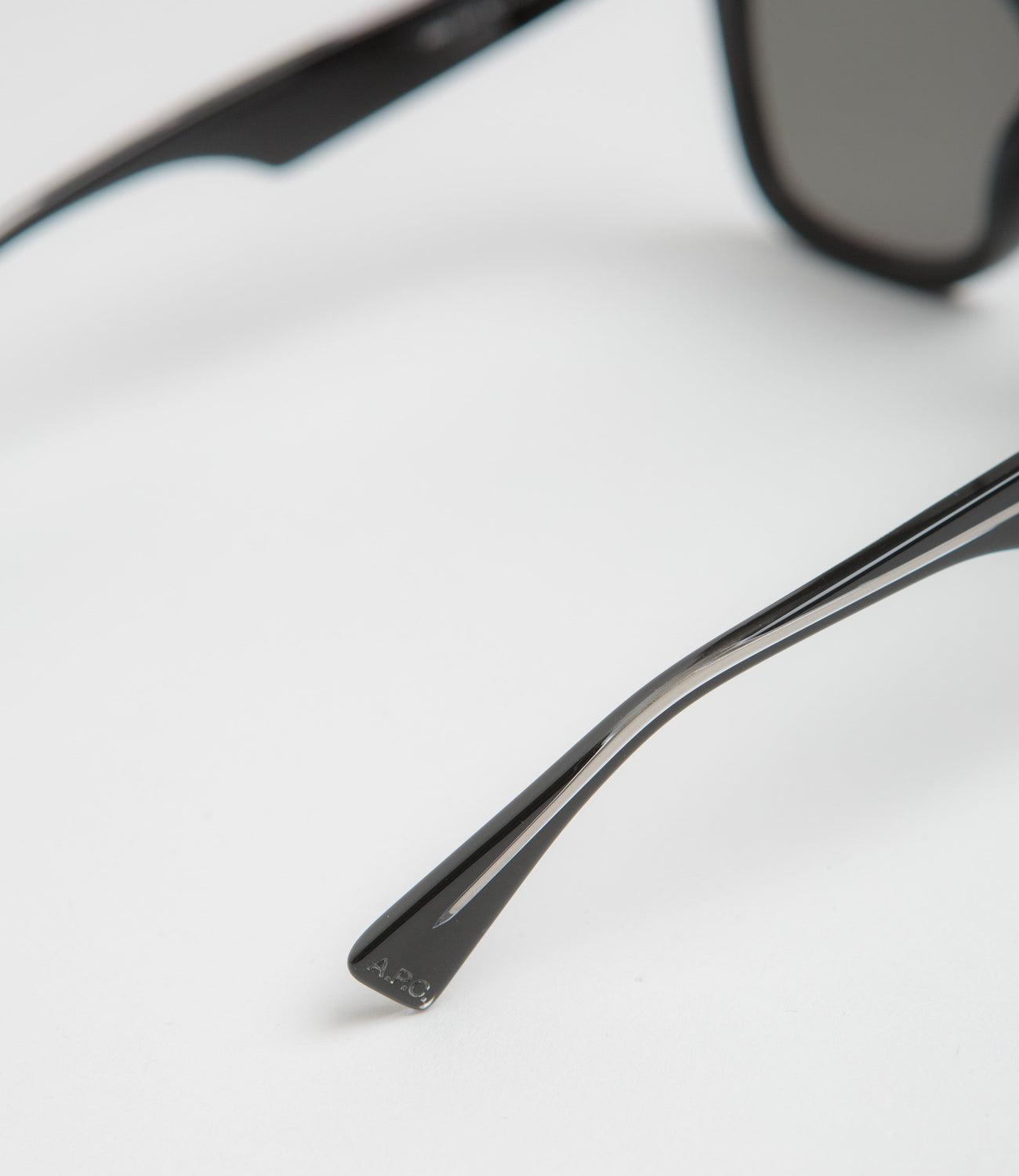 A.P.C. John Sunglasses in Black. Crafted from acetate with metal frames, these A.P.C. sunglasses are designed with smokey lenses and additional UV protection. Finished in black with an engraved logo, Category 3 lens protection and prescription lens compatibility.