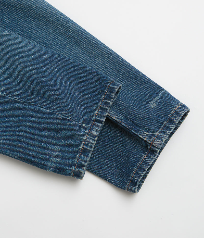 A.P.C. Martin Jeans in Washed Indigo. Designed with a vintage cut and a high-rise, these A.P.C. jeans are crafted from 100% organic cotton denim. Featuring a stonewashed construction, a belt loop waist, contrast stitching and a zippered fly, these indigo A.P.C. jeans are finished with two side pockets, two rear pockets, a single coin pocket and a regular fit.