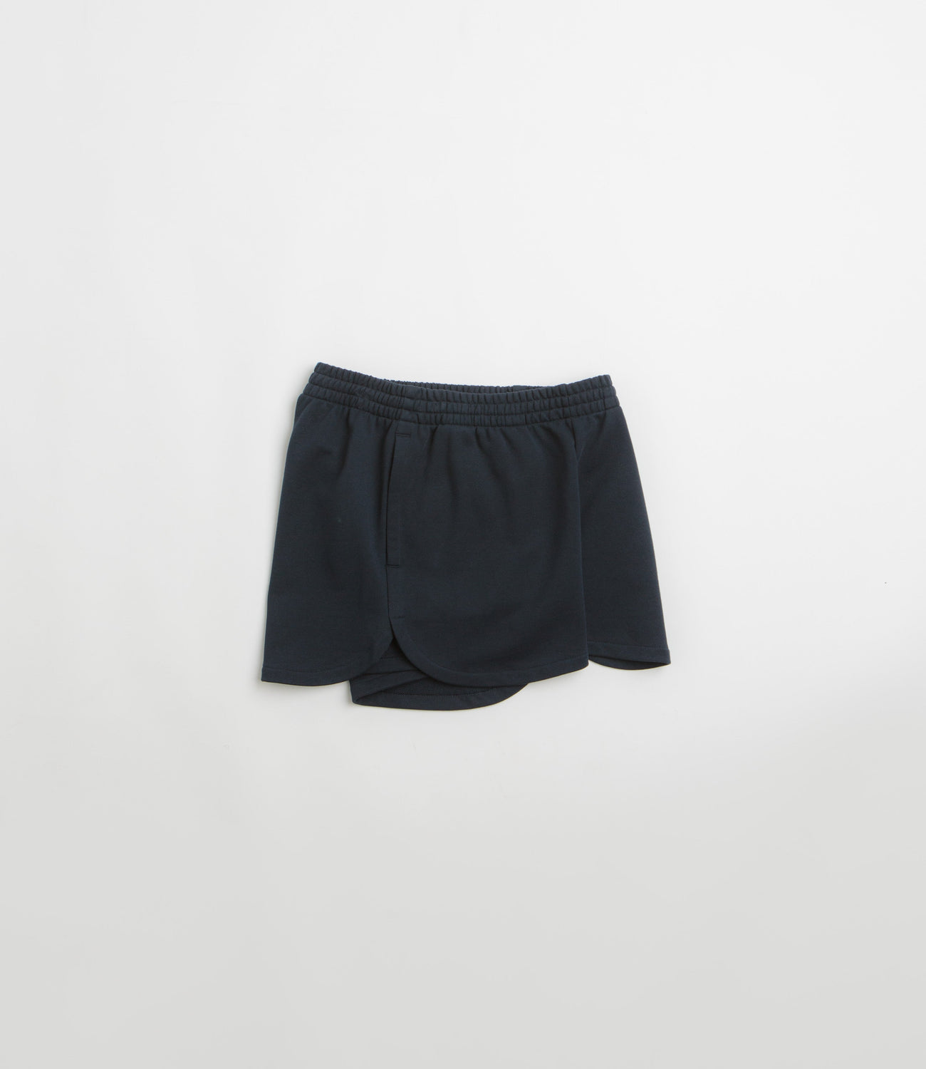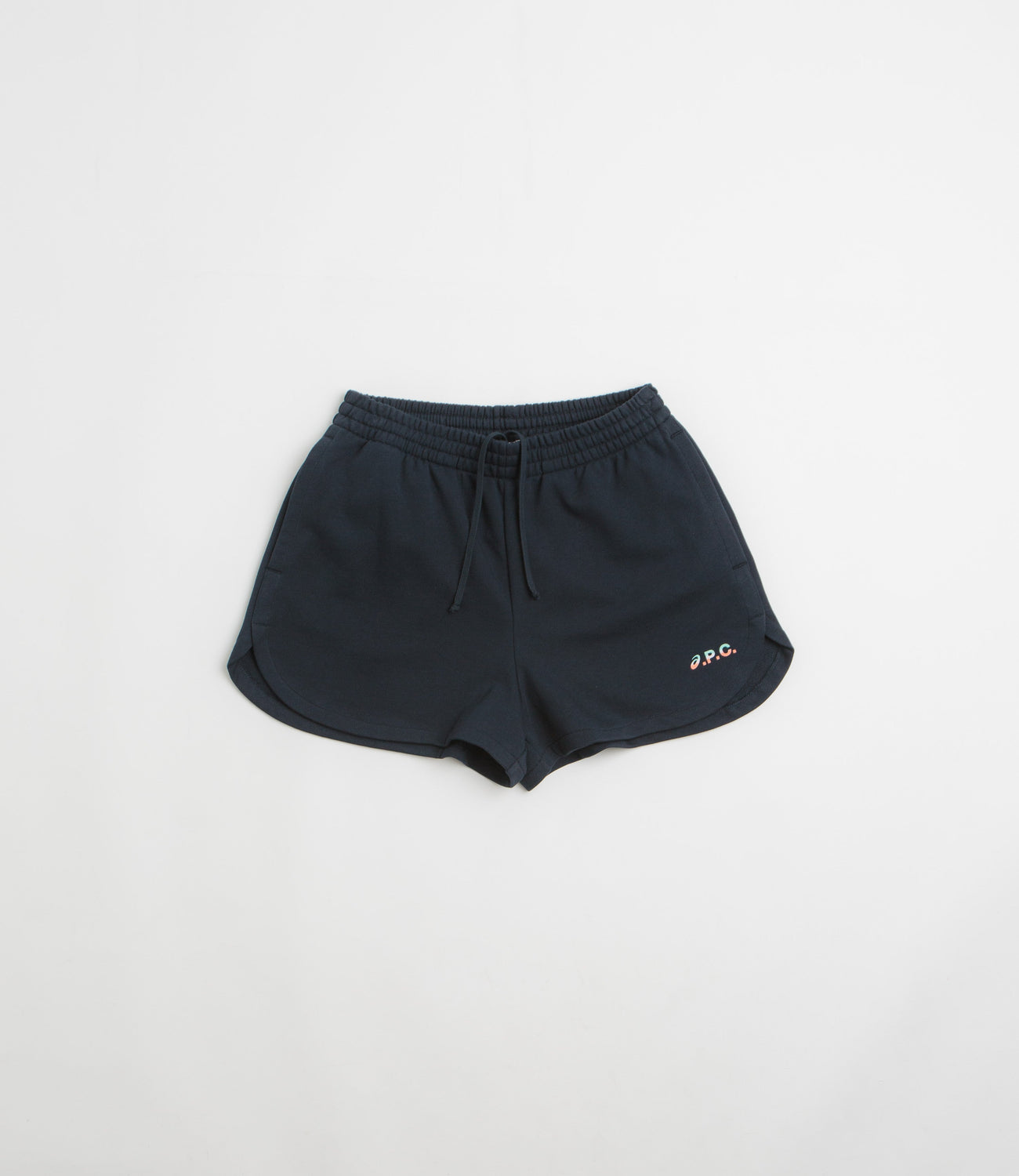 A.P.C. Rain Shorts in Dark Navy. Designed in collaboration with ASICS as part of a court-inspired collection, these above-knee A.P.C. shorts are crafted from 100% cotton. Featuring an elasticated drawcord waist and two side pockets, these navy A.P.C. shorts are finished with printed branding.