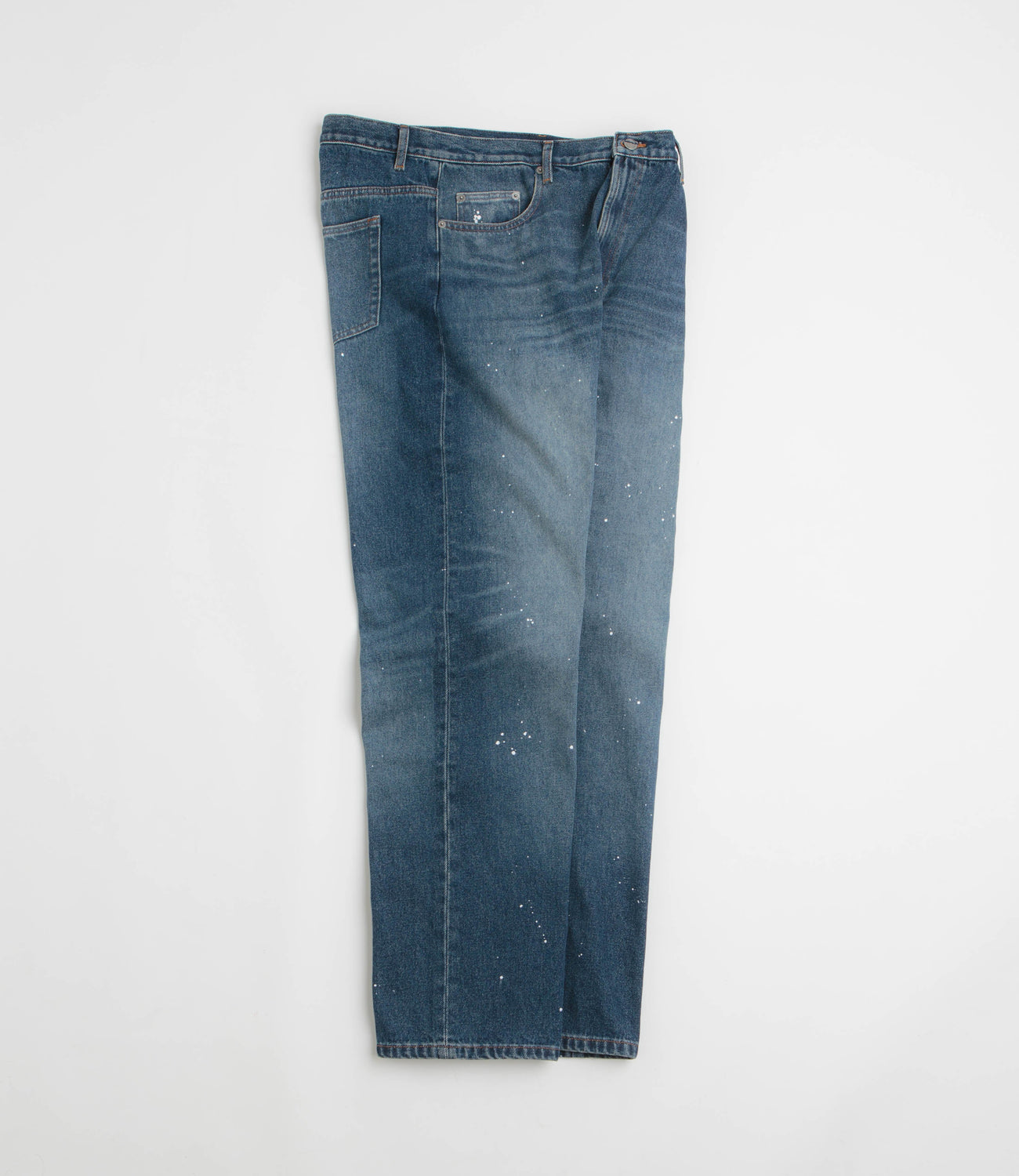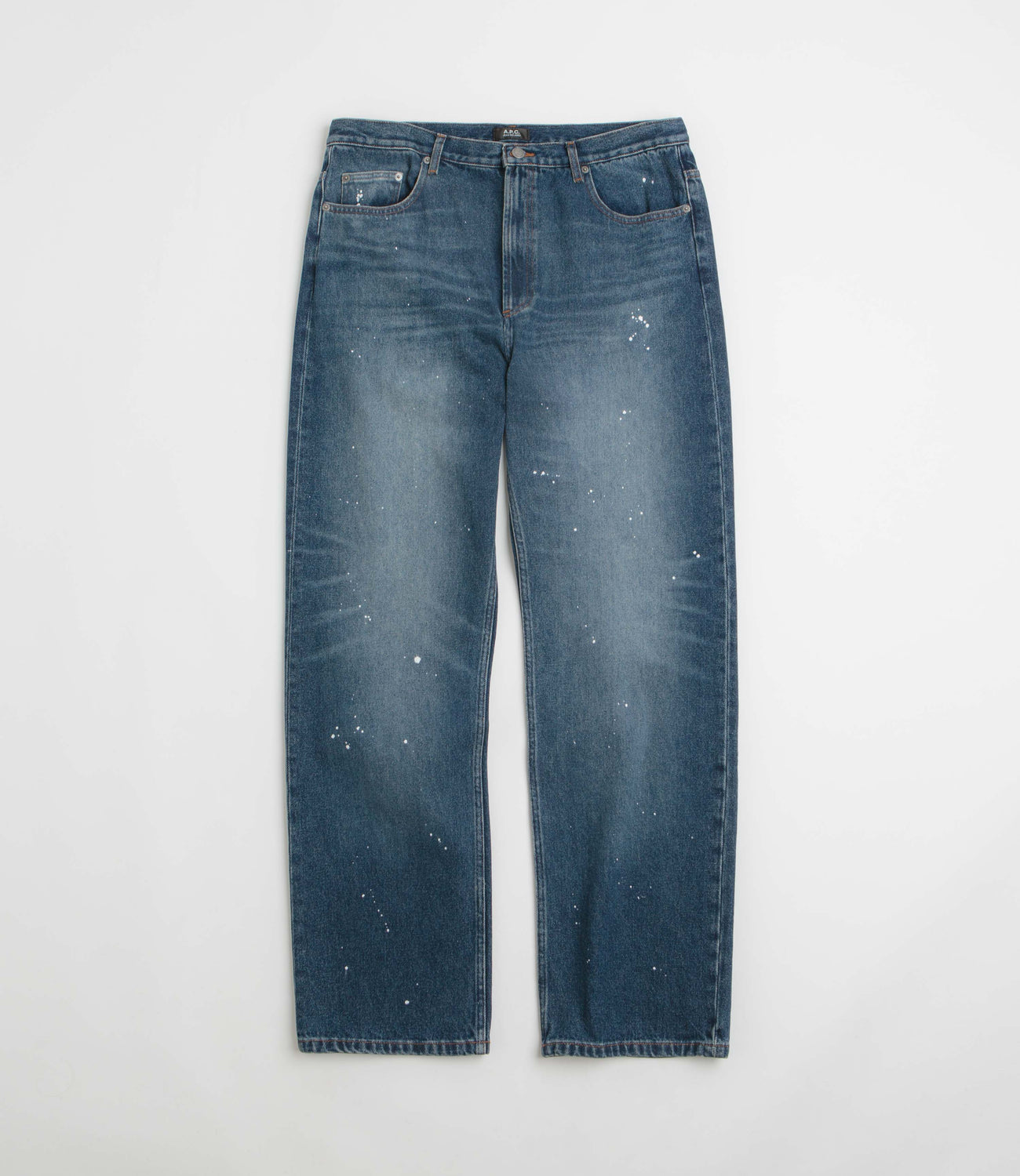 A.P.C. Relaxed H Jeans in Washed Indigo. Crafted from 100% cotton denim with a custom wash, these A.P.C. jeans are designed with a belt loop waist and a zippered fly. Featuring four classic pockets and a single coin pocket, these blue A.P.C. jeans are finished with a straight, wide-leg cut.