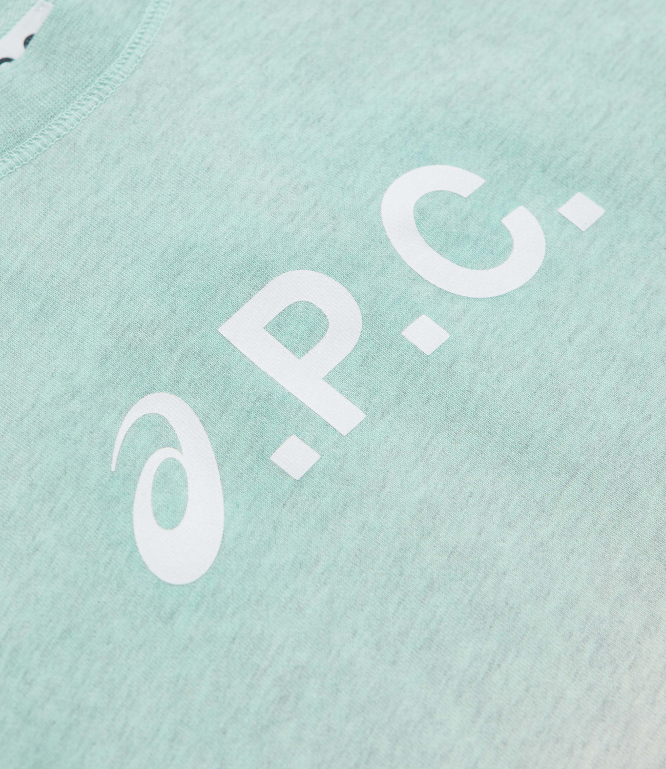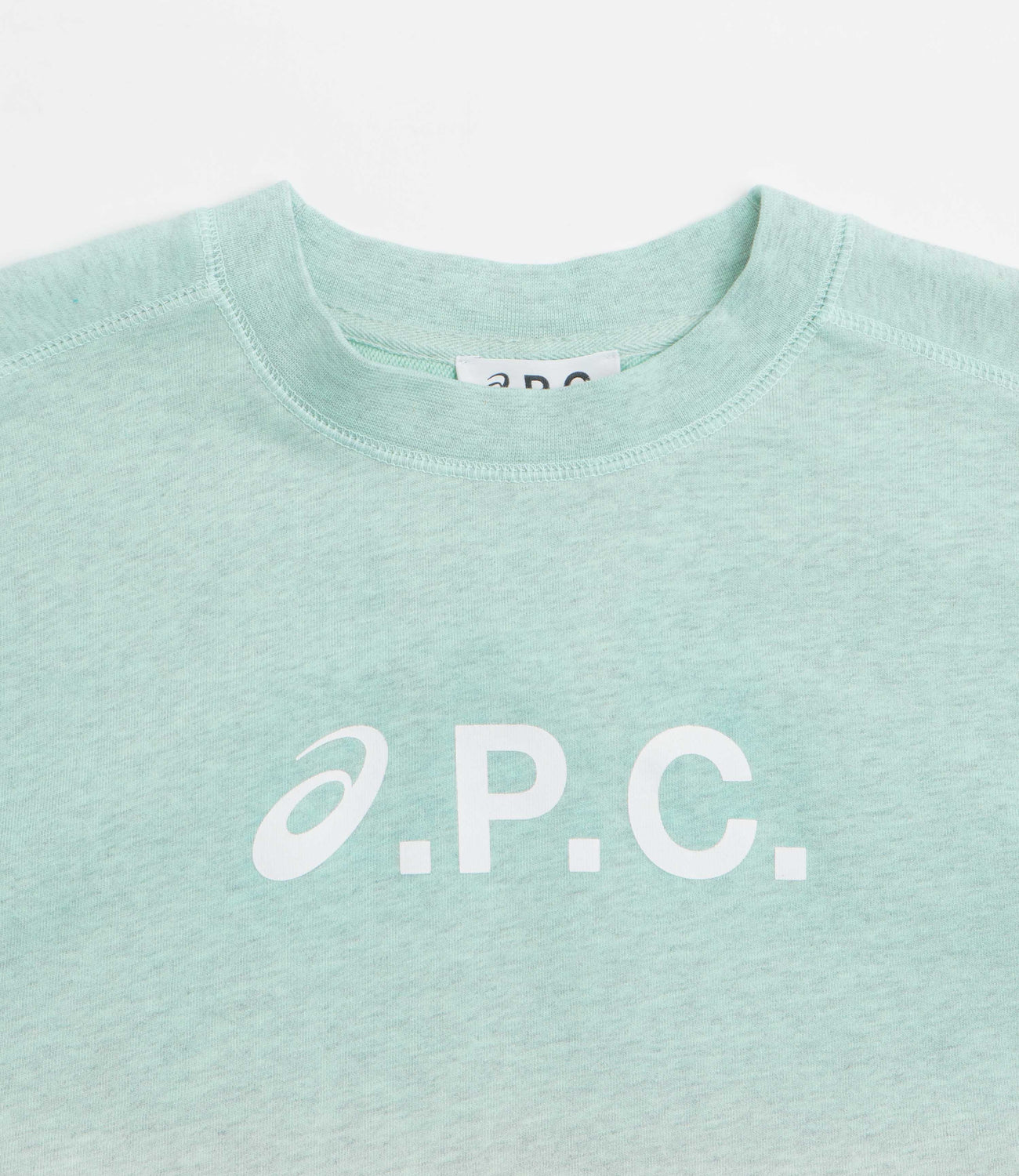 A.P.C. Stone Dip Dye Sweatshirt in Multicolour. Designed in collaboration with ASICS, this regular fitting A.P.C. sweatshirt is crafted from 100% cotton with a gradient pattern. Featuring sculpted raglan sleeves and ribbed cuffs, this green coral A.P.C. sweater is finished with printed centre chest branding.