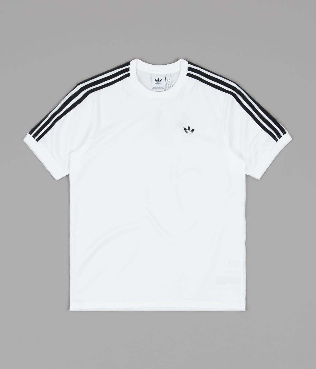 Adidas Aero Club Jersey in White and Black. Crafted from 100% recycled polyester, this double-knit adidas jersey combines sportswear aesthetics with everyday function to deliver a laid-back essential well-suited to any day-on-day setting. Regular fitting, this triple-striped staple features a reinforced bartack hemline, a comfortable crew neck collar and AEROREADY technology that’s designed to manage moisture for a dry and circulatory feel. Signed off with bold-black triple stripe detailing across the shoulders and sleeves, with the brand’s iconic Trefoil emblem printed across the left-chest.