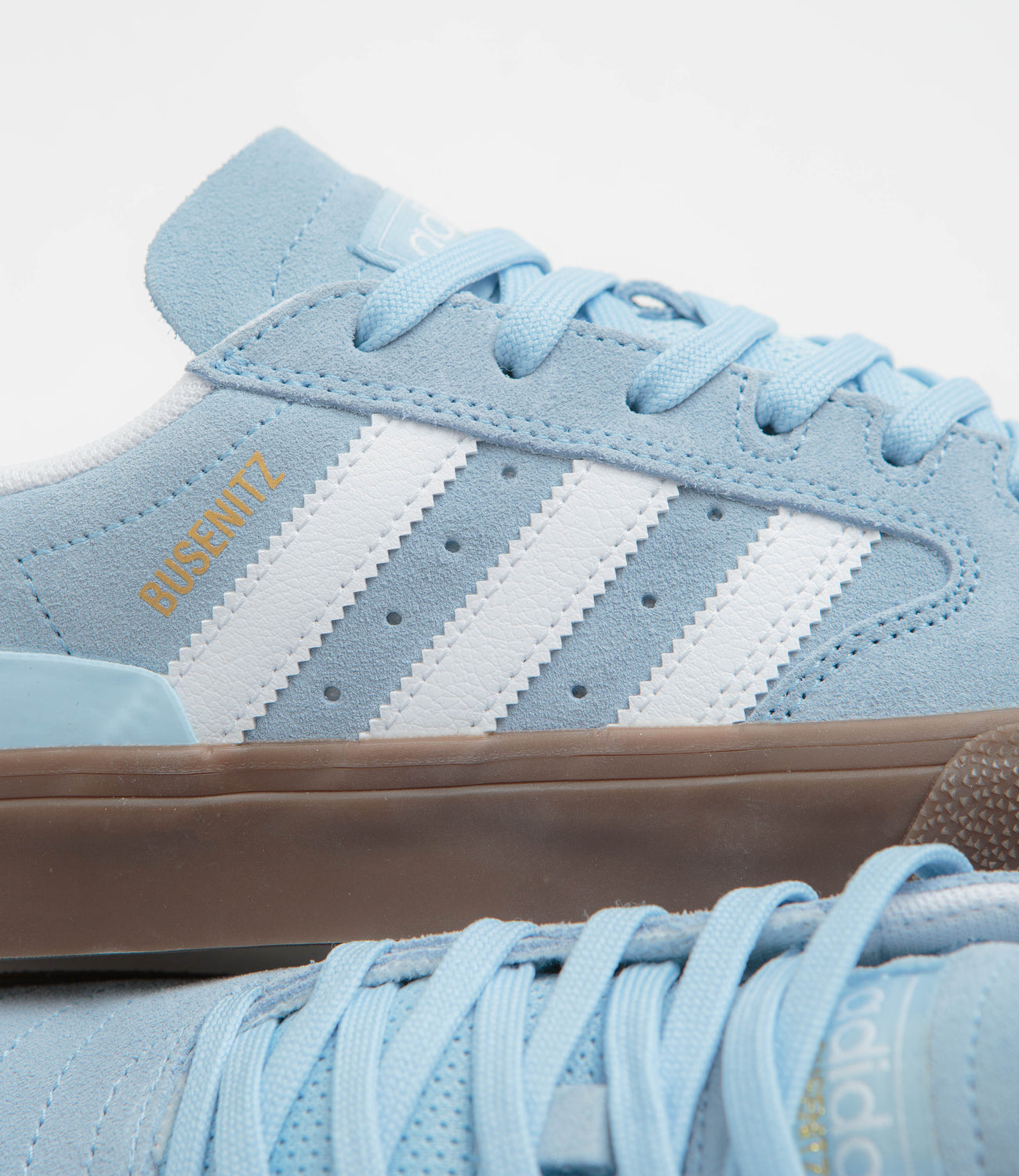 The adidas Busenitz Vulc II, Dennis Busenitz’s signature, comes in a soft light blue that stands out while staying session-ready. Suede uppers and a reinforced Adituff toe handle the knocks, while leather 3-Stripes, printed branding, and a Geofit collar keep it locked in underfoot. Finished with an Adiprene moulded sockliner, vulcanised construction, and a dark gum outsole, it’s comfortable, durable, and built to skate.
