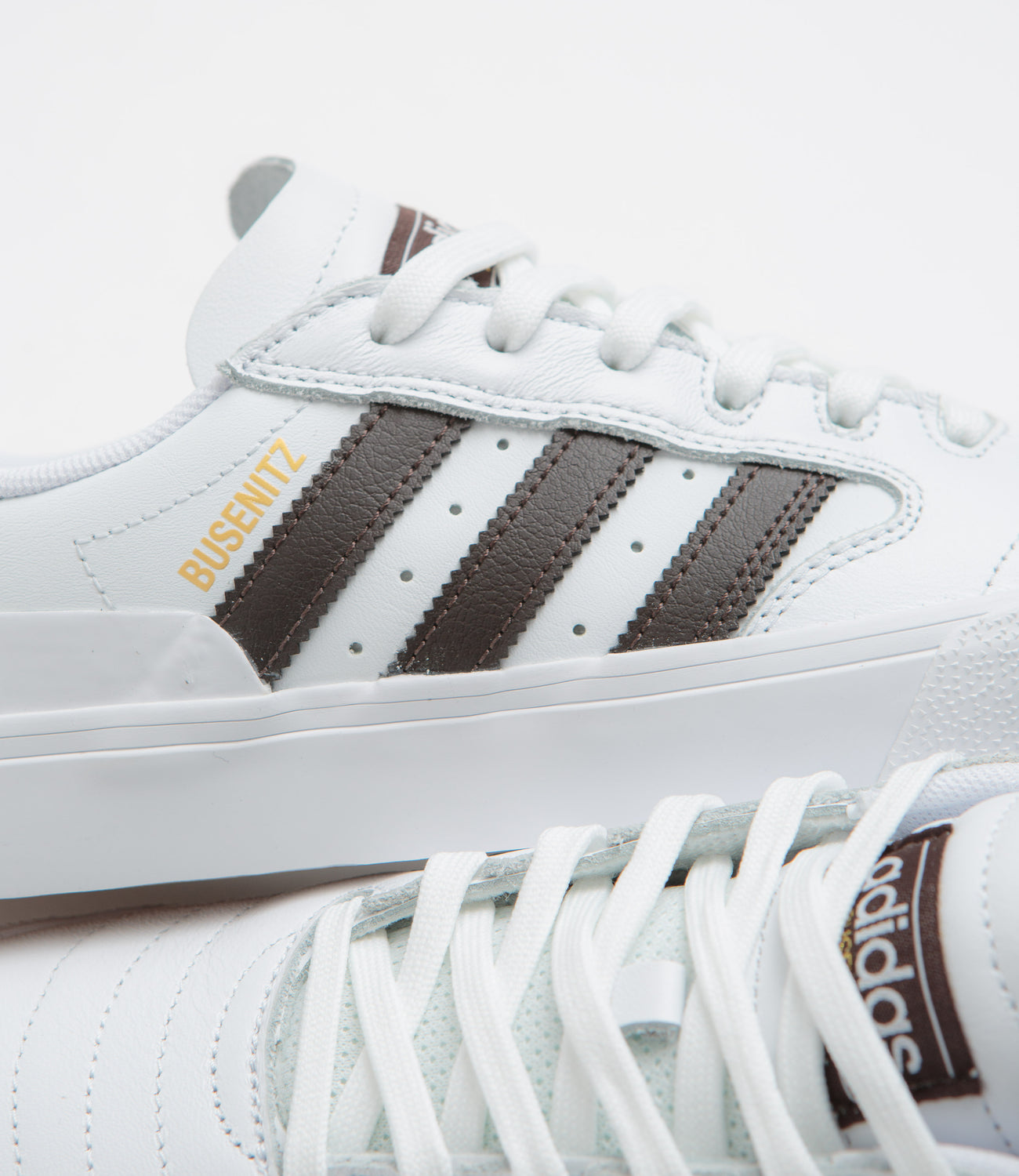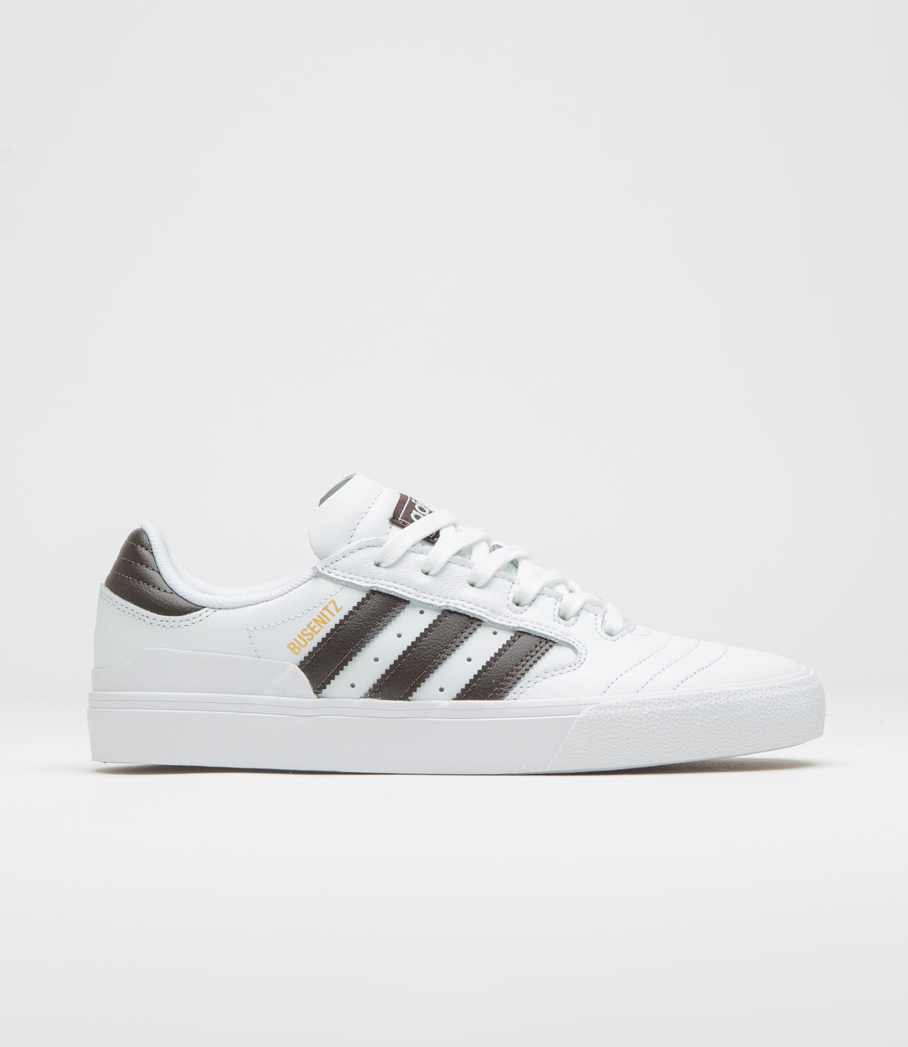 The adidas Busenitz Vulc II, Dennis Busenitz’s signature, is built to handle every session. Smooth white leather uppers and a reinforced Adituff toe take the knocks, while leather 3-Stripes, printed branding, and an anti-slip Geofit collar keep it solid underfoot. An Adiprene moulded sockliner, vulcanised construction, and rubber outsole deliver comfort, durability, and all-day skate-ready performance.