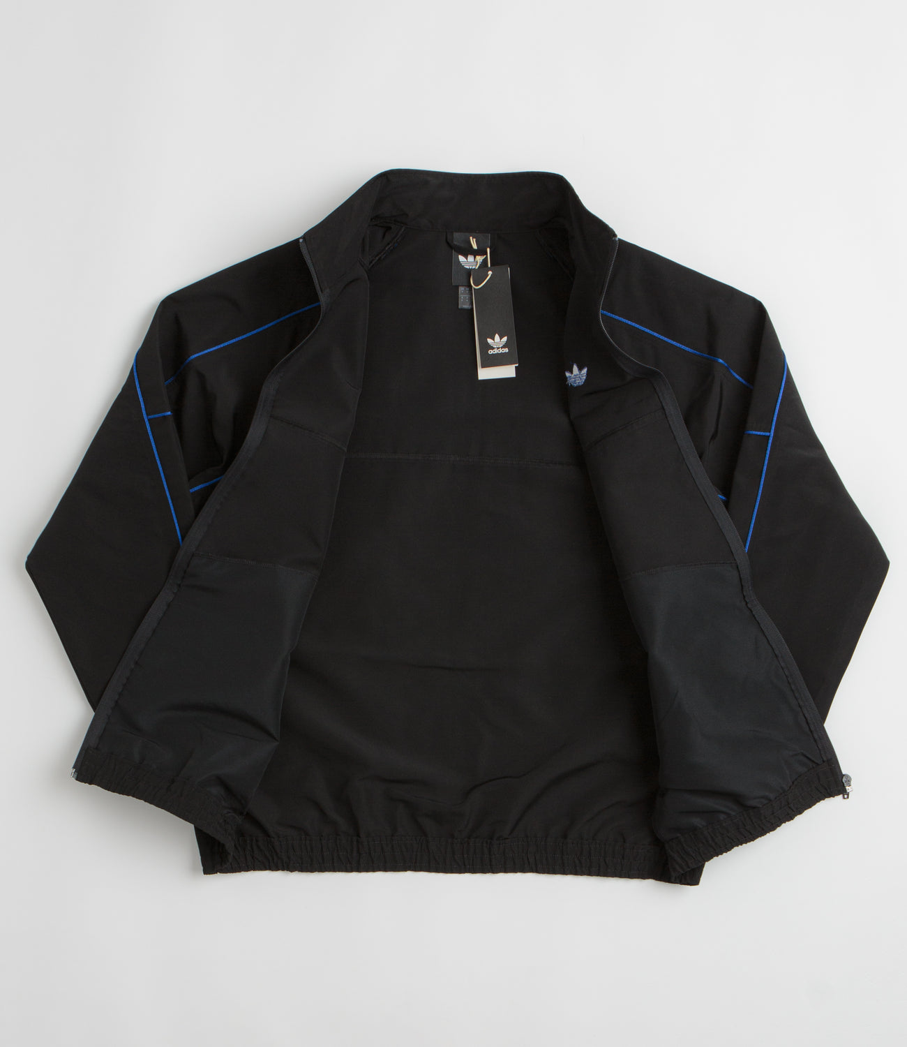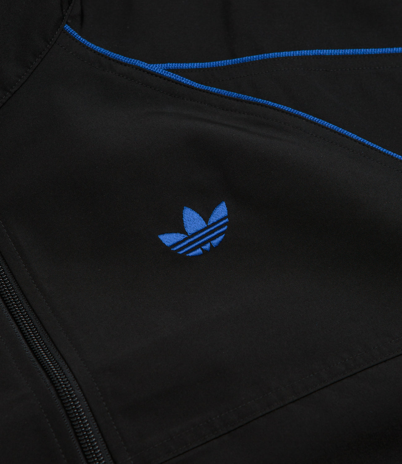 - Classic Trefoil branding with a full length zipper