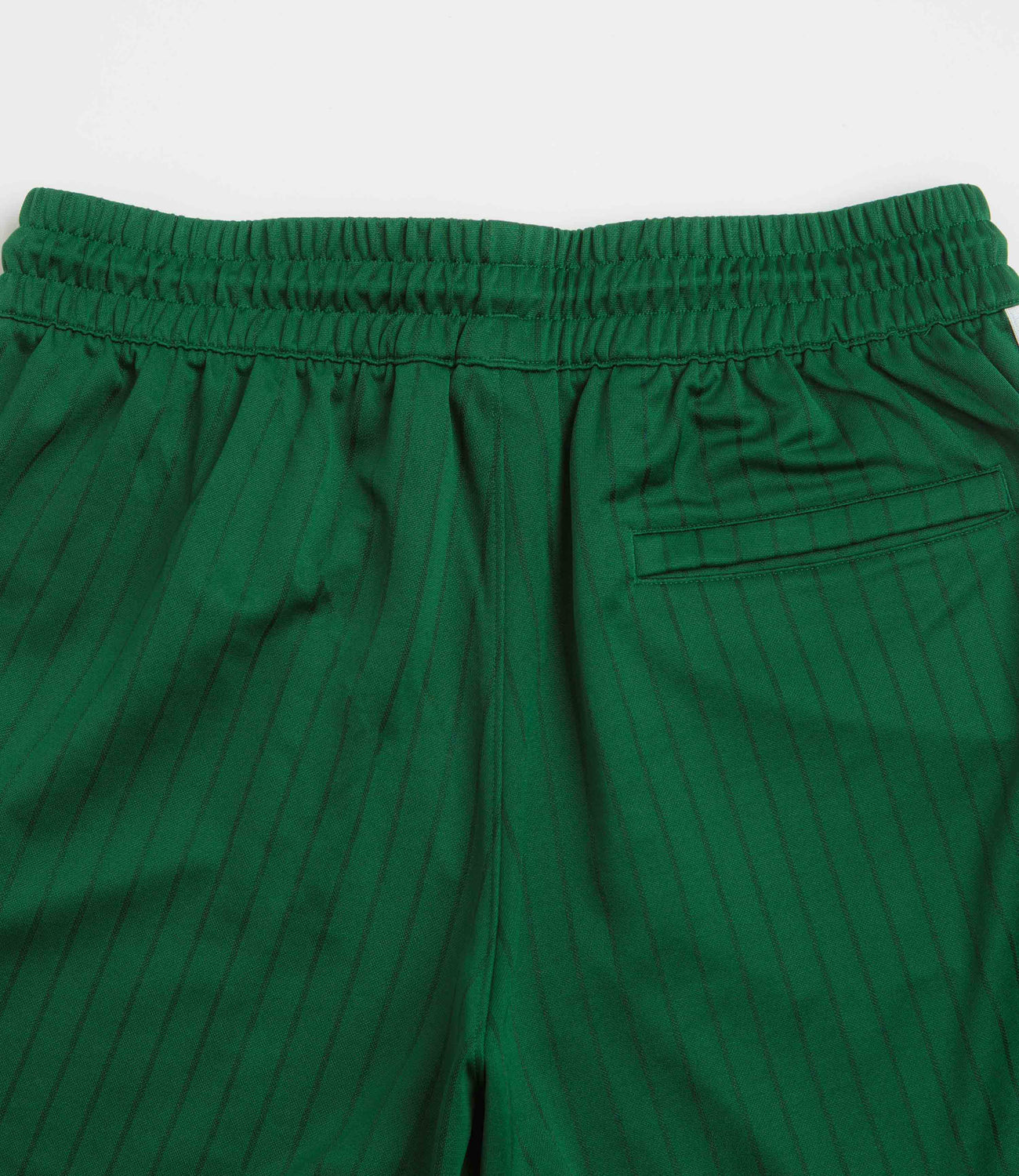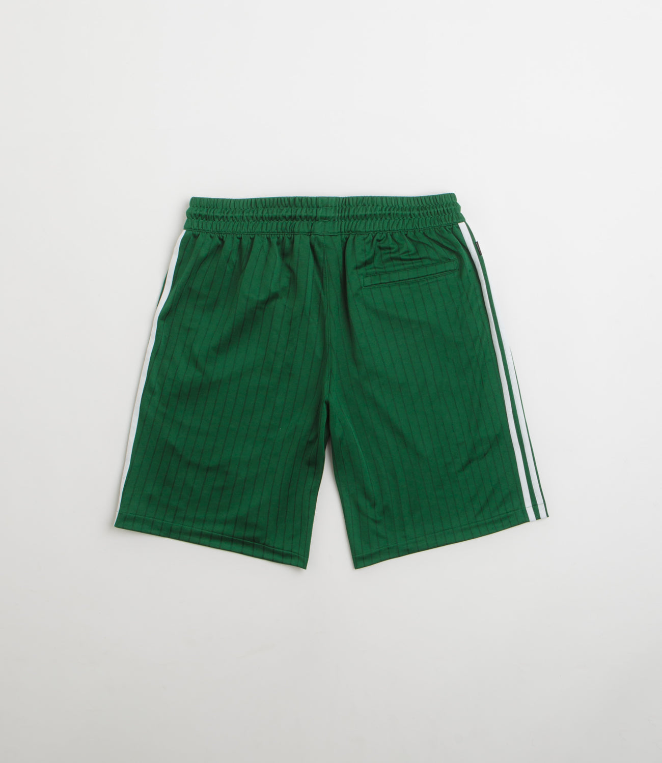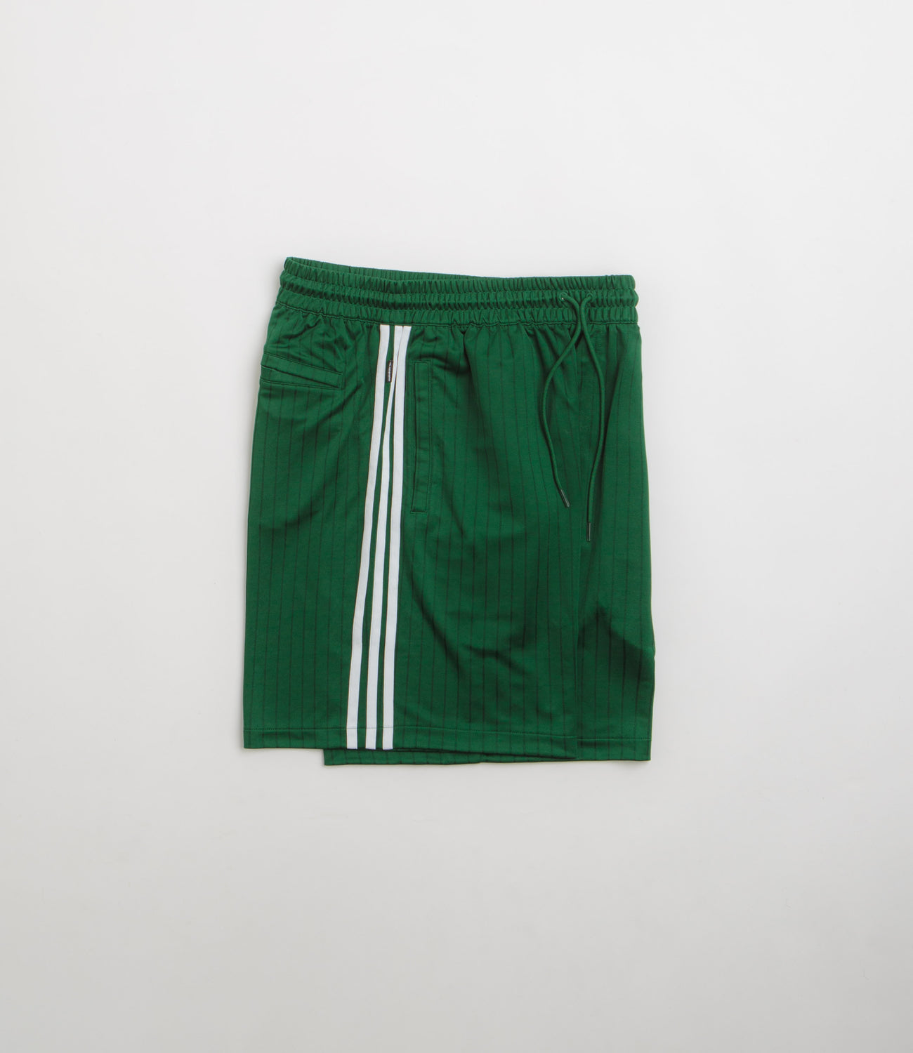 Adidas Skateboarding Classic Shorts in Dark Green and White. Loose fitting and made from 100% recycled polyester, these knee length adidas shorts are designed with an elasticated drawstring waist. Finished in green with 3-Stripe side details, two side pockets, a single rear pocket and embroidered logo branding.