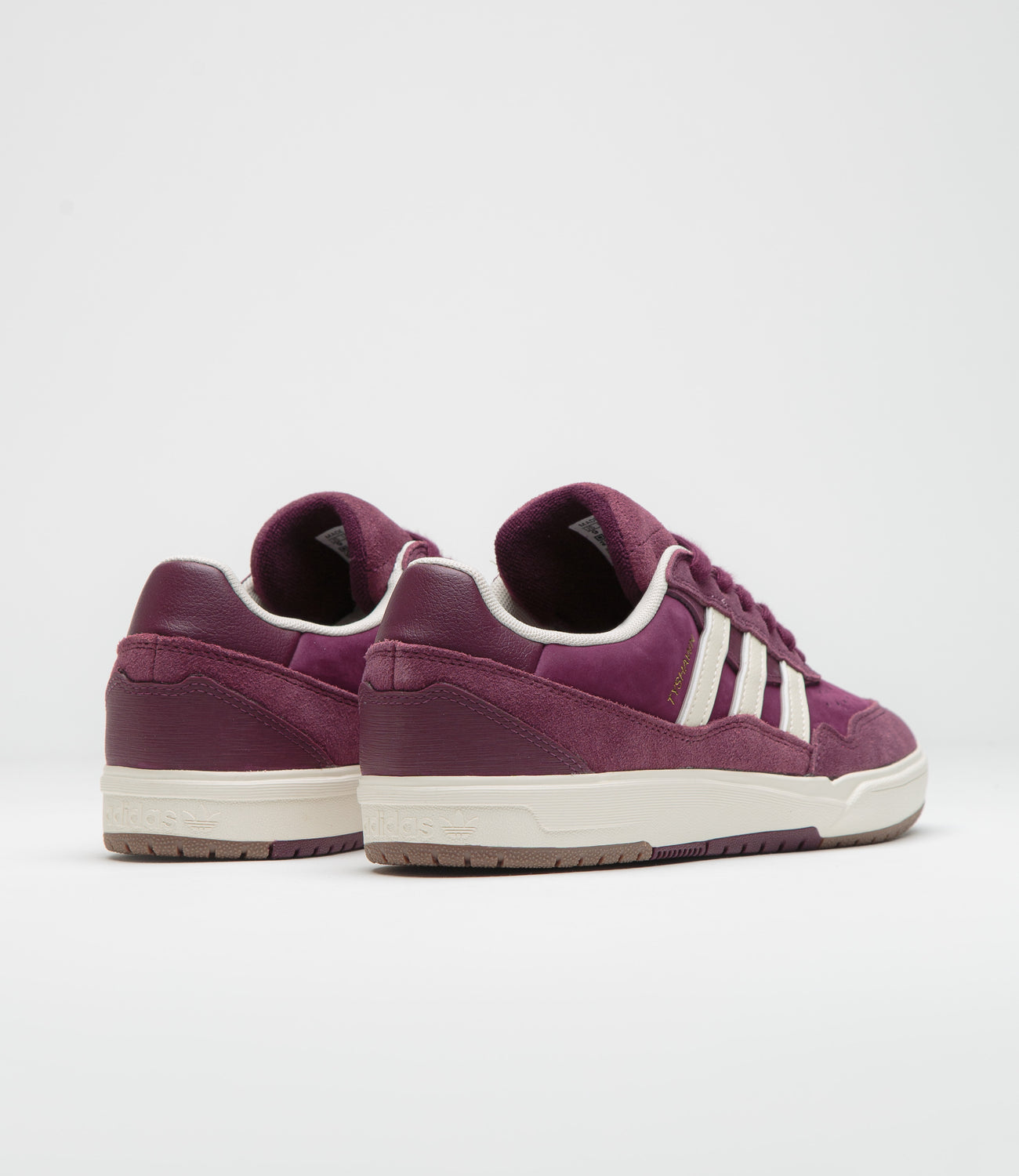 Tyshawn Jones’ second pro model, the adidas Tyshawn II, fuses basketball roots with skate-ready design. Maroon red suede uppers feel soft yet durable, with a reinforced dual-layer toe and responsive Lightstrike midsole for impact protection. Gold foil accents, suede 3-Stripes, and embossed Trefoil branding keep the look clean, while a tough rubber outsole makes it session-ready and built to last.