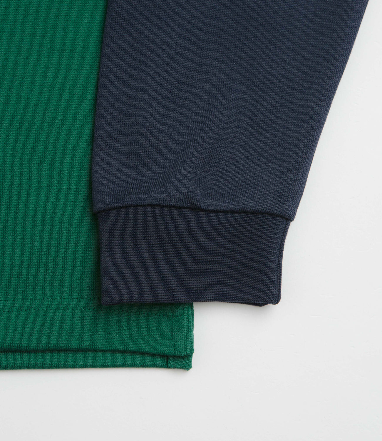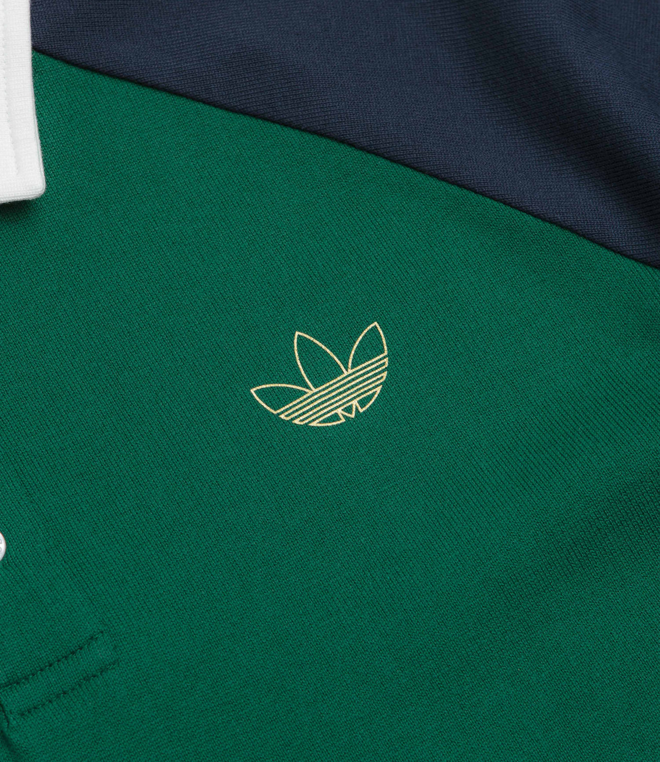 Tyshawn Jones’ rugby shirt blends classic pitch style with skate-ready details. Crafted from 100% cotton, it features a stand collar, triple-button placket, and raglan sleeves for easy movement. Finished with a printed logo, woven patch graphic, ribbed cuffs, and a loose fit, it’s a comfortable, everyday layer built to move with you on or off the board.
