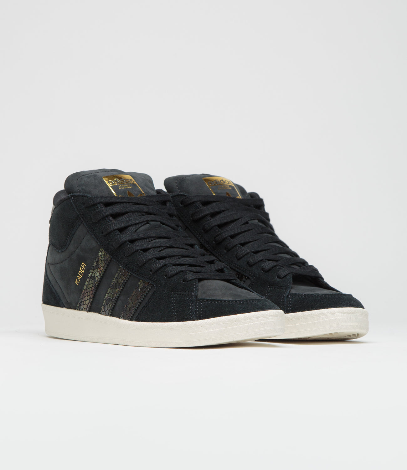 The Superskate gets a Kader Sylla twist. Made with a suede upper embedded with crystals that catch the light, and snakeskin-style 3-Stripes and heel, this collaboration blends classic adidas skate design with bold, standout details. A technical nylon collar and thick flat laces keep it comfortable on and off the board, while printed gold-foil tongue labels and subtle gold-foil accents add a touch of shine. Cupsole construction and a multi-tread rubber outsole give board-ready grip, with printed insoles completing the look.