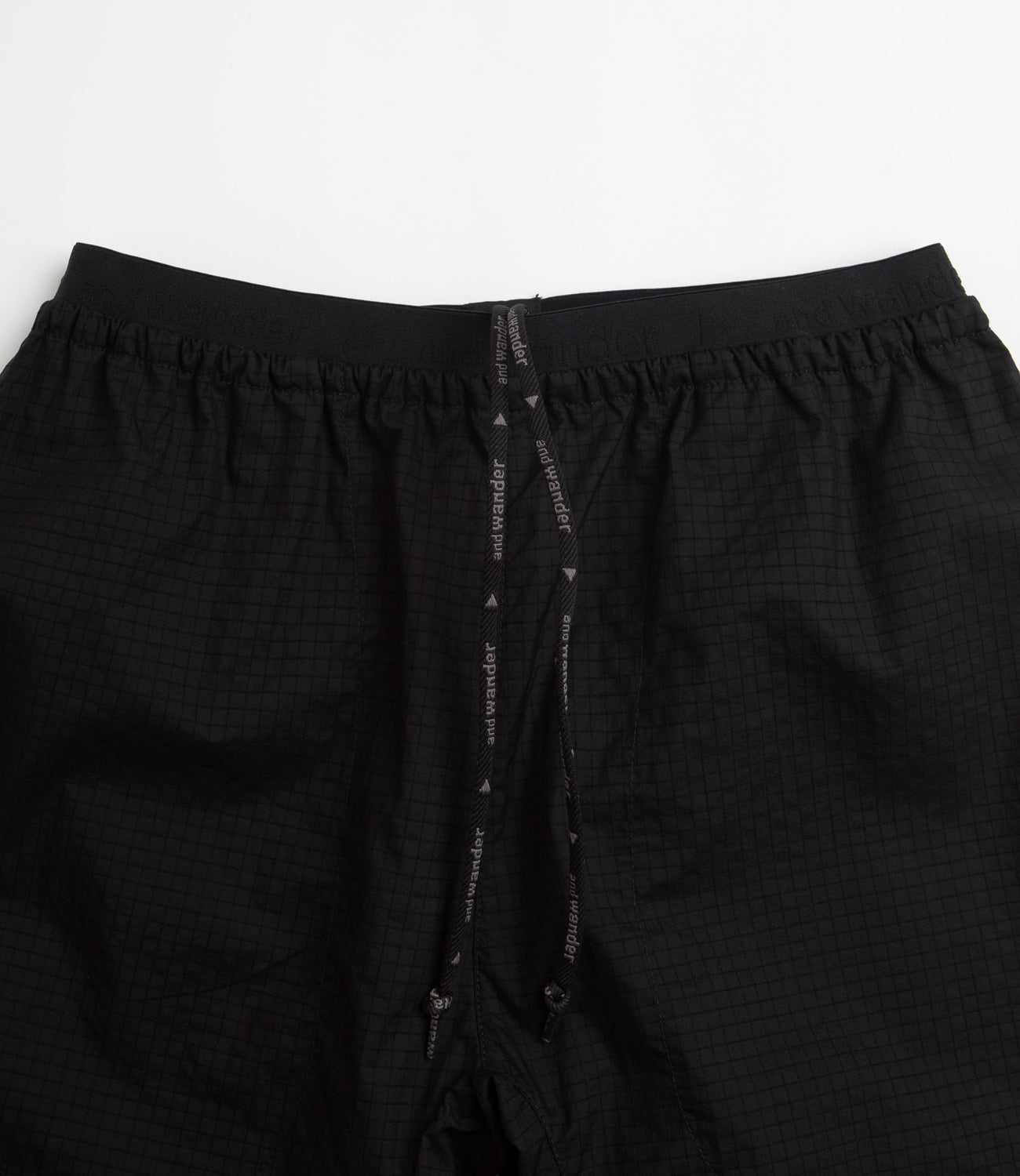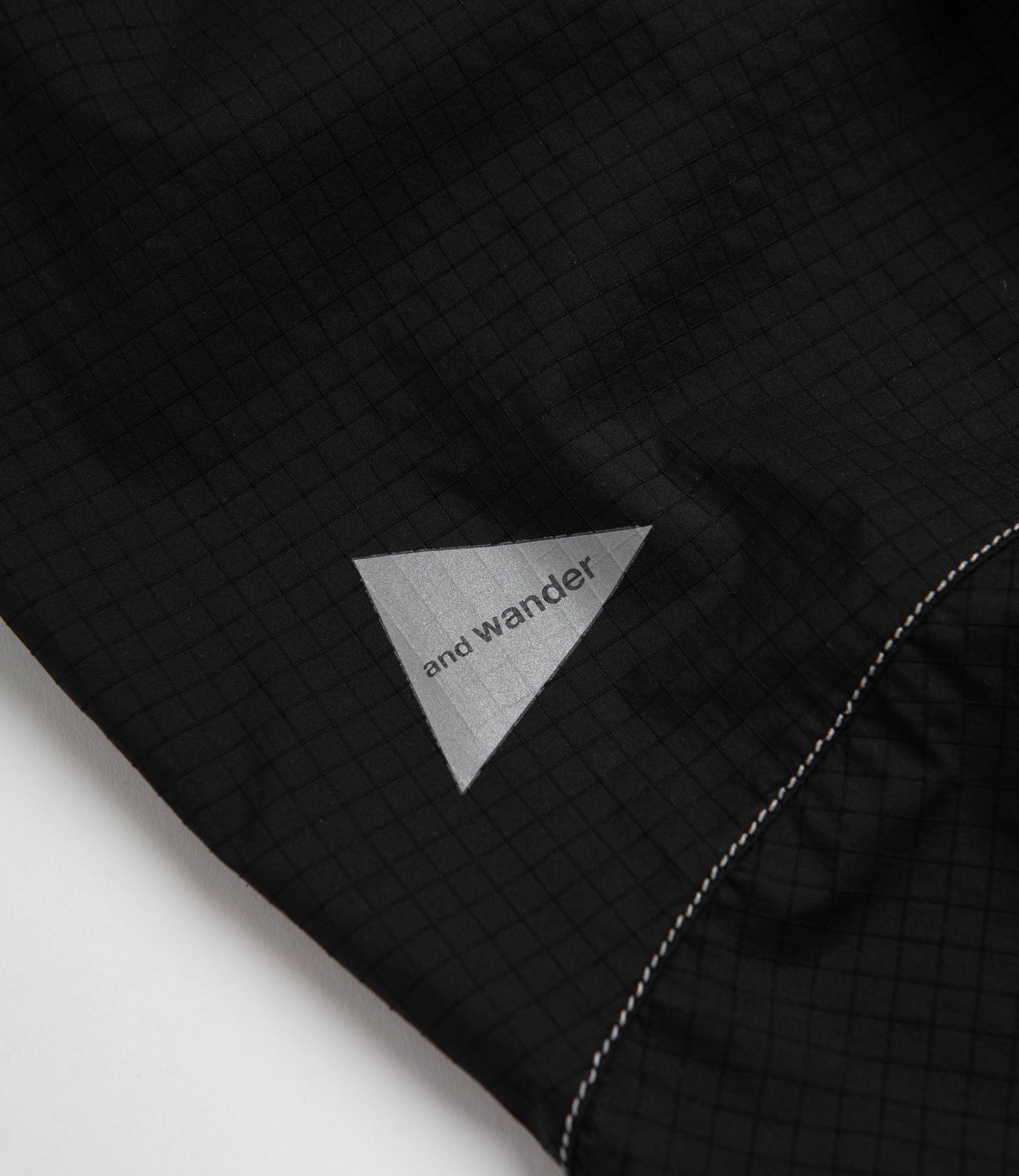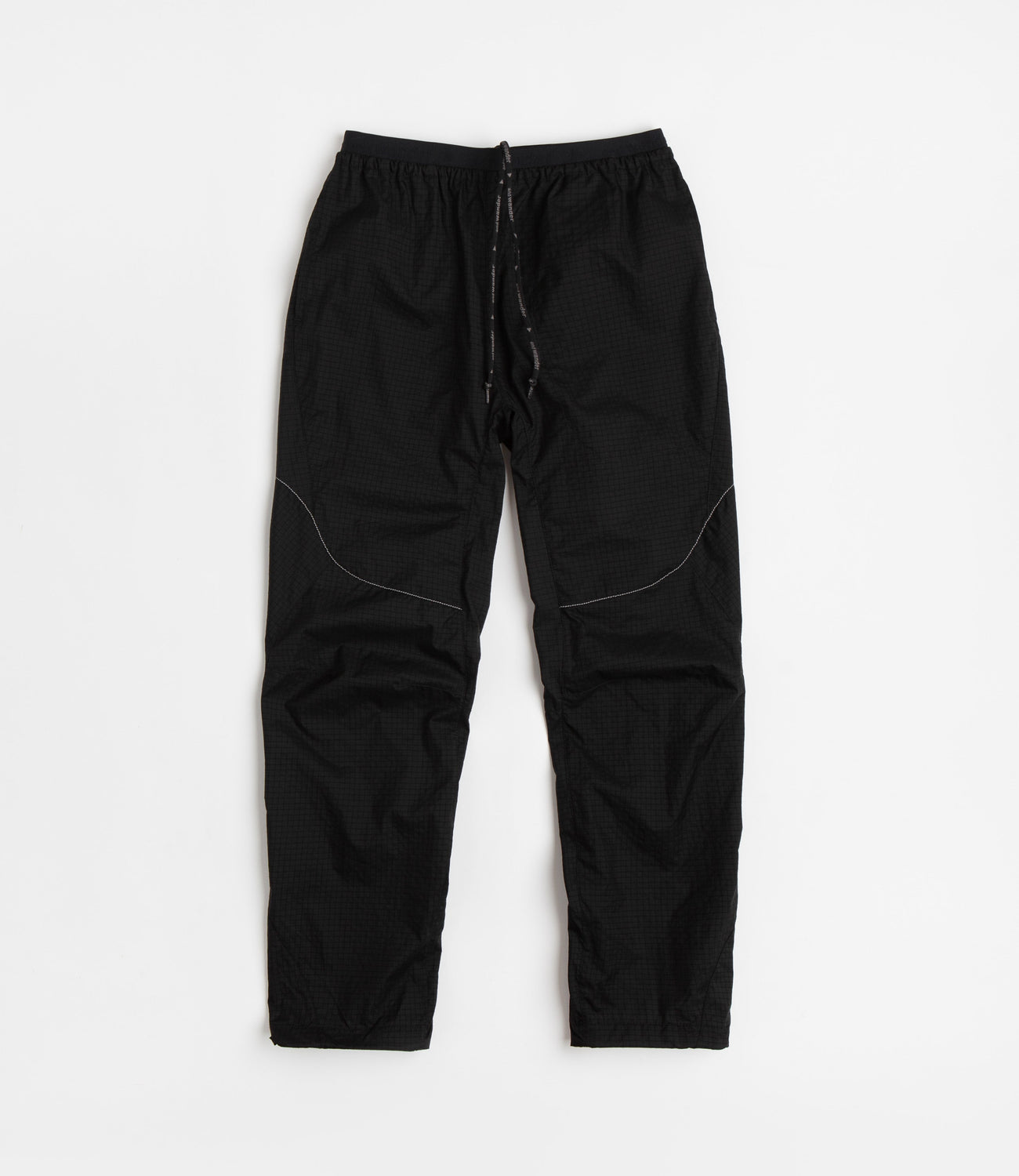 and wander Breath Rip Light Pants in Black. Lightweight and styled with a tapered leg cut, these and wander pants are crafted from 100% nylon with a water-repellent shell. Featuring a woven elasticated waist and reflective stitch detailing, these black and wander pants are finished with two side pockets, a single rear pocket, printed branding and with a woven rear flag label.