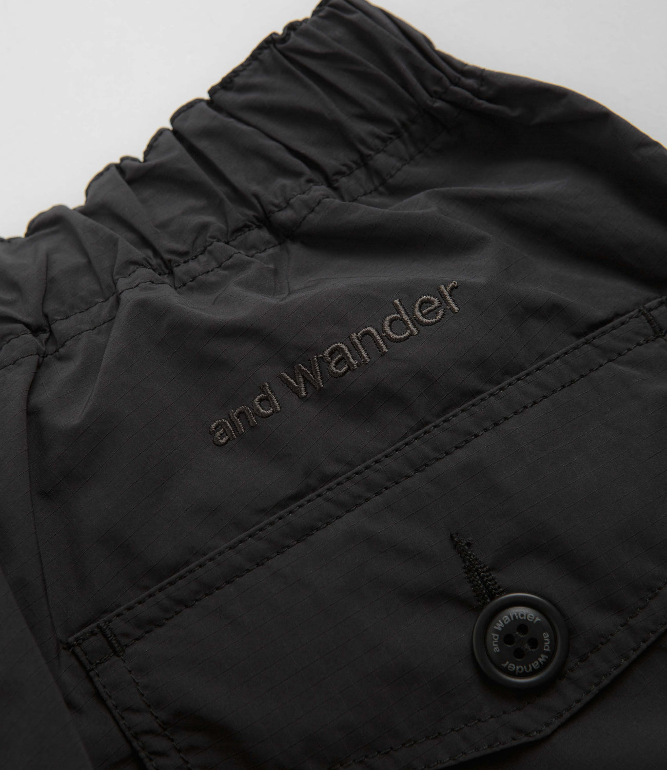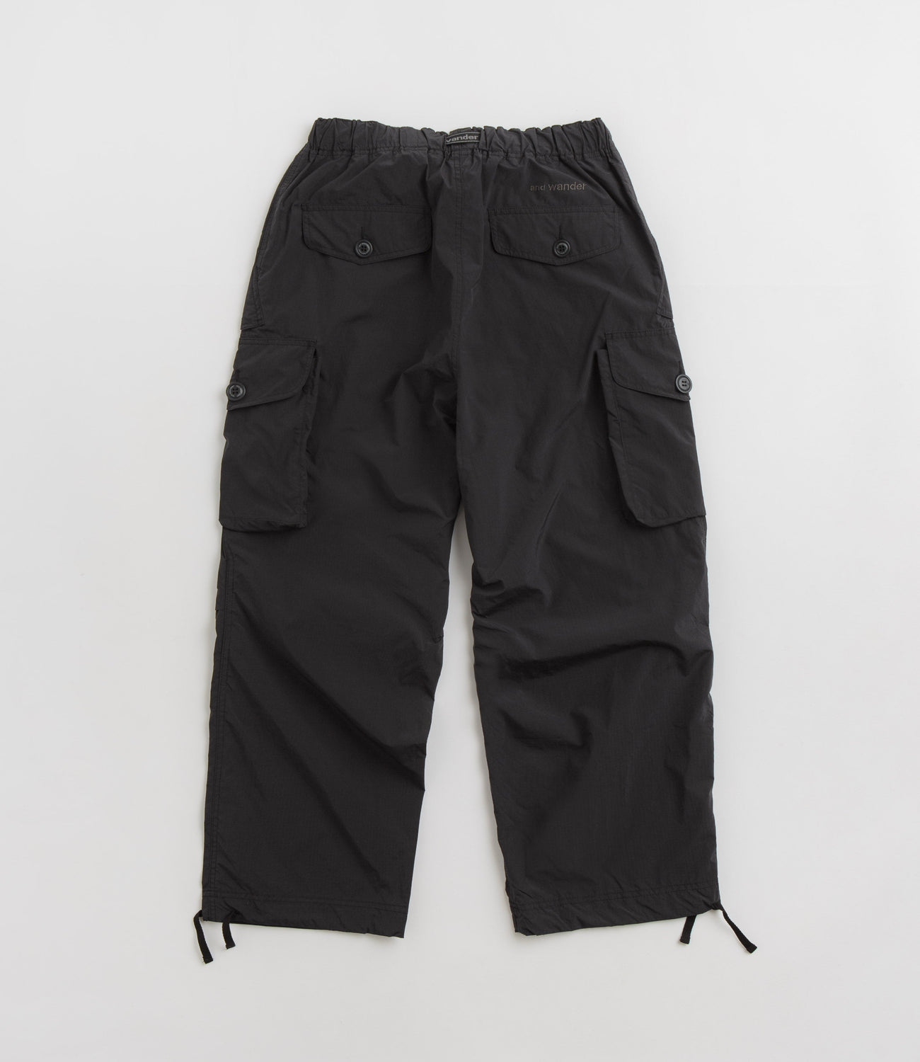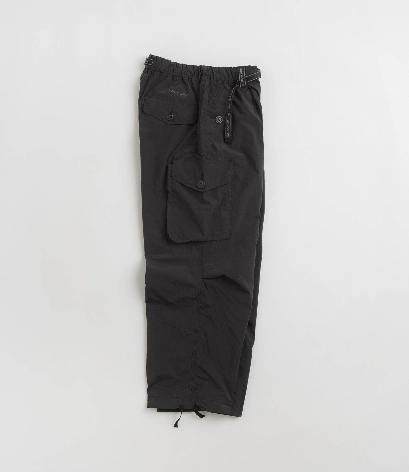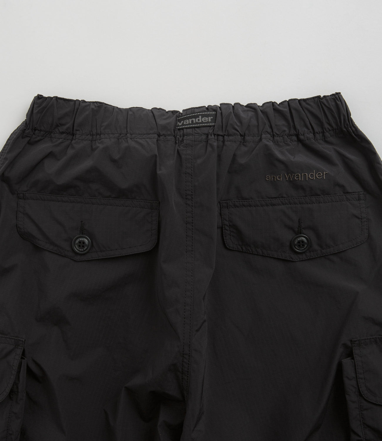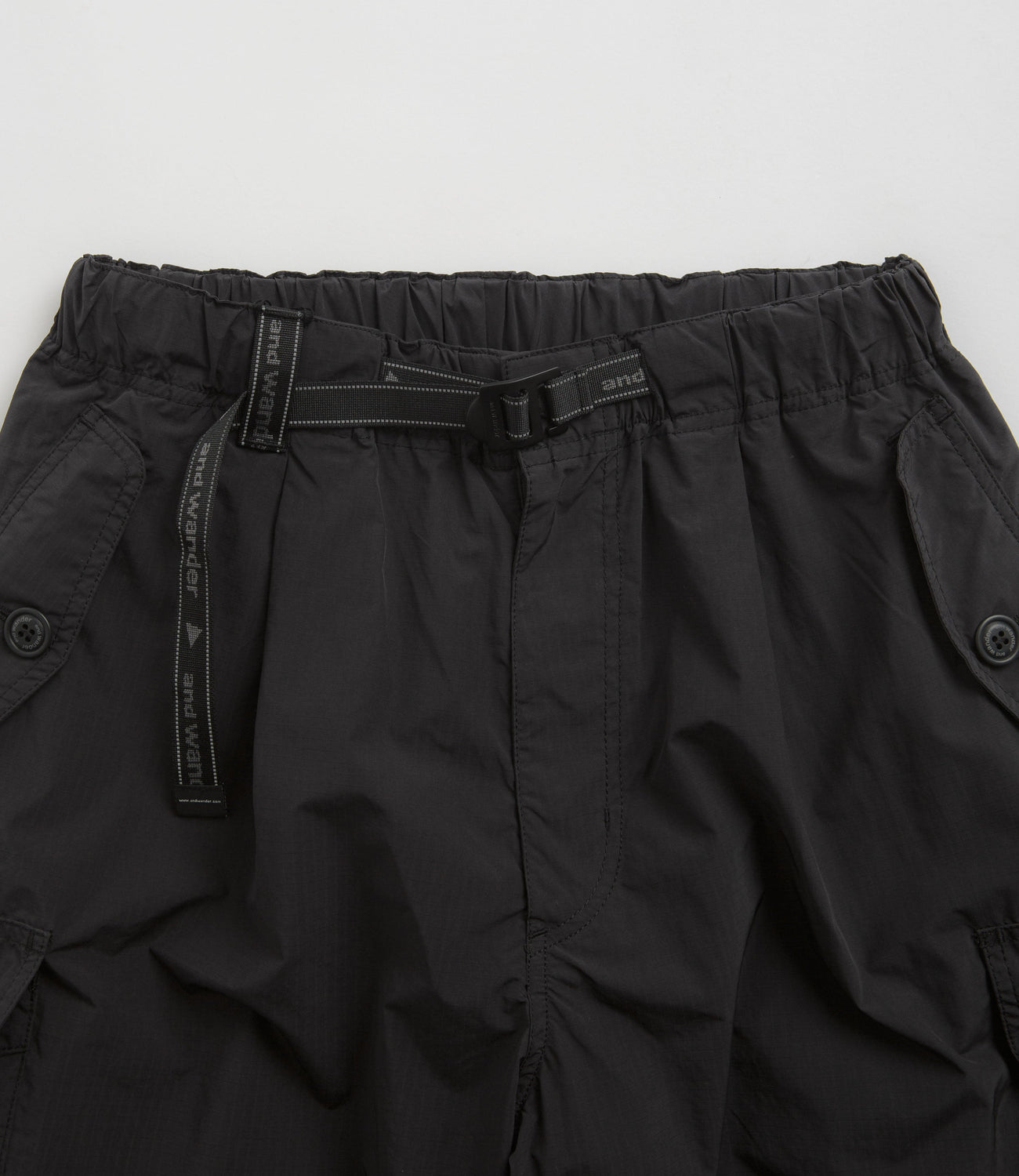 and wander Oversized Cargo Pants in Black. Crafted from a blend of 67% polyester and 33% nylon, these water-repellent and wander pants are tailored to a loose fitting with a wide leg cut. Featuring a woven elastic hemline, an integrated webbing belt and drawstring adjustable cuffs, these black and wander cargo pants also feature a stretchy fabrication for elevated mobility. Finished with two buttoned side pockets, two rear pockets, additional utility pockets and with a detachable carabiner loop.