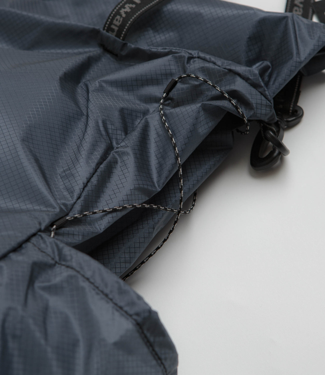 and wander Sil Tote Bag in Blue. Packable and crafted from 100% nylon Cordura, this single sized and wander bag is designed with a water-repellent shell. Featuring a zippered main compartment and a storage capacity of up to 25-litres, this blue and wander tote is finished with external side pockets, bungee webbing, an adjustable shoulder strap and with printed branding.