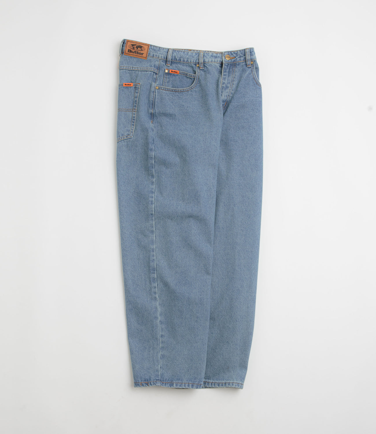 Crafted from 100% cotton denim with a relaxed, baggy fit, these Butter Goods jeans keep things effortless and wearable. The washed indigo finish is paired with a classic belt loop waistband and YKK zip fly, while two front pockets, two rear pockets, a coin pocket, and a woven PU belt patch make them as practical as they are easygoing.