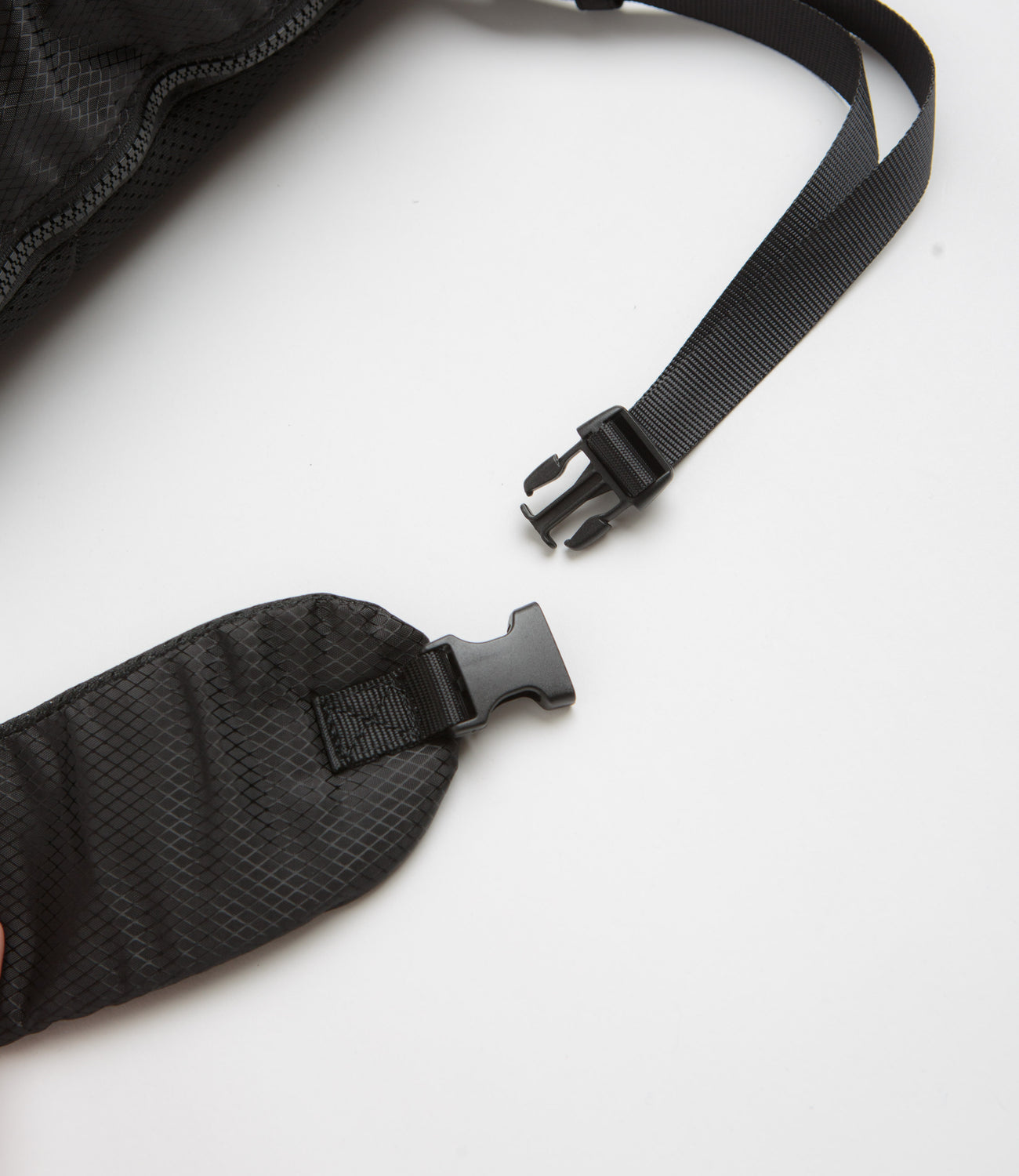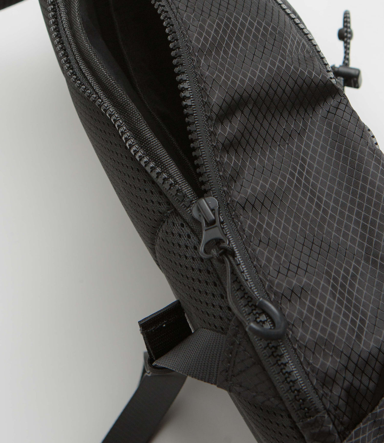 Practical and built to move with you, this Butter Goods shoulder bag is made from durable 100% nylon diamond ripstop and holds up to 10 litres. External bungee-cord webbing and a front mesh pocket keep essentials within reach, while two side-entry pockets offer extra organisation. Finished in black with a padded shoulder strap and woven flag label for comfort and signature detailing.