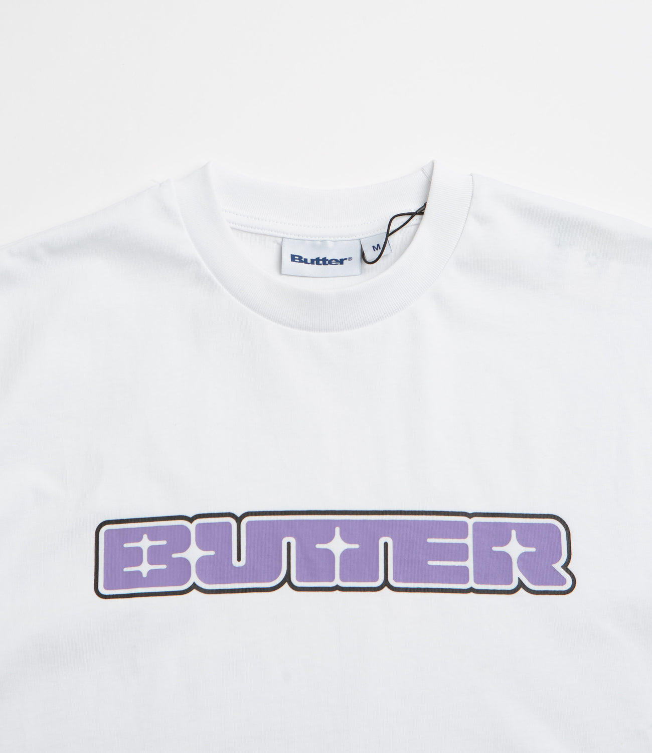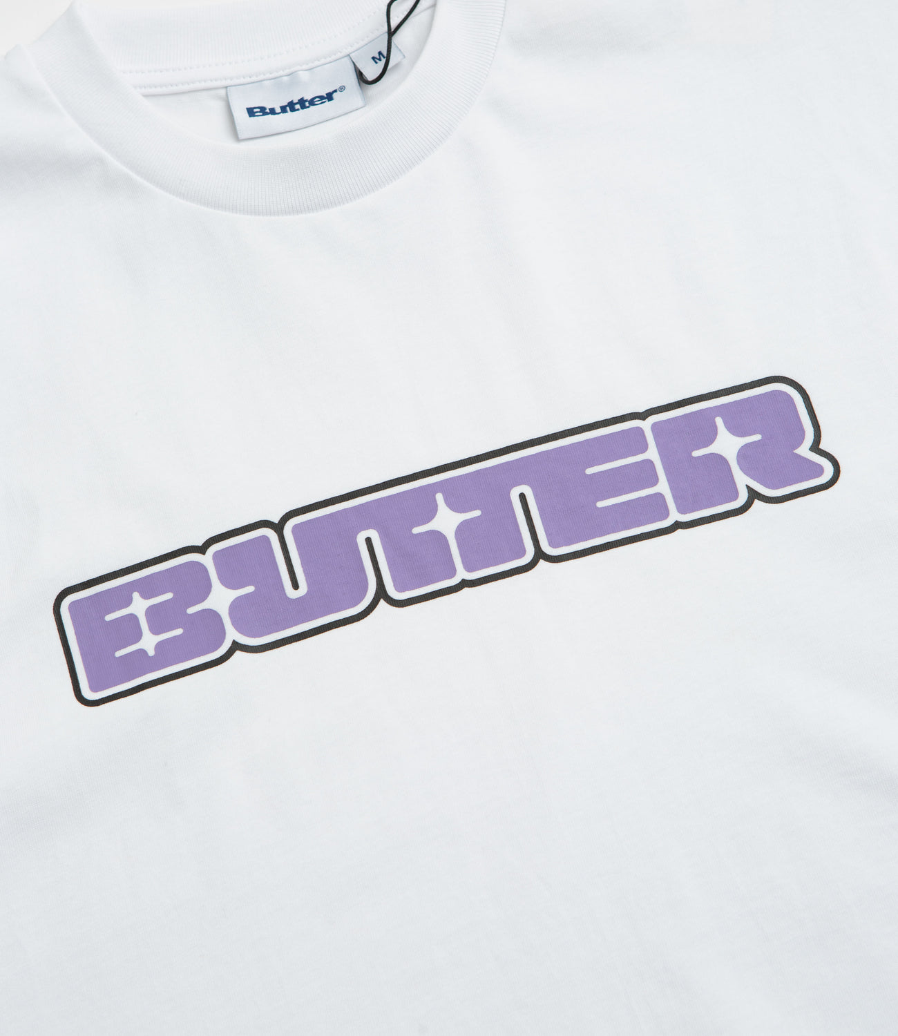 - Bold screen-printed Butter chest graphic