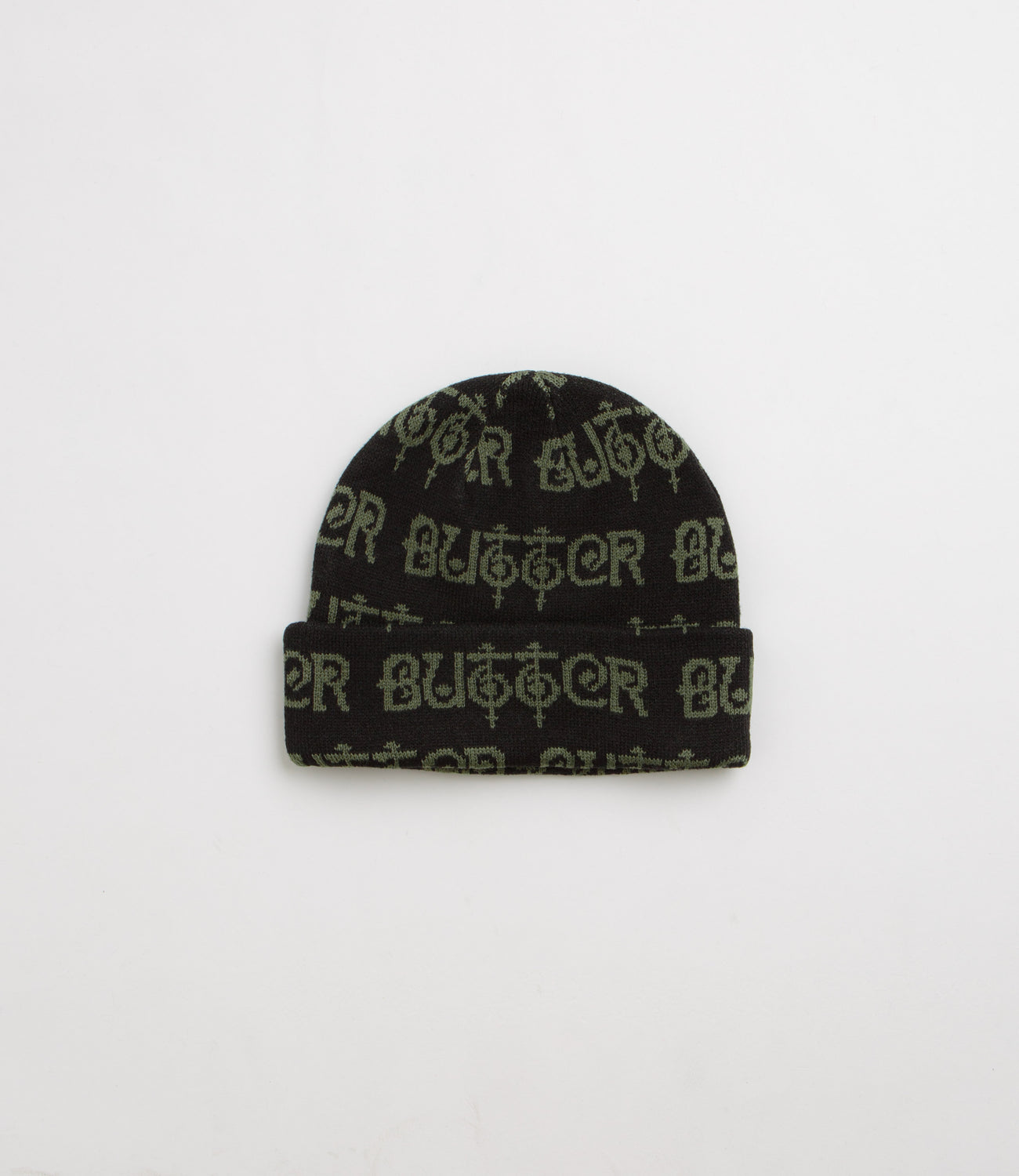 Butter Goods Love Dance Beanie in Black. Single sized, this Butter Goods beanie is designed with an all-over jacquard knit pattern. Finished in black with a tight knit and a fold-over cuff.