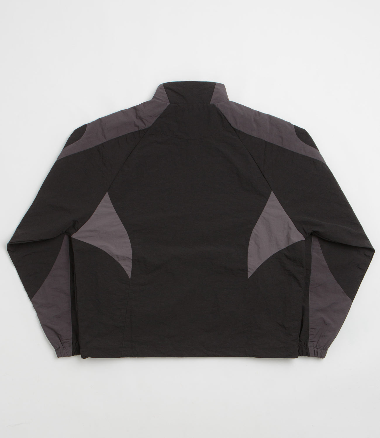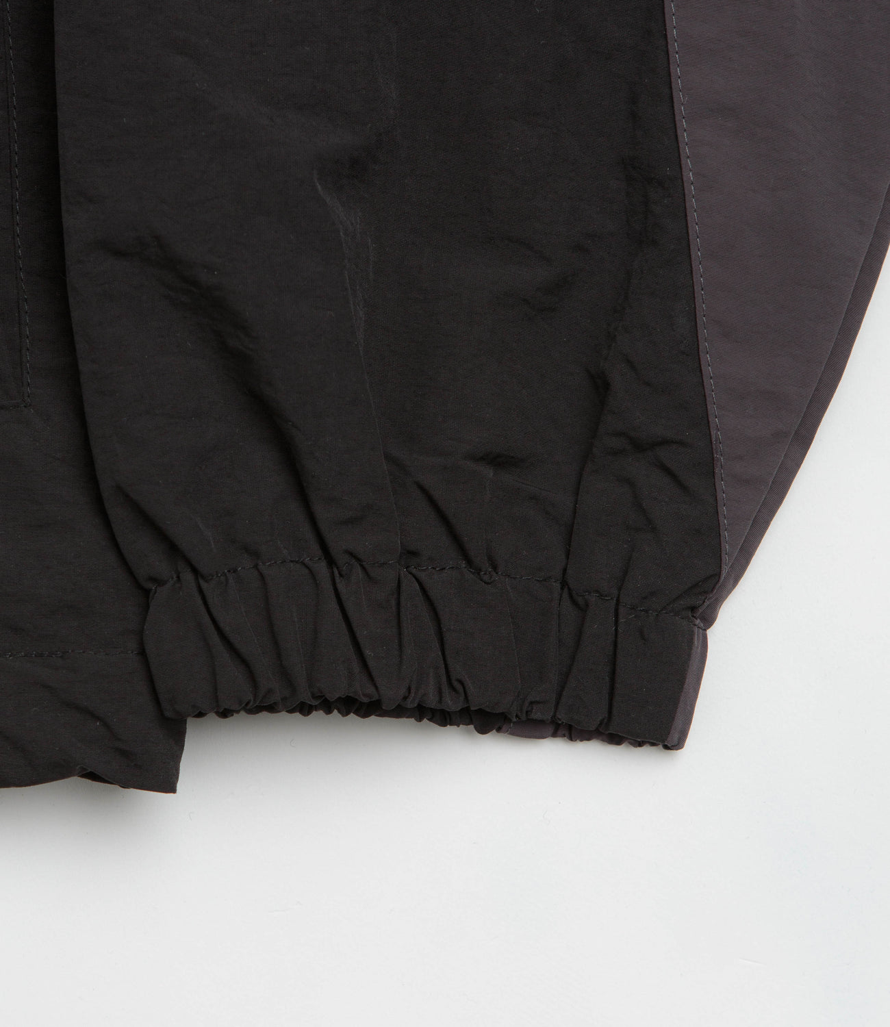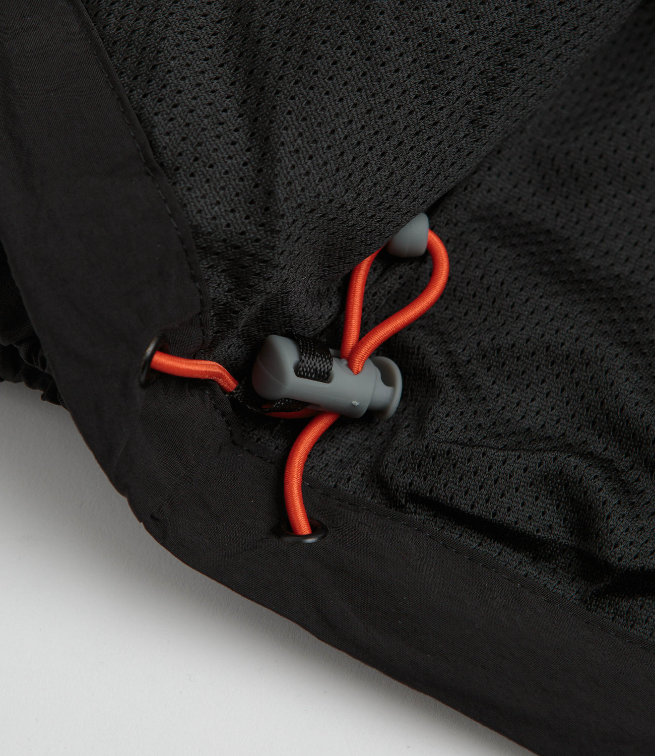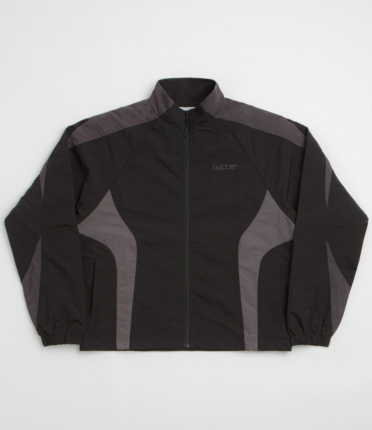 Butter Goods Offside Jacket in Black. Regular fitting and made from 100% nylon, this Butter Goods jacket is designed with raglan sleeves and a full length zipper fastening. Featuring two front pockets, elasticated cuffs and a cinch-cord hem, this black Butter Goods shell sis finished with embroidered branding.