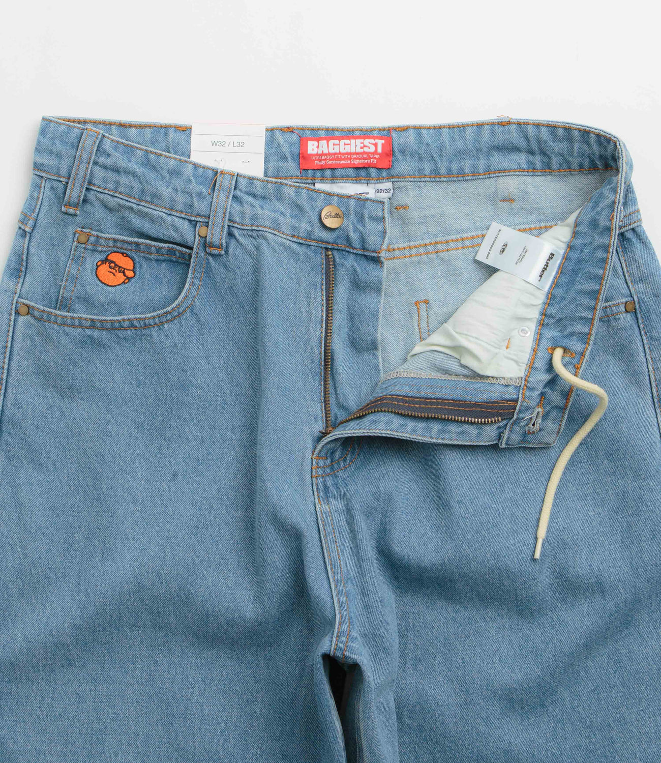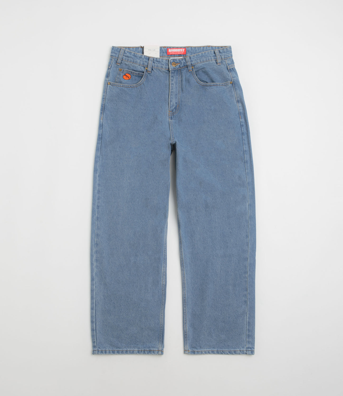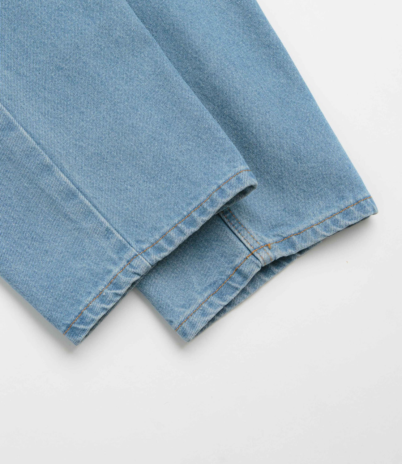 Cut wide with a slight taper, these Butter Goods jeans land that ultra baggy fit without losing shape. Made from washed blue 100% cotton denim, they’ve got all the essentials - belt loops, a zip fly and four classic pockets - plus an embroidered Philly coin pocket and the option of two leg lengths. Finished with a woven flag label for a clean Butter touch.