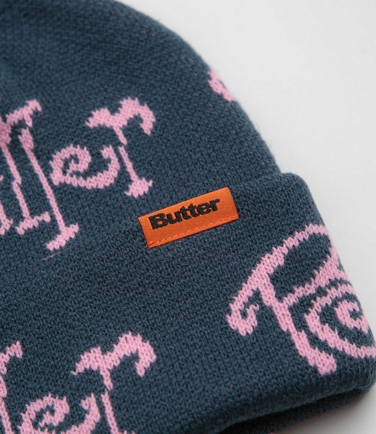 Butter Goods Sidewalk Beanie in Purple. Made from 100% acrylic with an all-over jacquard knit pattern, this single sized Butter Goods beanie is designed with a fold-over cuff. Finished in purple with woven flag label branding.