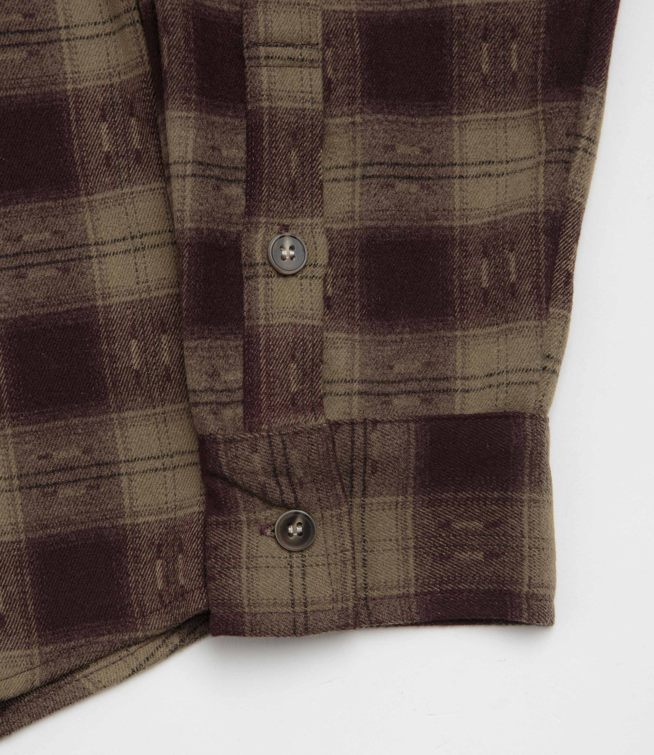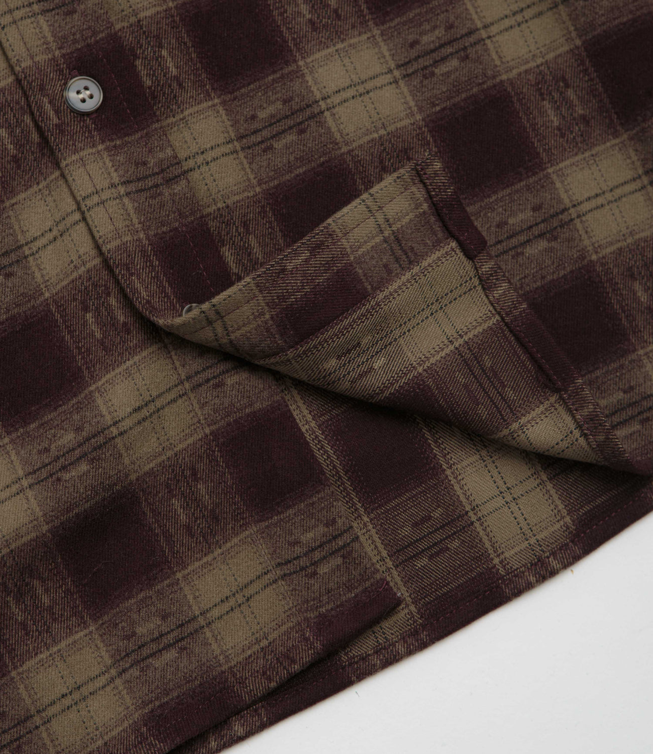 Made from a polyester-rayon blend, this Butter Goods shirt is cut for a regular fit and effortless wear. The checkered plum fabric is paired with a button-down collar, full-length fastening, and a single chest pocket, while adjustable cuffs, a curved hem, and subtle embroidered branding round out the details. A versatile shirt built for layering or wearing on its own, wherever your day takes you.