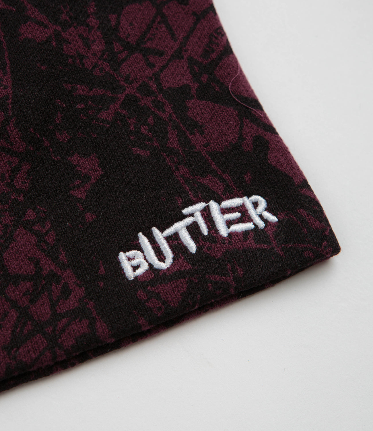 Butter Goods Woods Camo Skully Beanie in Rust. Single sized and made from 100% acrylic, this Butter Goods beanie is uncuffed. Finished in red brown with contrast embroidered branding.