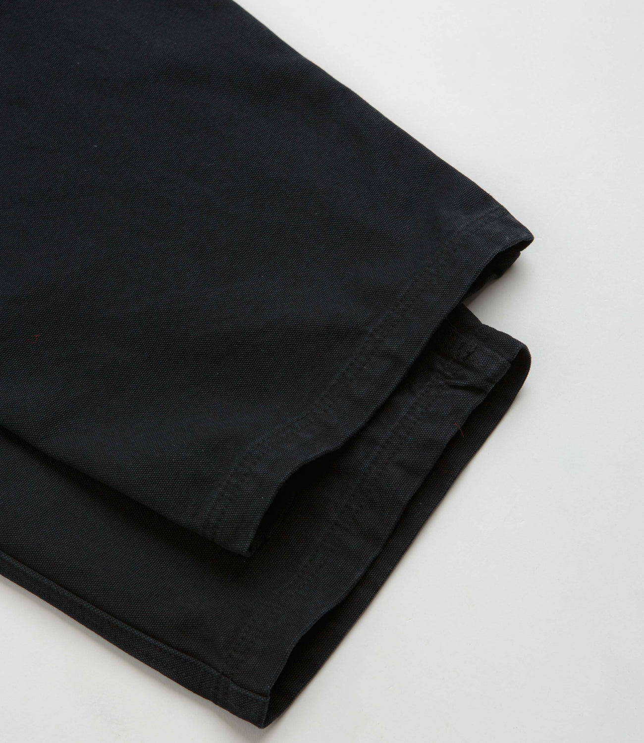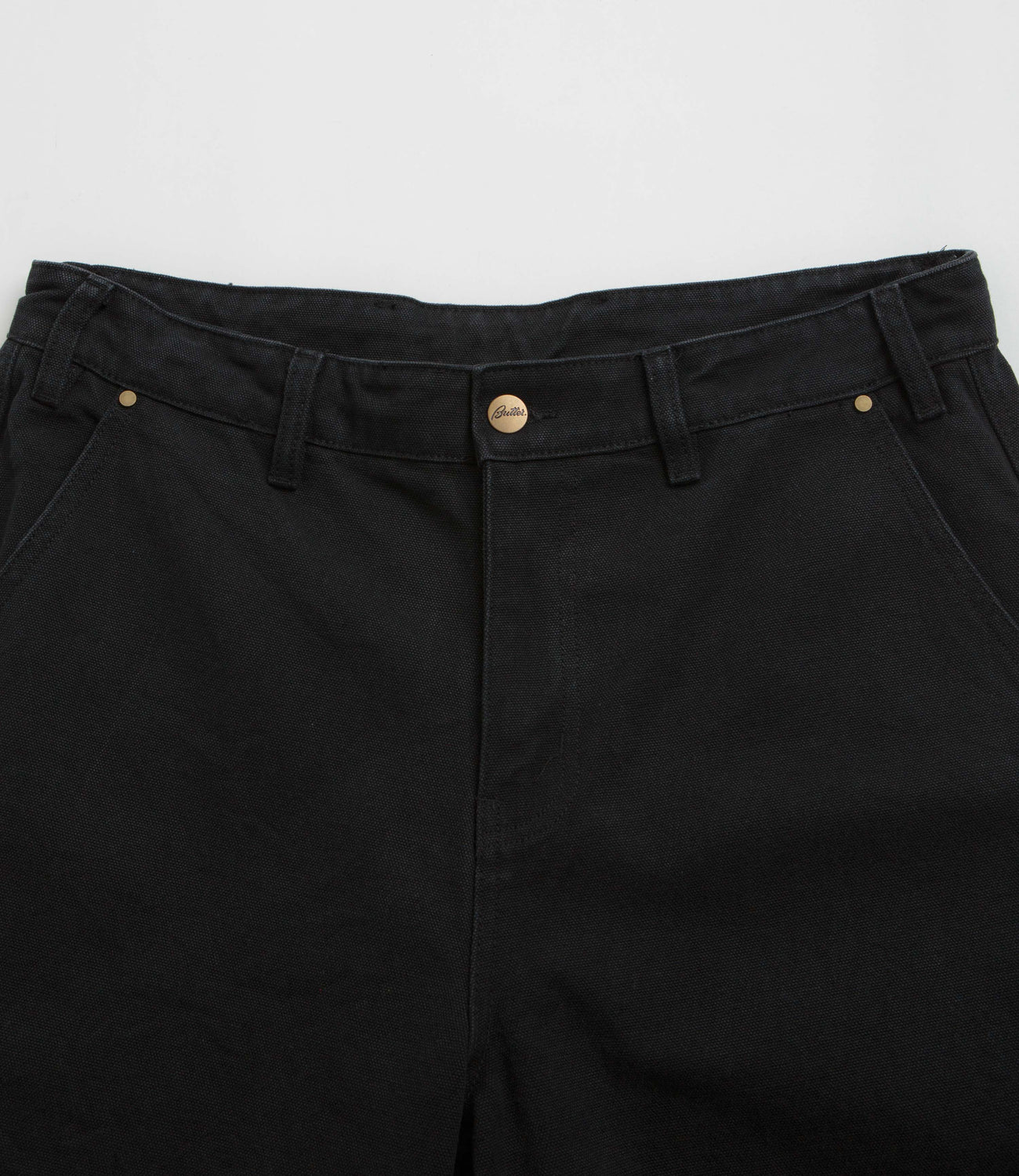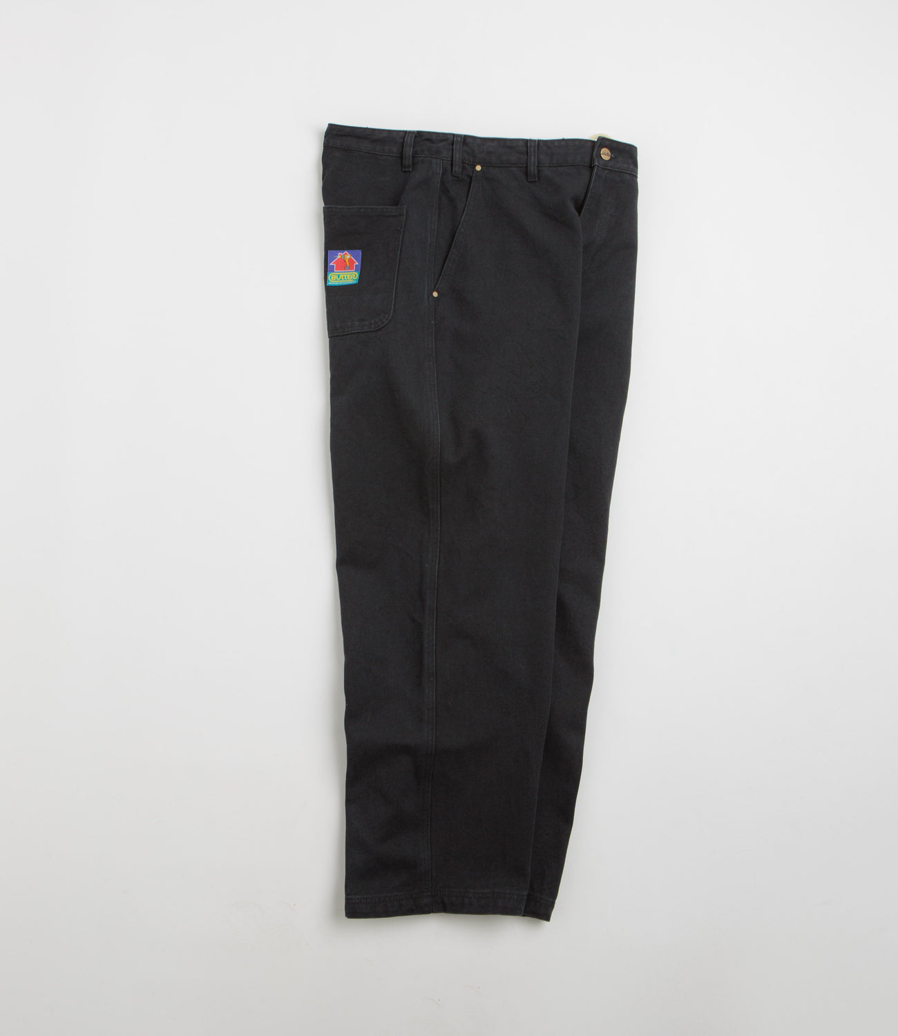 Butter Goods Work Pants in Black. Made from 100% cotton canvas, these baggy fitting Butter Goods pants are designed with a belt loop waistband and a zippered fly. Featuring two side pockets and two rear pockets, these black Butter Goods pants are finished with rivet details and woven flag label branding.