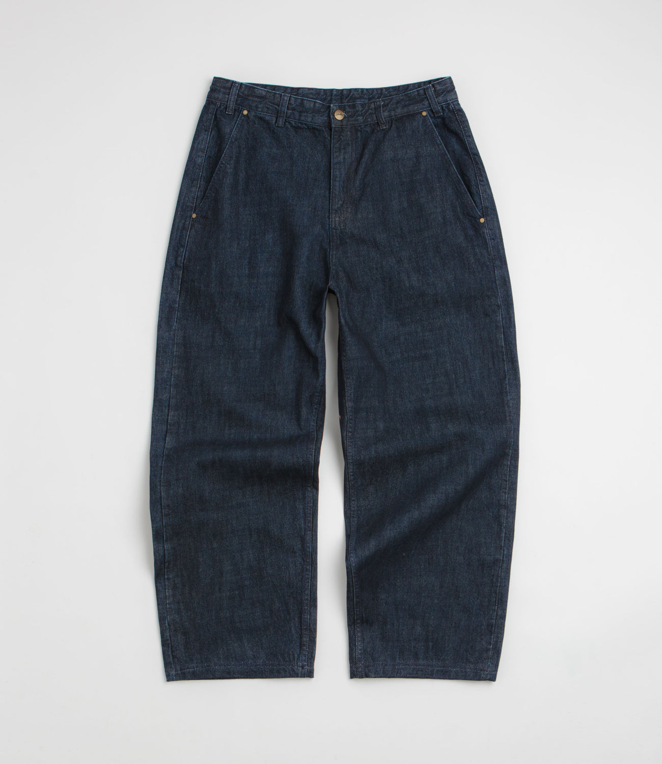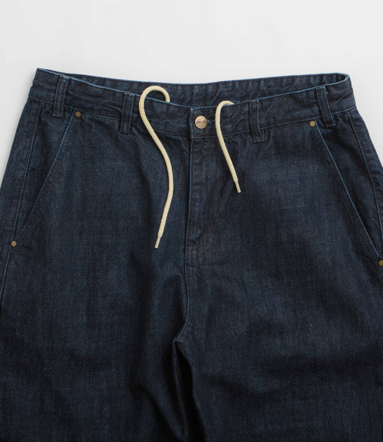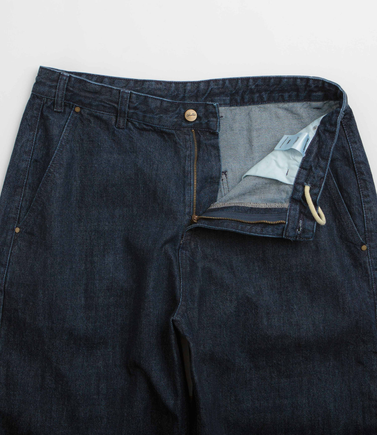 Butter Goods Work Pants in Selvedge Denim. Baggy fitting and made from 100% cotton denim, these Butter Goods pants are designed with a classic belt loop waist. Workwear inspired with two front pockets, two rear pockets and woven flag label branding.