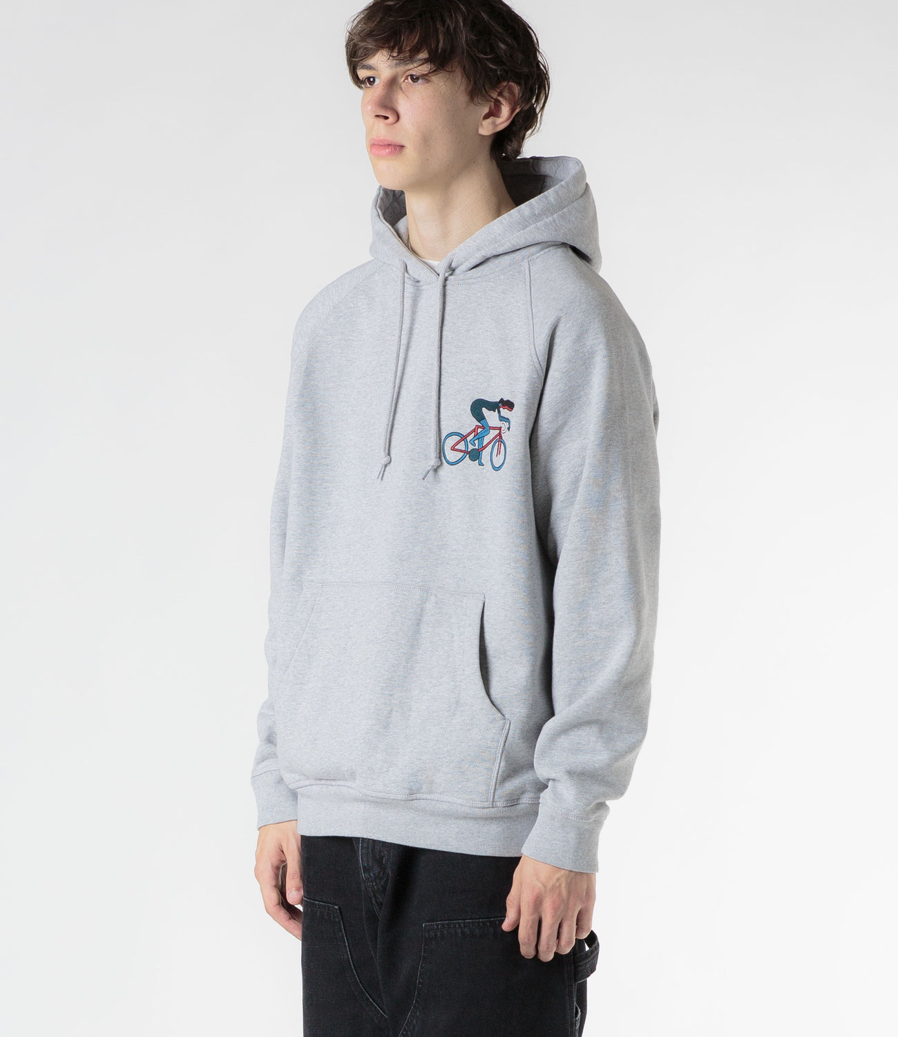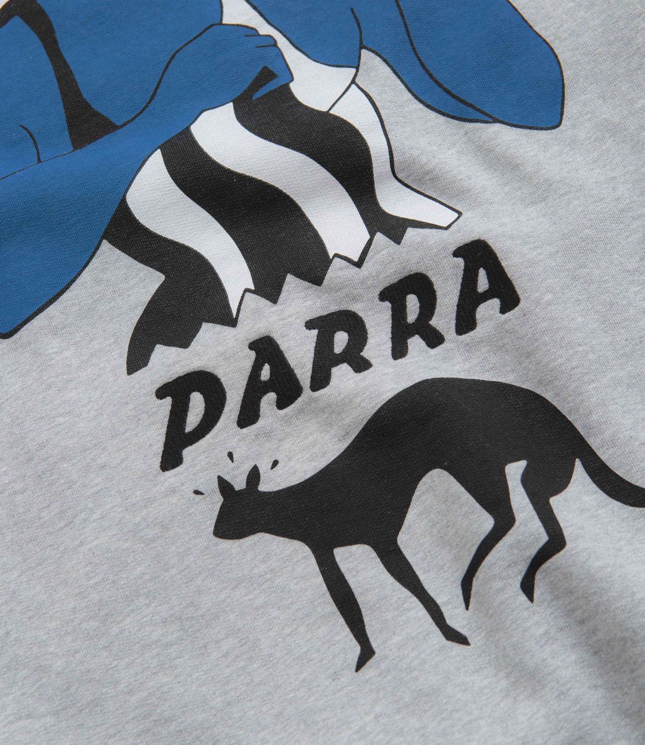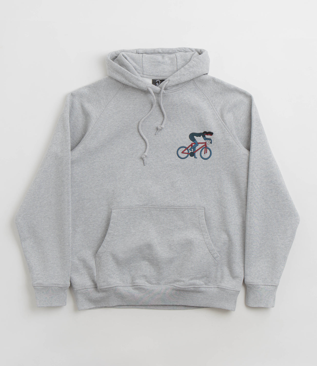 by Parra Cat Defense Hoodie in Heather Grey. Tailored to a regular fitting from 100% cotton, this by Parra hoodie is designed with a triple panel drawstring hood and raglan sleeves. Featuring rib knit cuffs and a woven elastic hem, this grey by Parra hoodie is finished with a kangaroo front pocket with an embroidered left chest graphic and screen printed rear artwork.
