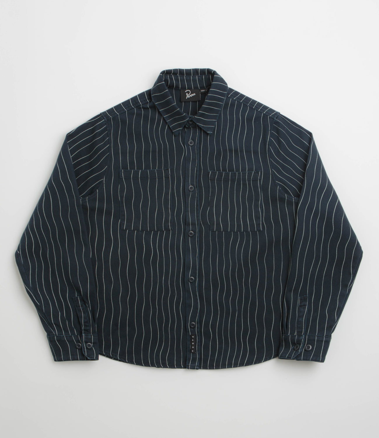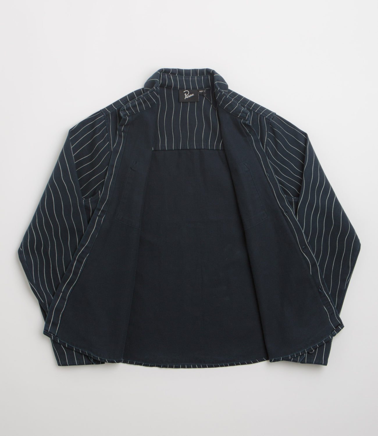 A heavyweight cotton shirt built for everyday wear with a touch of personality. The all-over stripe pattern gives it a classic yet distinctive look, while the stand collar, full-length buttons, and adjustable cuffs make it versatile for layering. Practical chest pockets, an embroidered rear logo, and a curved hem finish it off with subtle detailing.