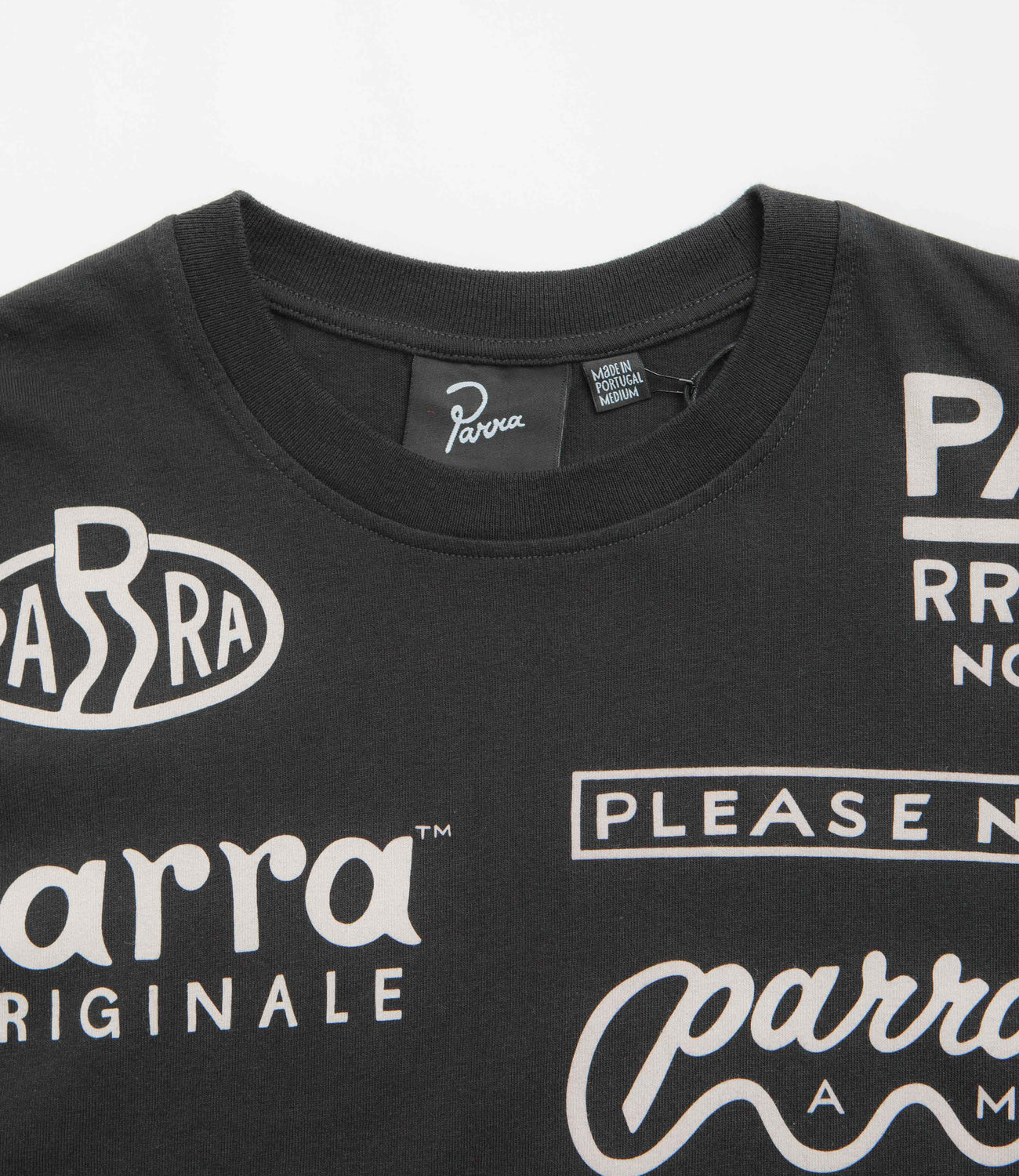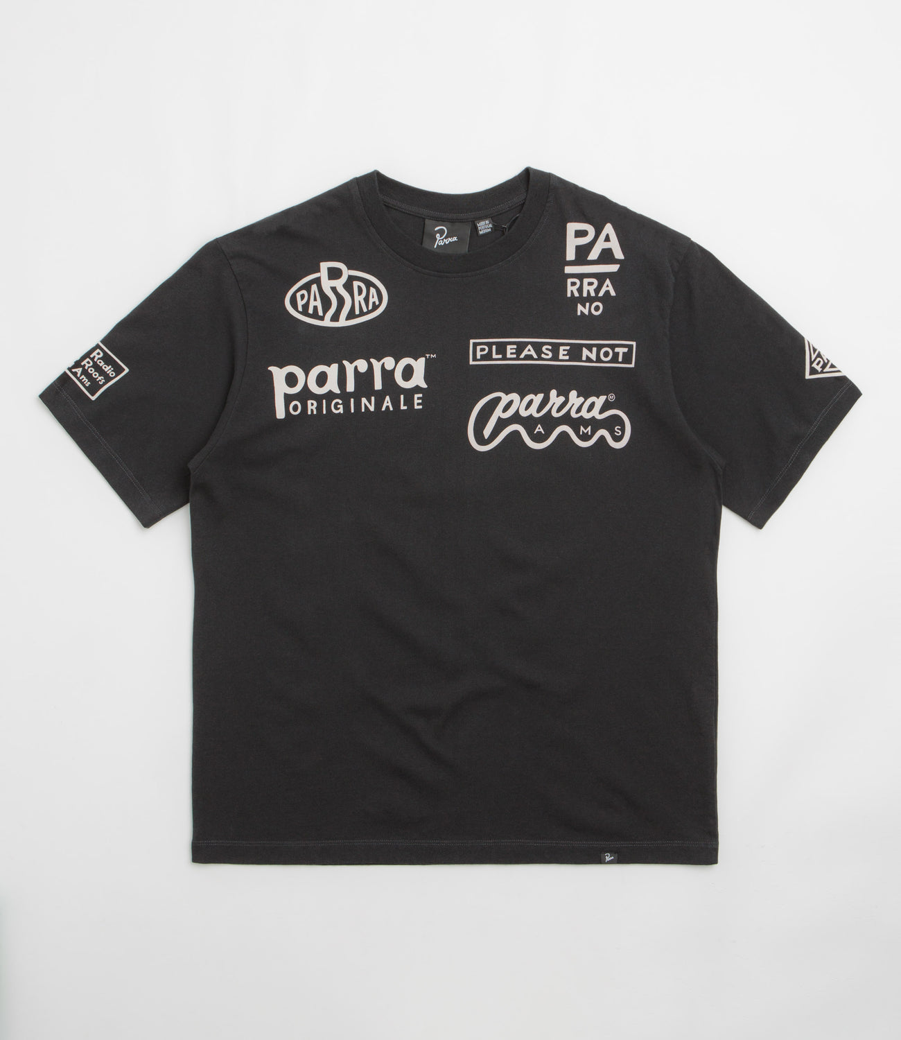 Crafted from 100% cotton, this black by Parra t-shirt is covered in printed graphics on the front, back, and sleeves for an expressive look. With a ribbed crew collar and regular fit, it’s comfortable for everyday wear, and a woven label adds a signature finishing detail. A standout tee that captures Piet Parra’s bold style.