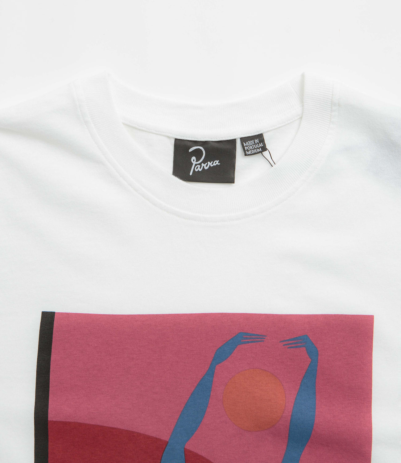 Made from 100% cotton, this white by Parra t-shirt keeps things simple while letting the artwork speak for itself. Featuring a ribbed crew collar and regular fit, it offers a comfortable, everyday silhouette. Finished with a printed graphic and woven label, it’s an easygoing tee with a bold, by Parra touch.