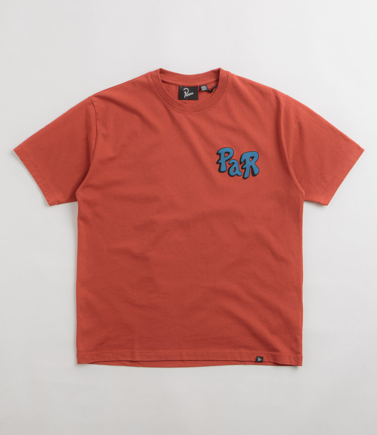 by Parra Wheeled Bird T-Shirt in Rust. Part of the brand’s latest collection, this regular fitting by Parra t-shirt is designed with a rib knit collar and a flag labelled hem. Made from 100% cotton and finished in a shade of brown with printed front and rear graphics.