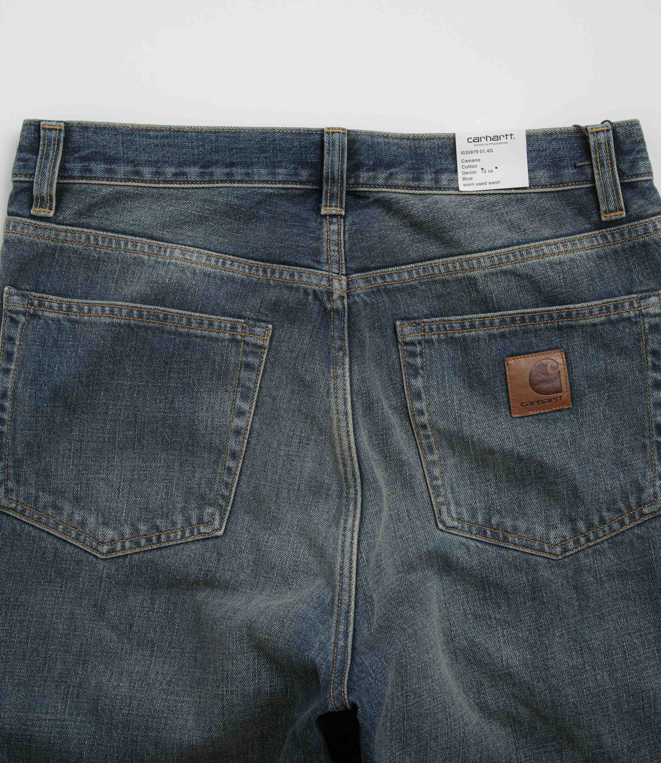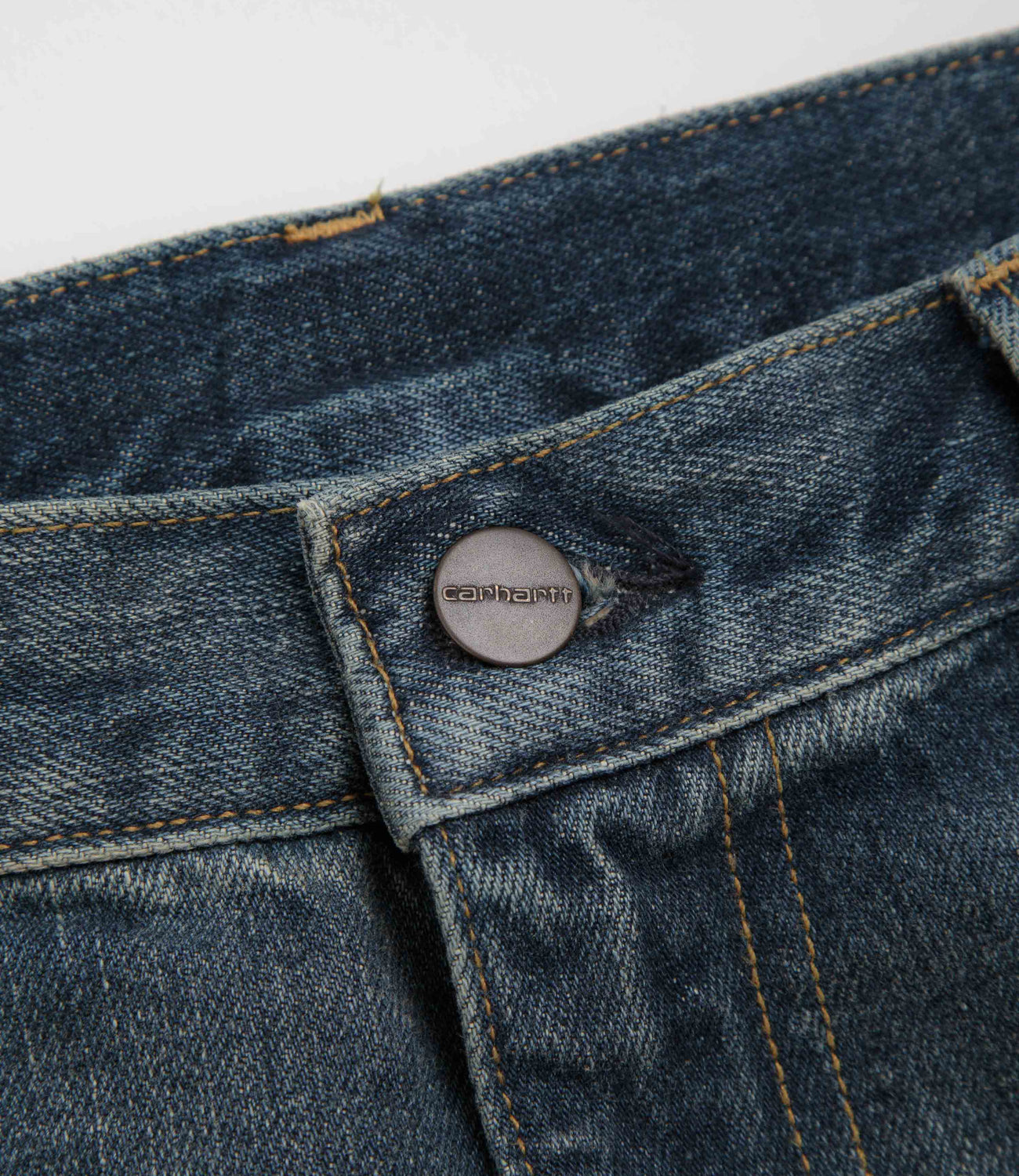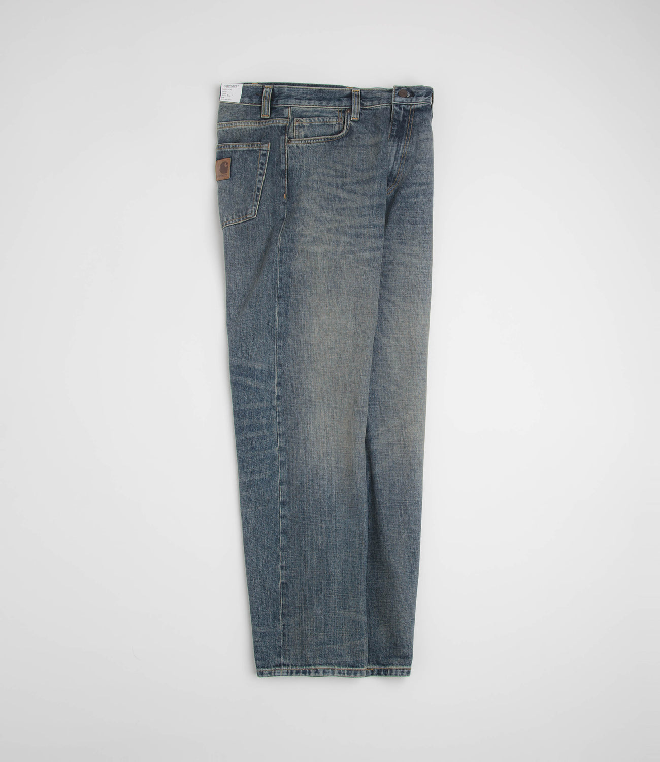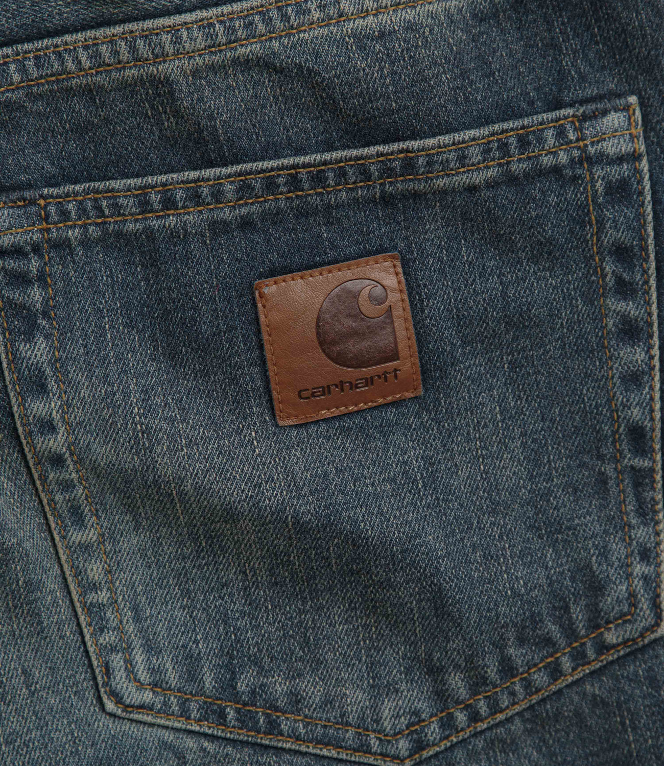 Broken-in from day one, the Aaron Pants take classic workwear shapes and make them feel everyday-ready. Cut from heavyweight Smith denim and worn, used washed for that perfect faded tone, they’ve got the right mix of structure and ease. A regular fit with a gentle taper keeps the silhouette clean, whether you’re skating or just getting through the day. Finished with all the Carhartt details you’d expect - coin pocket, zip fly, faux leather patch - simple, solid, and built to handle whatever you have planned.