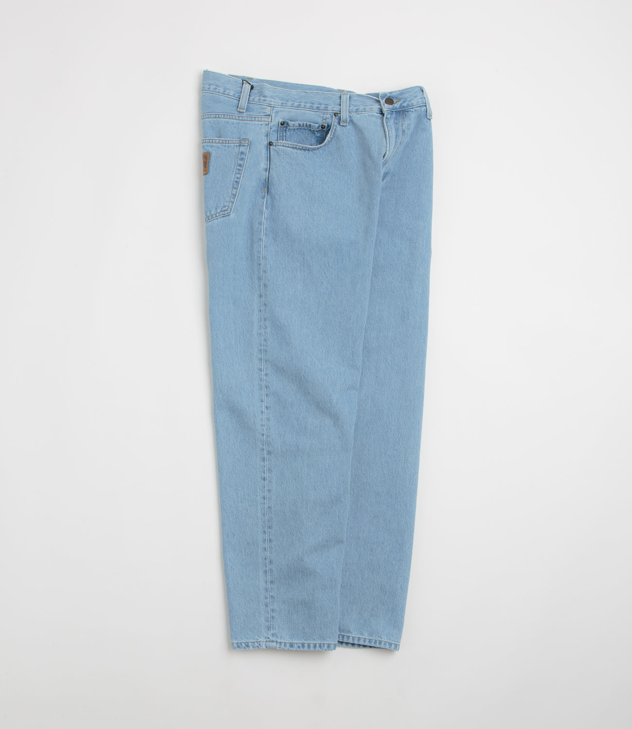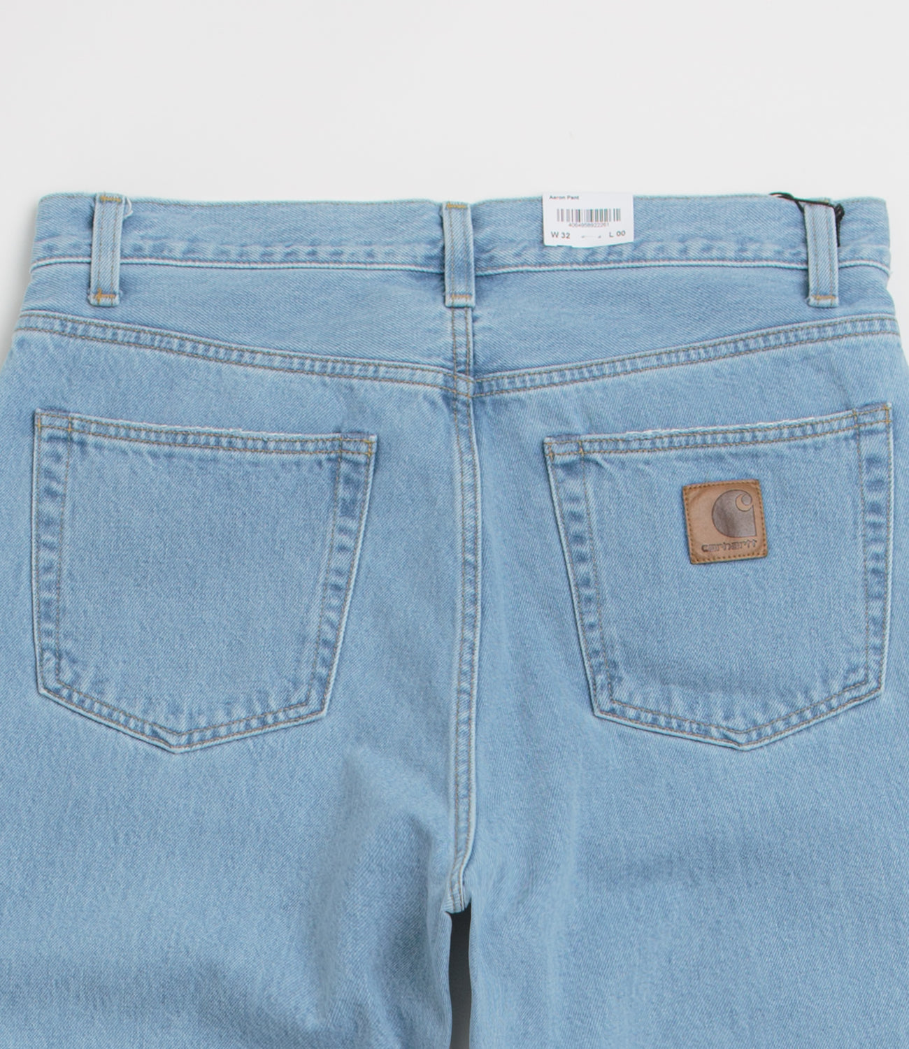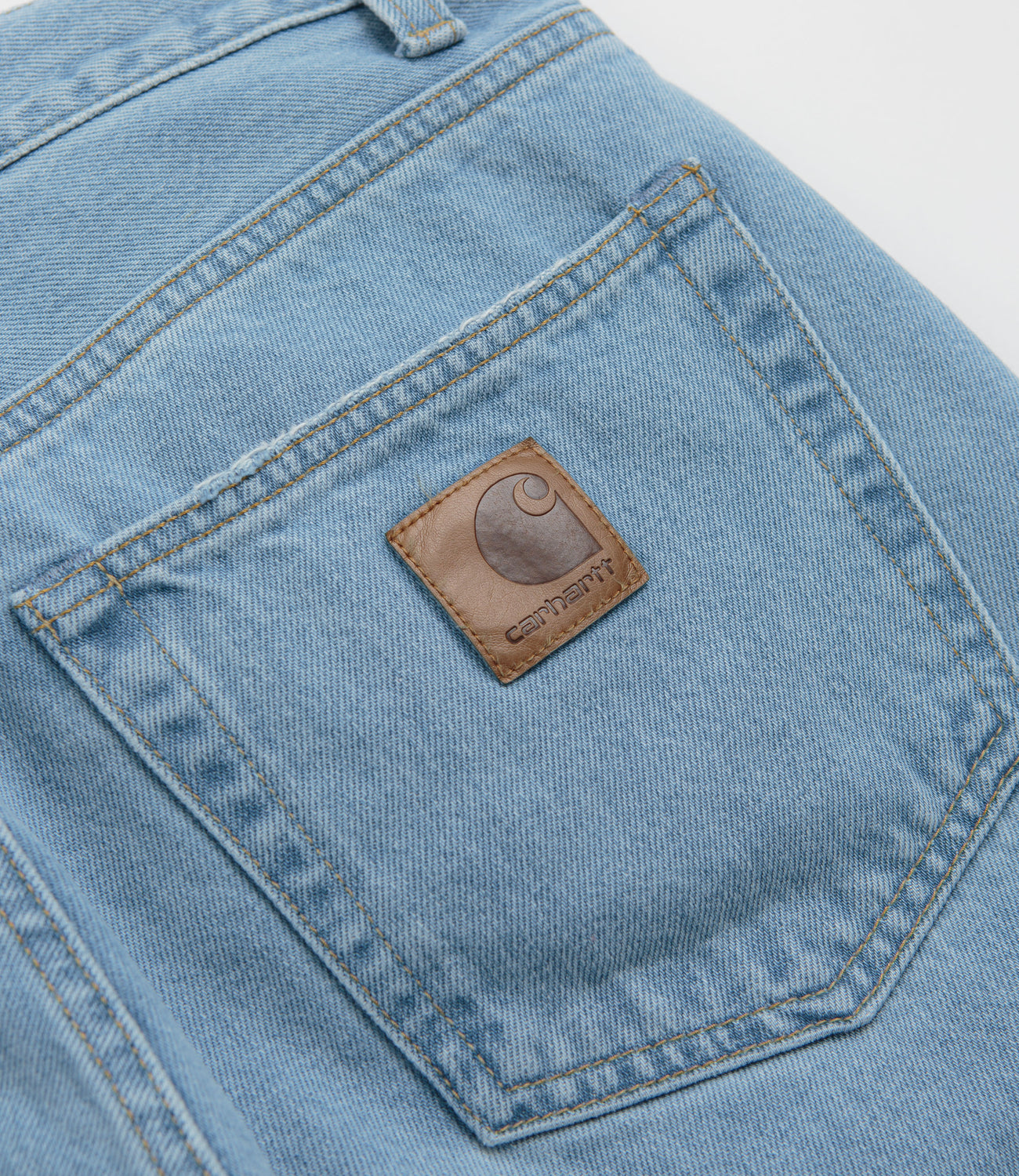 The Aaron Pants land somewhere between workwear and weekend - made from sturdy Smith denim that’s been bleached down to a sun-faded blue. The fit’s regular up top with a gentle taper through the leg, easy to wear skating or for everyday errands. You’ve got all the essentials covered: belt loops, zip fly, four-pocket setup plus a coin pocket, finished with contrast stitching and a low-key Carhartt patch at the back.