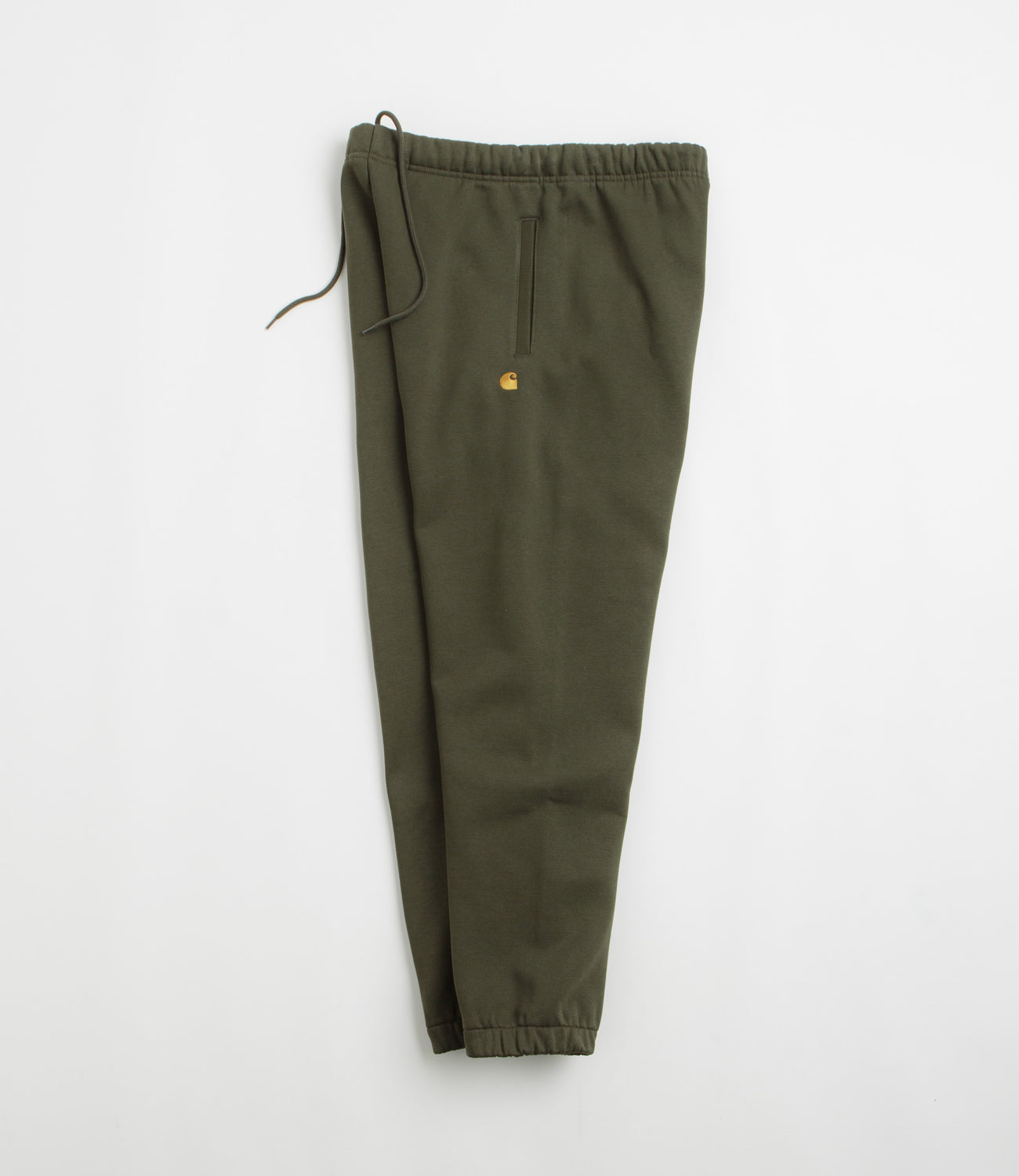 Loose, laid-back and ready for whatever your day throws at you. These Carhartt Chase sweatpants blend cotton and polyester for that perfect mix of softness and durability. The elastic waistband and ribbed cuffs keep things comfortably in place, while two side pockets and a rear pocket give you just enough space for your essentials. Finished with subtle embroidered branding for a clean, classic look.