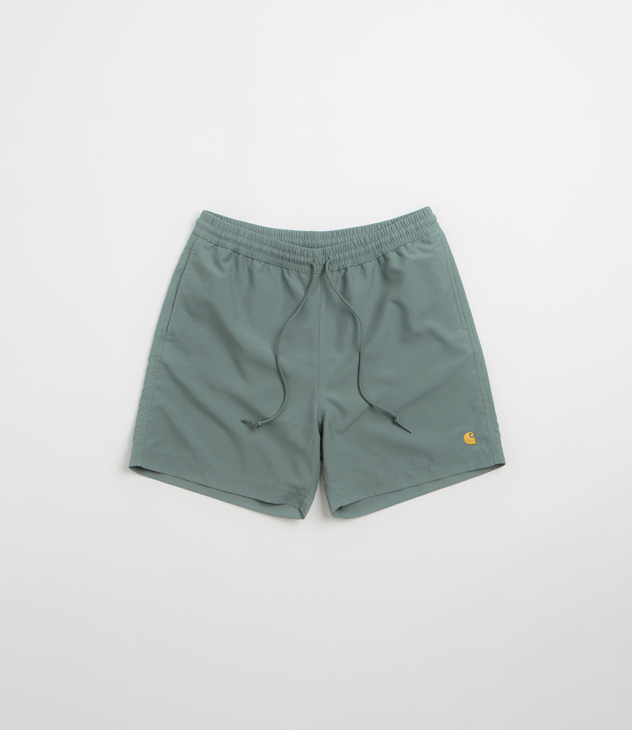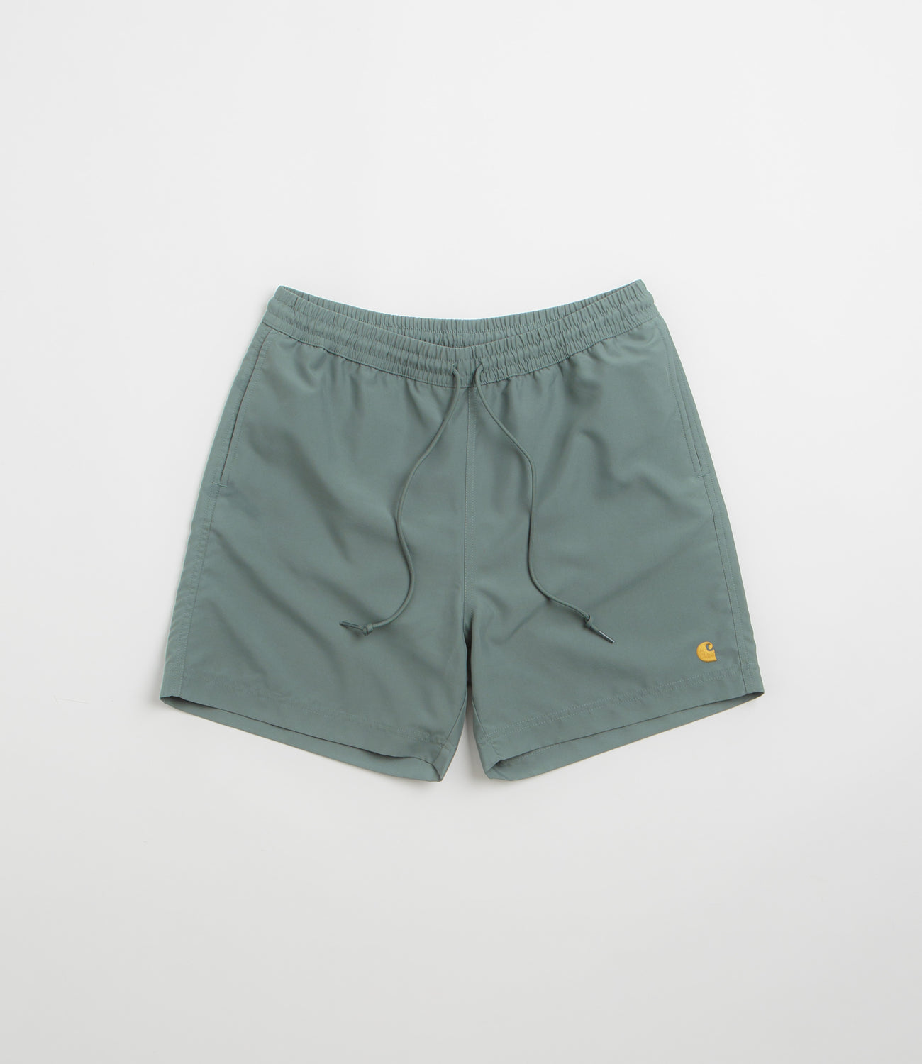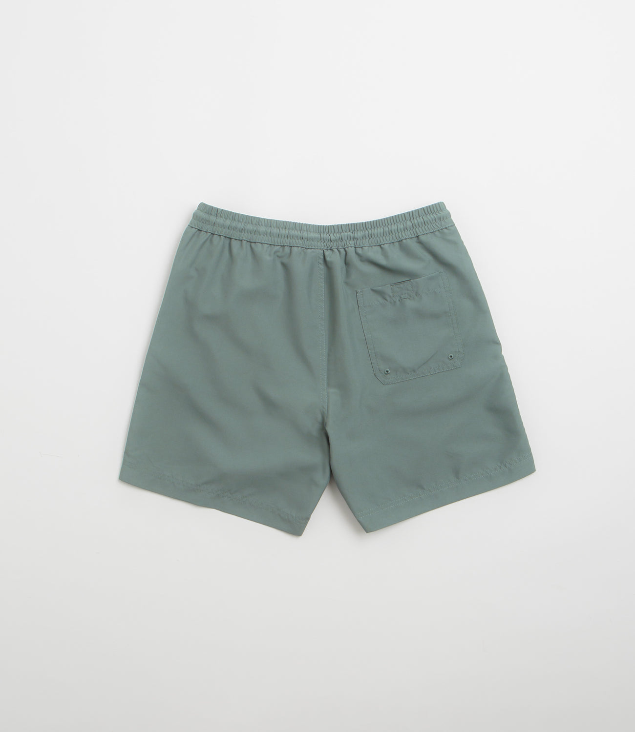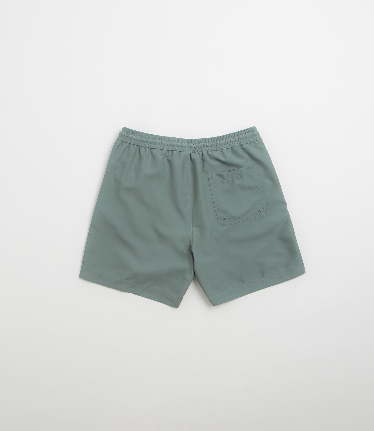 Crafted from 100% polyester with a water-repellent finish, these Carhartt swim trunks are lightweight, comfortable, and built for easy movement. The regular fit comes with an elasticated drawcord waistband, inner trunk lining, two side pockets, and a rear pocket for practicality. Finished with an embroidered logo, they’re a simple, reliable pair for the pool, beach, or summer days on the move.
