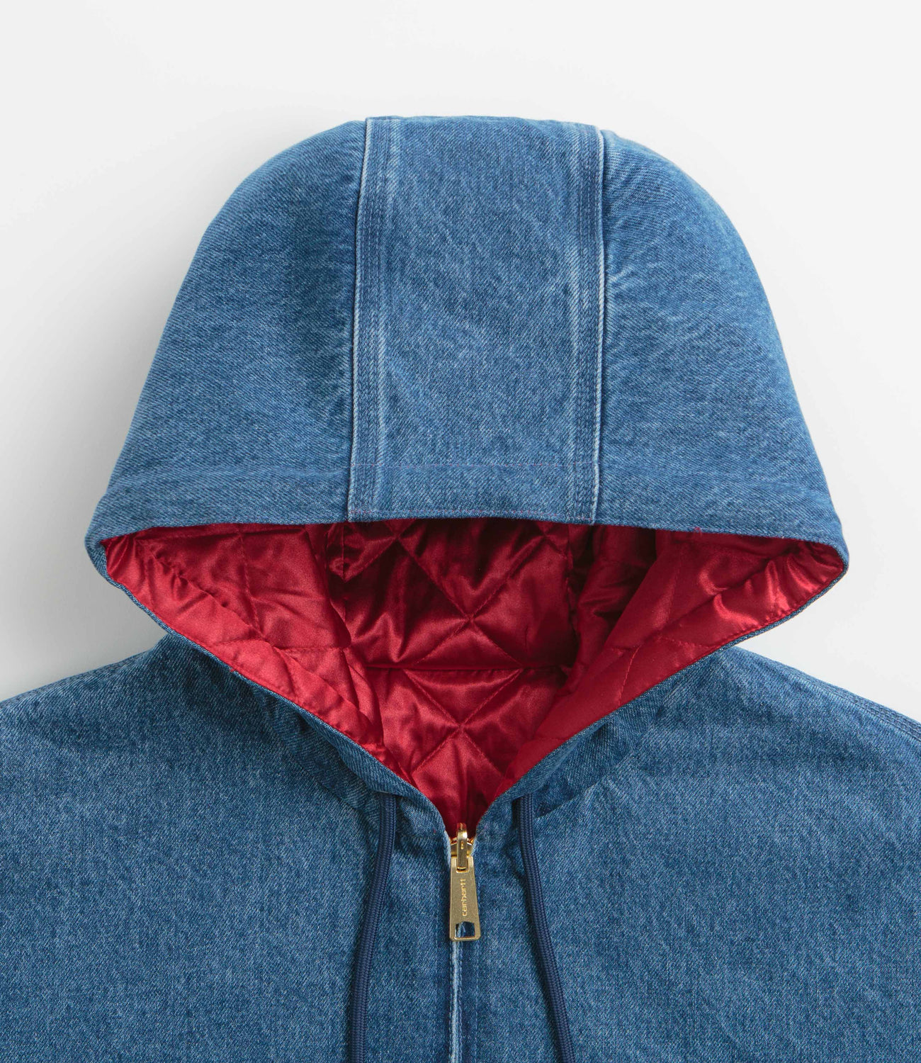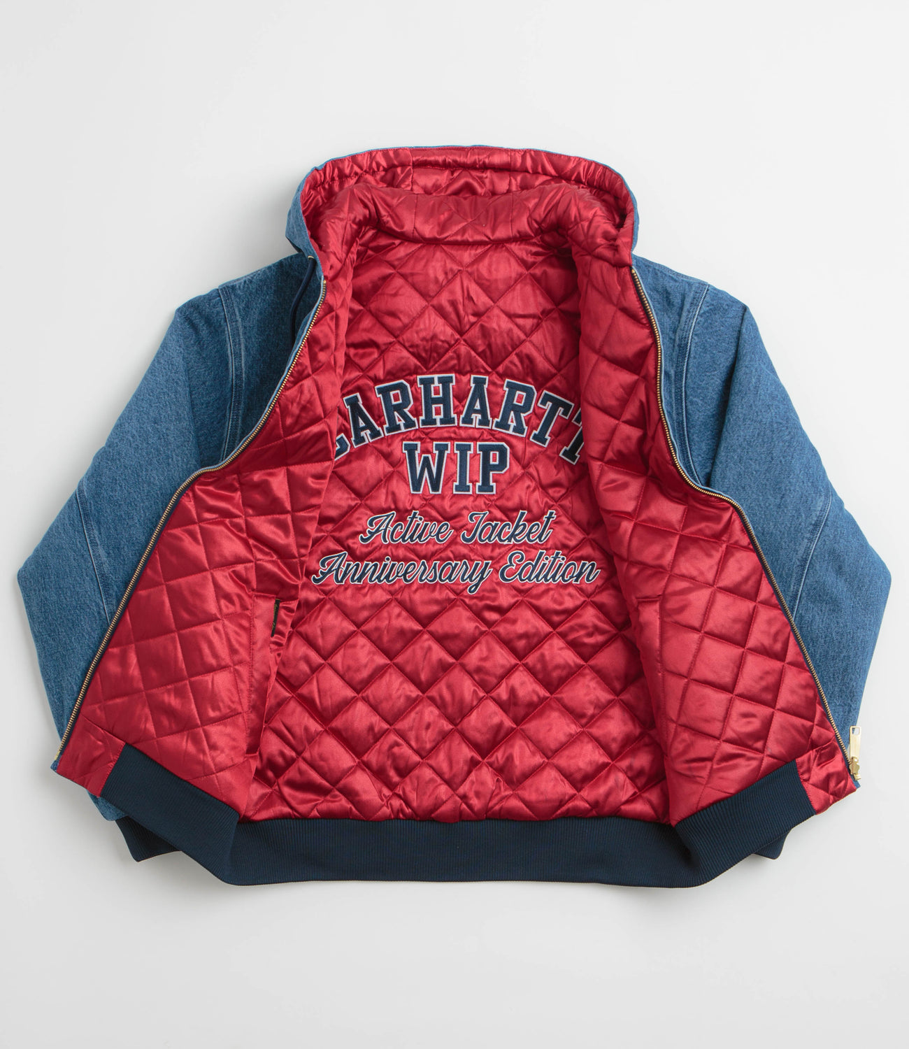 Marking 50 years of Carhartt, this Active Jacket blends heritage and versatility with a reversible design. One side is crafted from 100% organic cotton denim, while the reverse features a diamond-quilted polyester sateen lining with subtle embroidered detailing. Built to move with you, it has an adjustable drawcord hood, full-length zipper with a personalised reversible zip, and two front pockets for easy storage. Triple-stitched seams, ribbed cuffs and hem, and a woven anniversary label highlight lasting quality, all in Carhartt’s original loose fit for everyday wear.