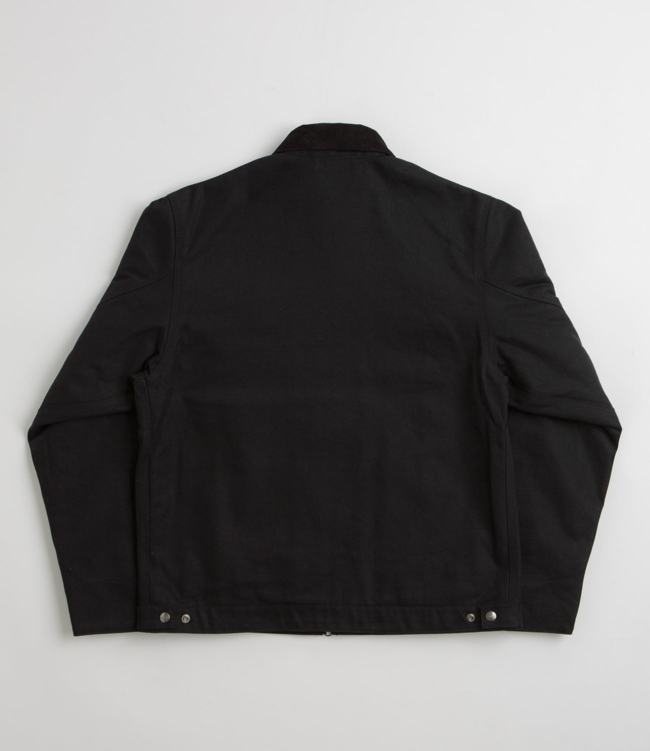 - Corduroy stand collar, zip front, and adjustable cuffs