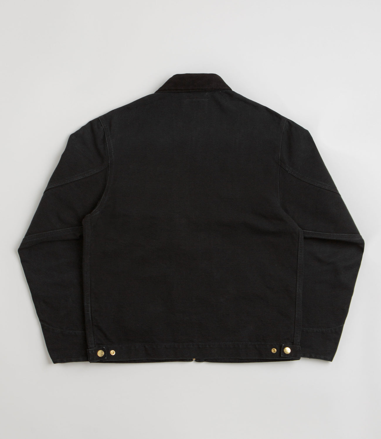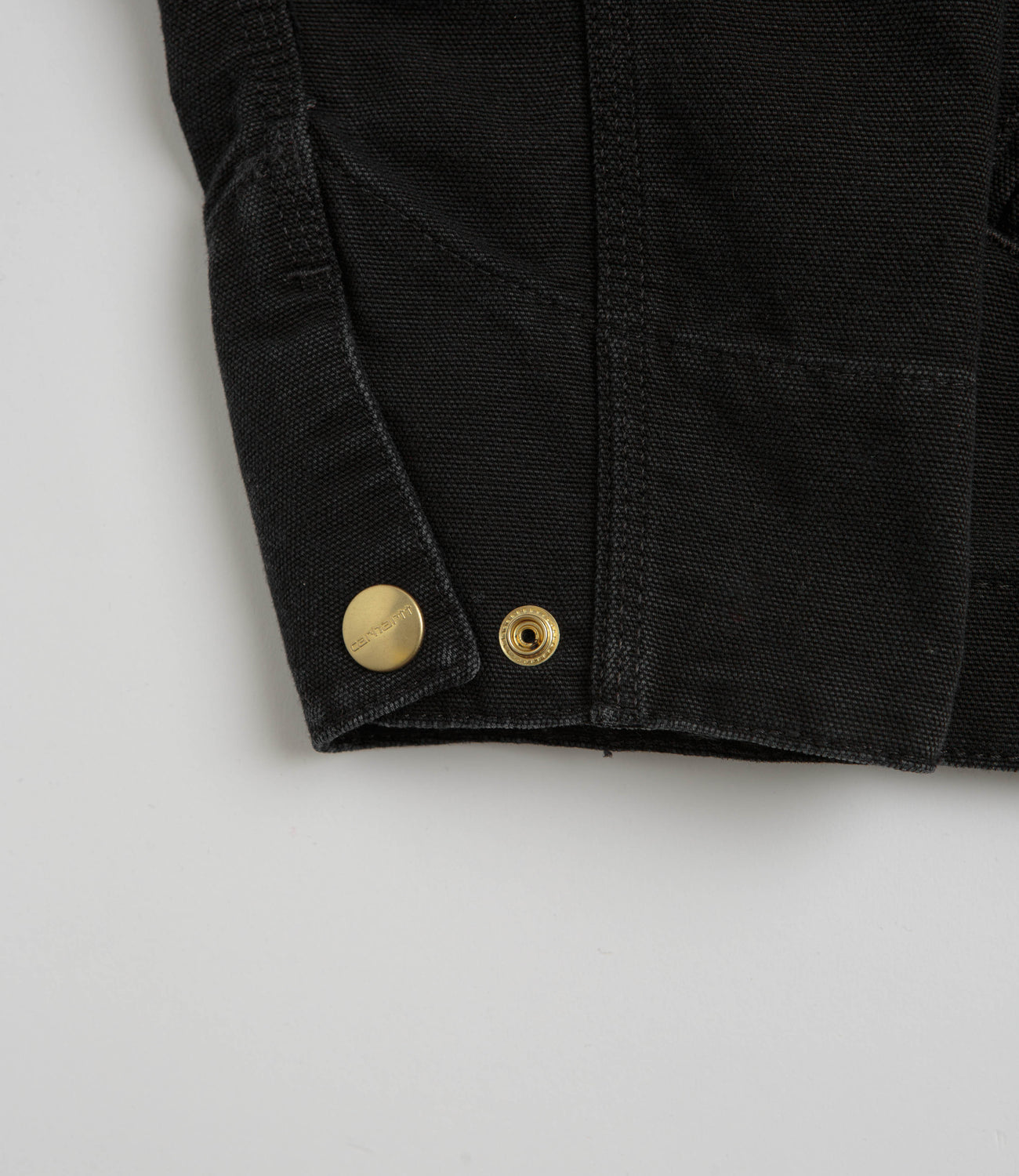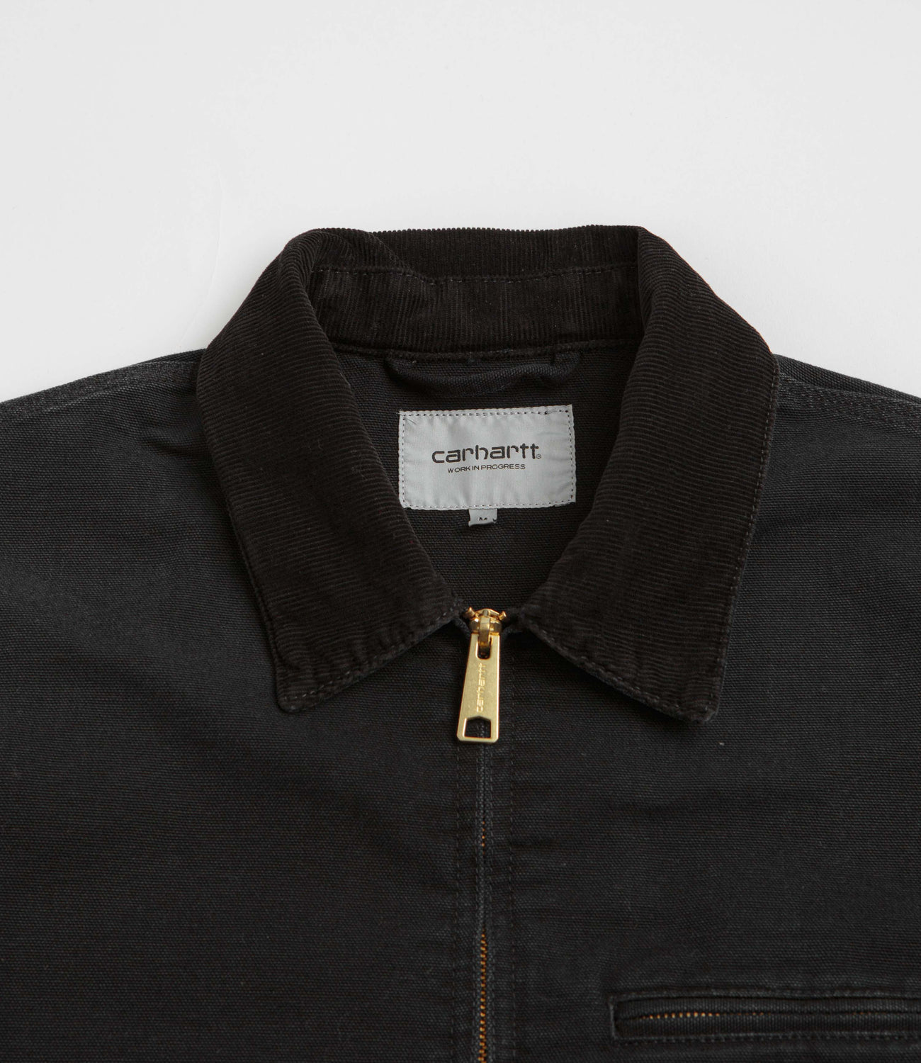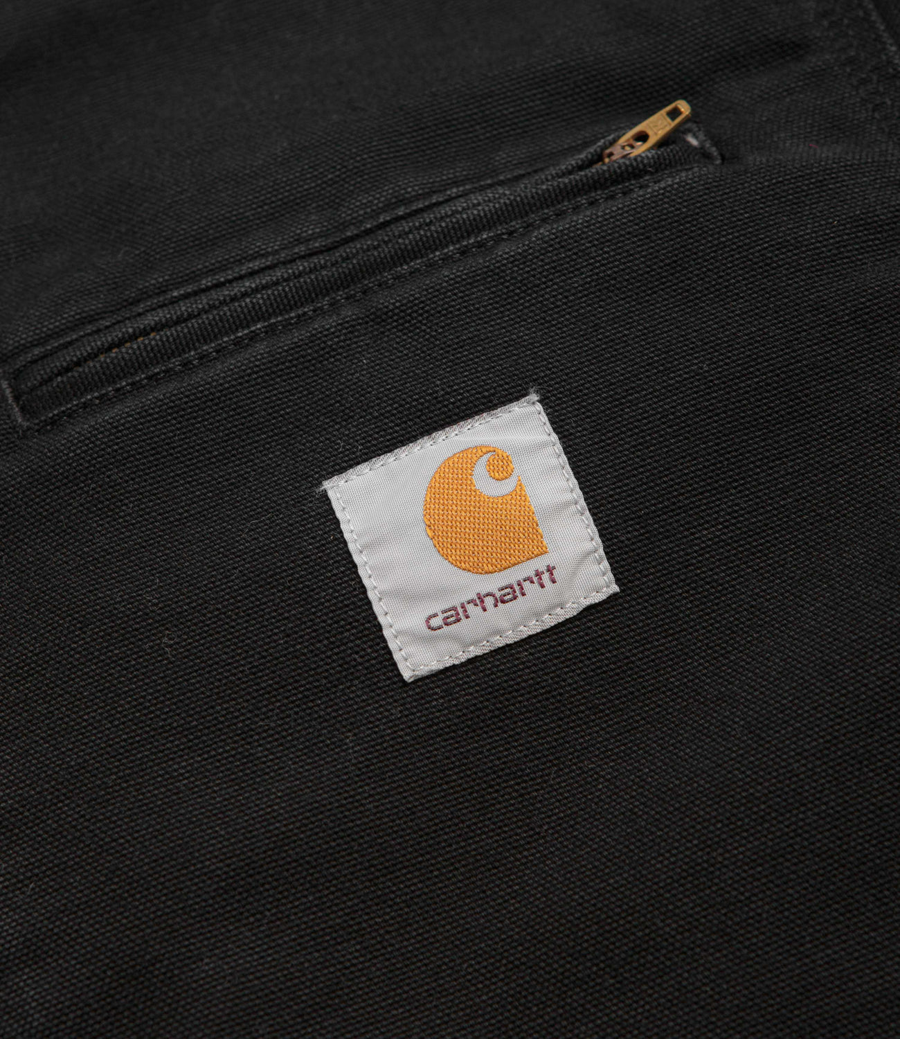Carhartt Detroit Jacket in Black and Black Stone Canvas. Utility inspired and made from 100% organic cotton ‘Dearborn’ canvas, this Carhartt jacket is designed with a heavyweight construction. Featuring a stand collar, an unlined inner and a full length zipper fastening, this black Carhartt jacket is finished with a zippered chest pocket, two front pockets and woven flag label branding.