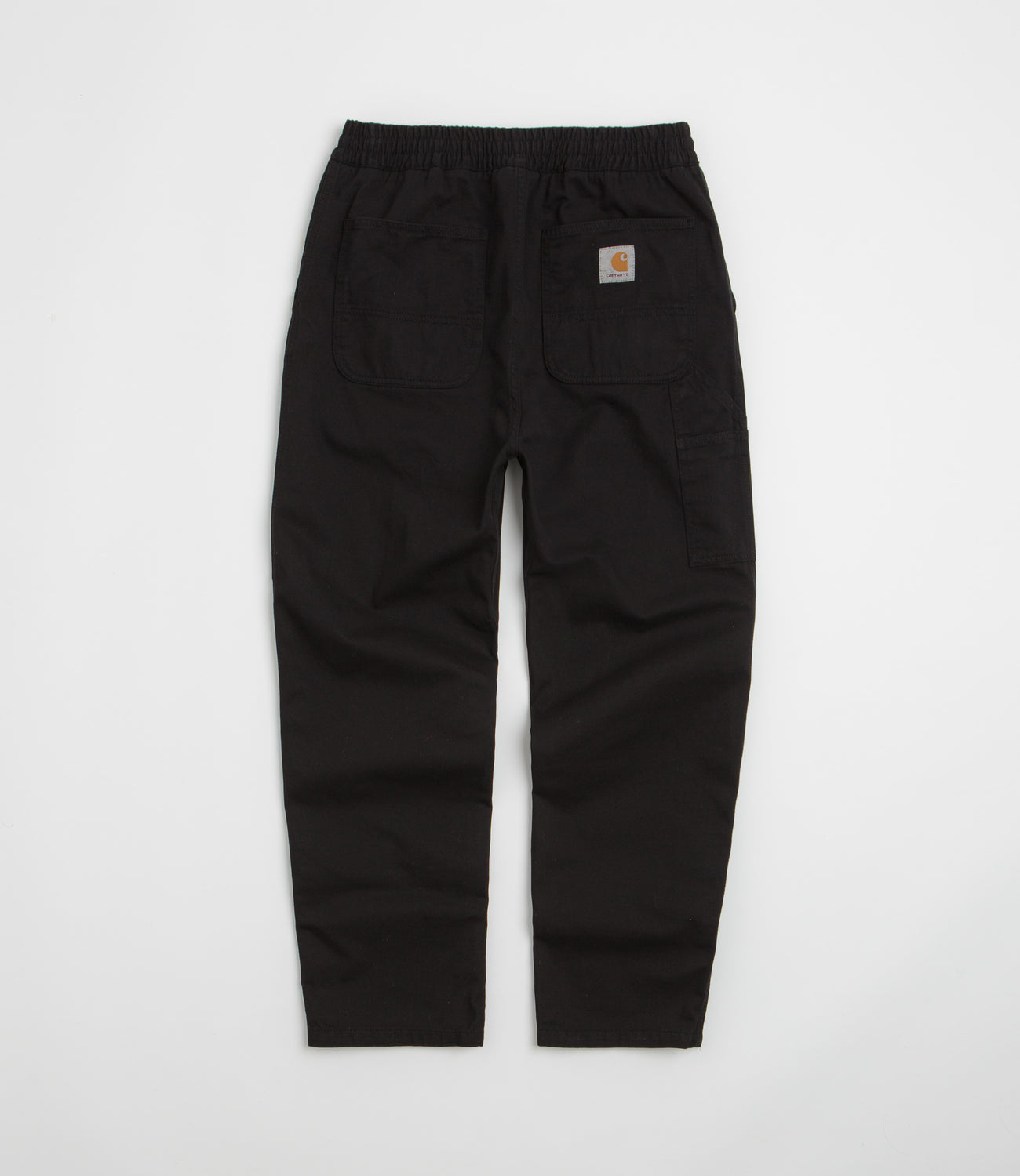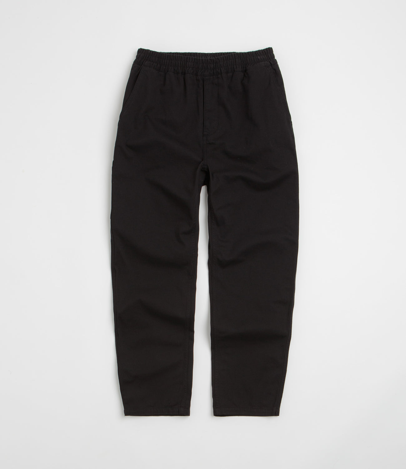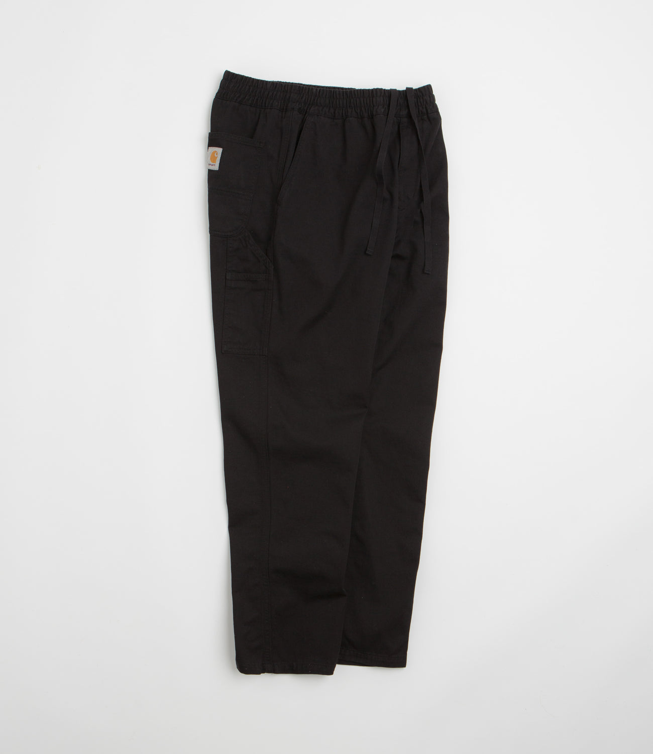 Made from 100% organic cotton ‘Moraga’ twill with a garment-dyed finish, these Carhartt pants are cut to a regular fit with a tapered leg for a clean, comfortable shape. They feature a woven elastic waistband with internal drawcords, a concealed YKK zipper fly, and practical storage with two side pockets, two rear patch pockets, and tool pockets on the right leg. Finished in black, they’re a durable, everyday-ready pair built for work or casual wear.