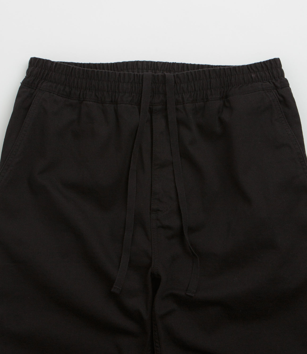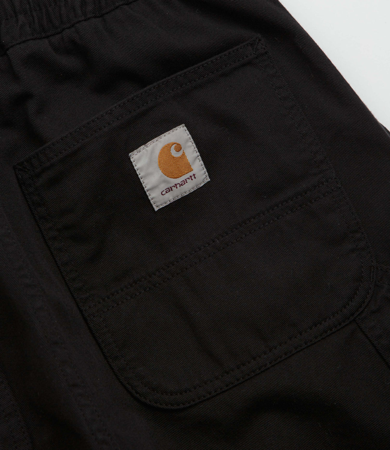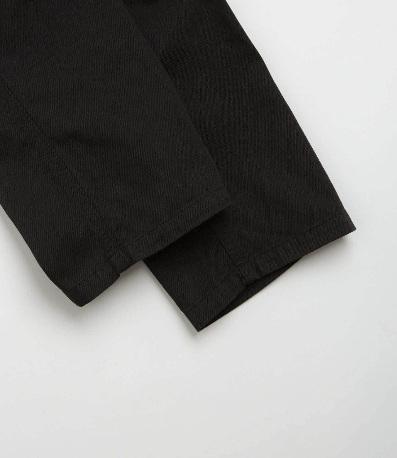 Made from 100% organic cotton ‘Moraga’ twill with a garment-dyed finish, these Carhartt pants are cut to a regular fit with a tapered leg for a clean, comfortable shape. They feature a woven elastic waistband with internal drawcords, a concealed YKK zipper fly, and practical storage with two side pockets, two rear patch pockets, and tool pockets on the right leg. Finished in black, they’re a durable, everyday-ready pair built for work or casual wear.