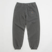 Carhartt Nelson Sweatpants in Graphite. Made from 100% cotton sweat, these Carhartt sweatpants are designed with a garment dye and an elasticated waistband. Finished in grey with two side pockets, a single rear pocket, elasticated cuffs and woven flag label branding.