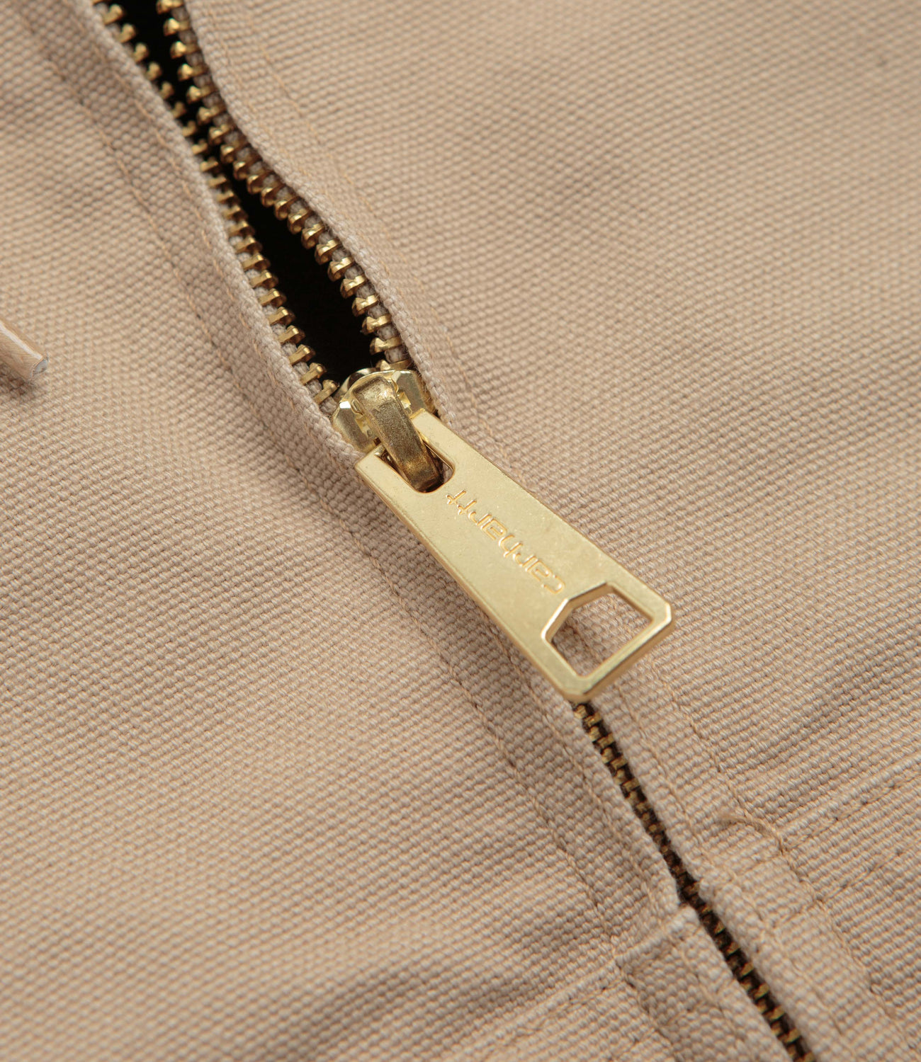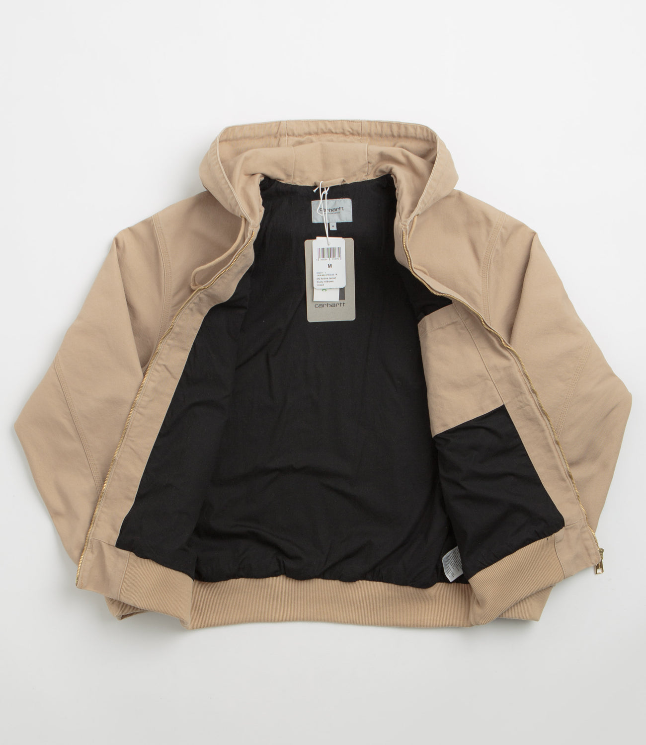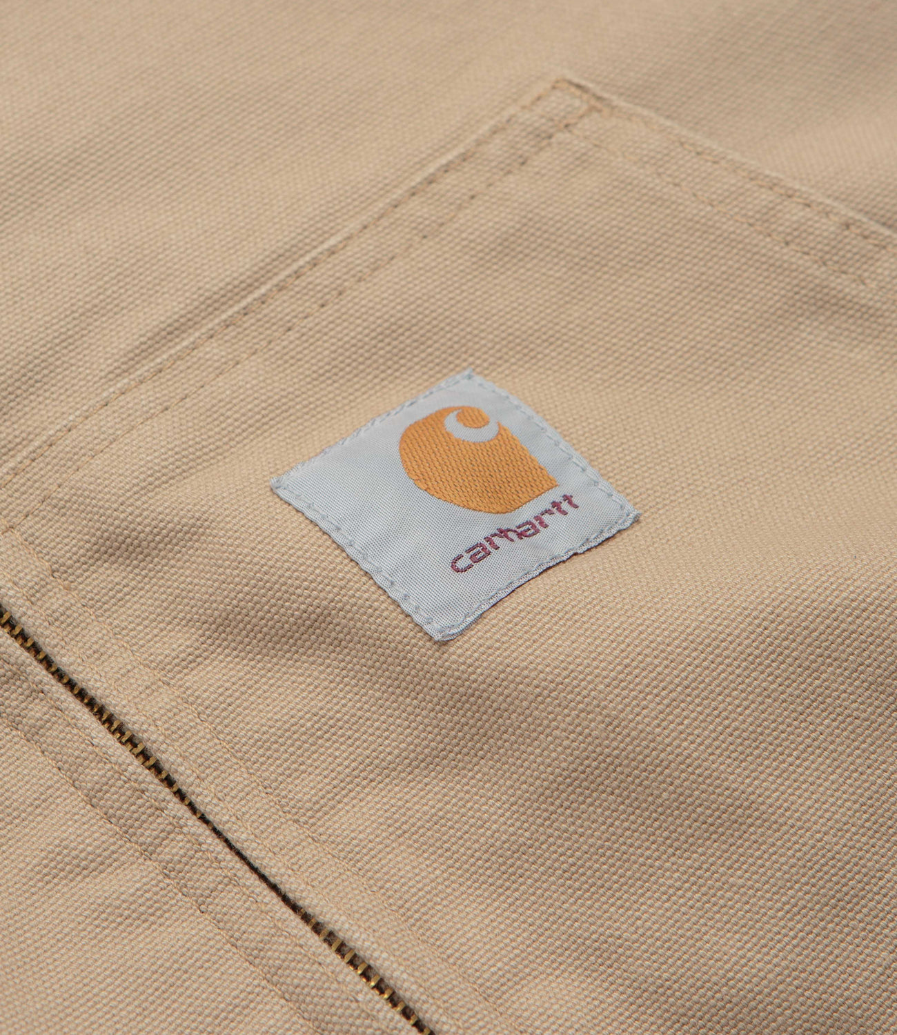 Carhartt OG Active Jacket in Dusty Hamilton Brown Rinsed. Tailored to an original loose fitting, this Carhartt jacket is made from 100% organic cotton ‘Dearborn’ canvas. Featuring a lined body, triple stitched seams and an adjustable drawstring hood, this brown Carhartt jacket is finished with a full length zipper fastening, ribbed cuffs, two front pockets and woven flag label branding.