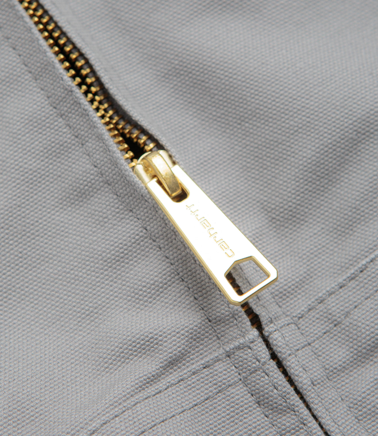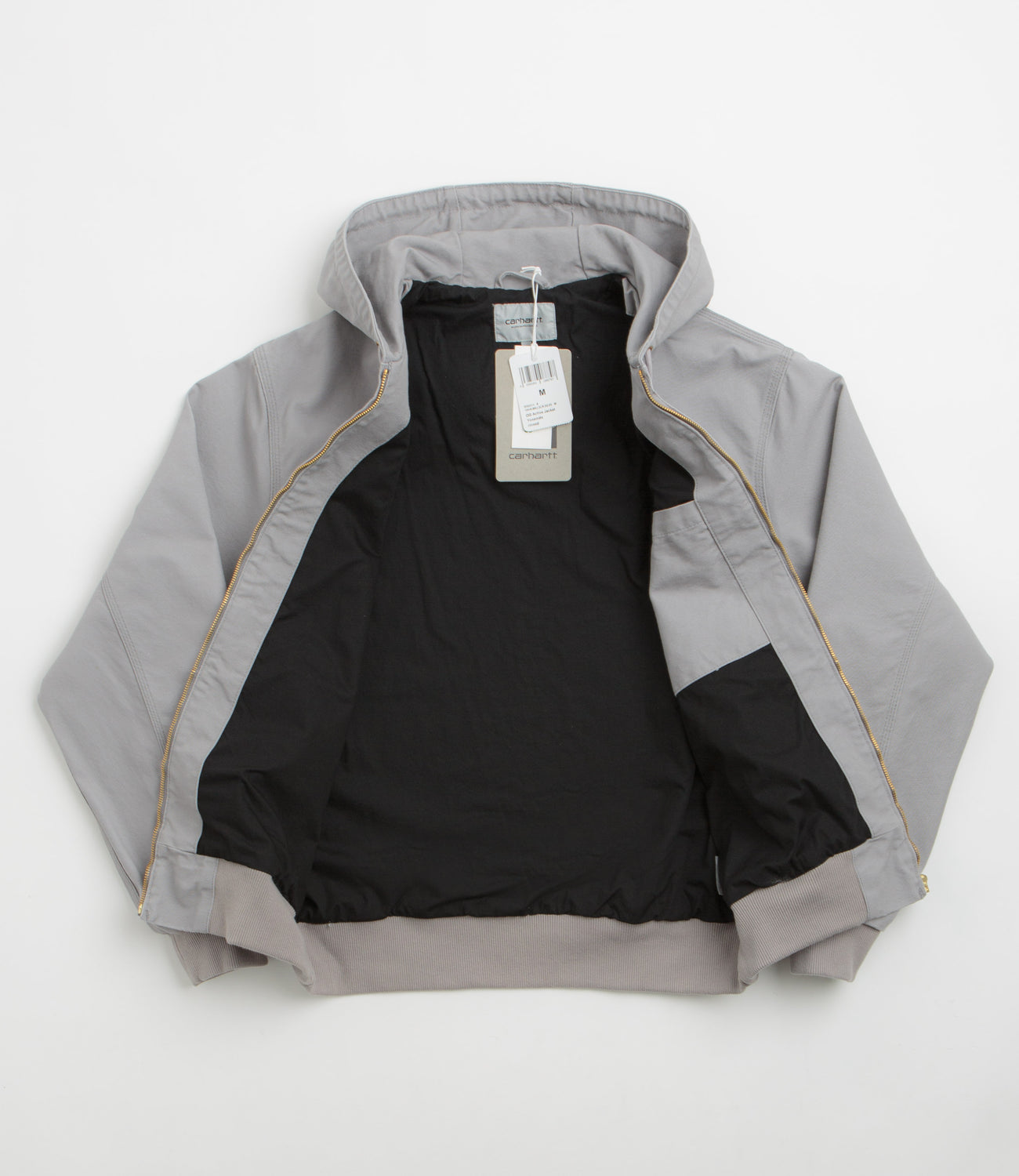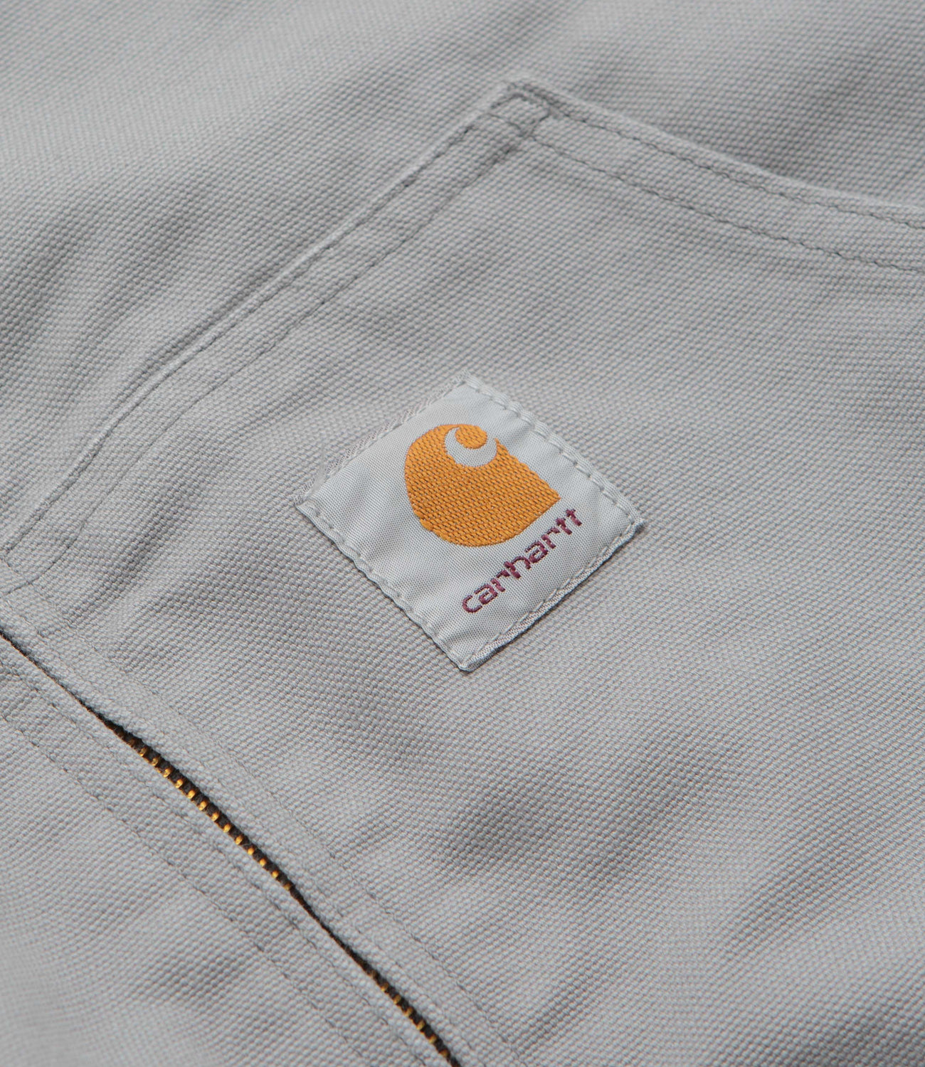 Carhartt OG Active Jacket in Yosemite Rinsed. Made from 100% organic cotton ‘Dearborn’ canvas, this loose fitting Carhartt jacket is designed with a rinsed fabric construction. Featuring a poplin lined body, an adjustable hood, a full length zipper fastening and ribbed cuffs, this grey beige Carhartt jacket is finished with two front pockets and woven flag label branding.