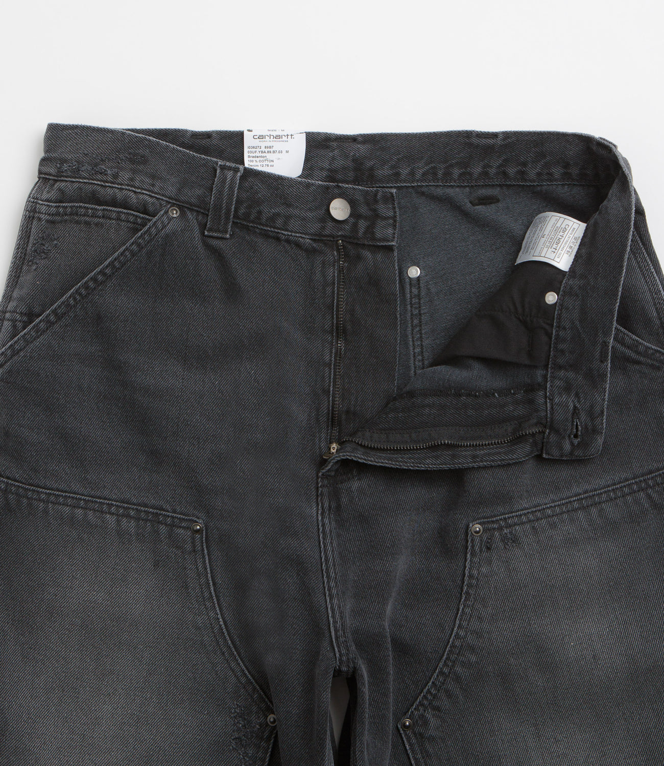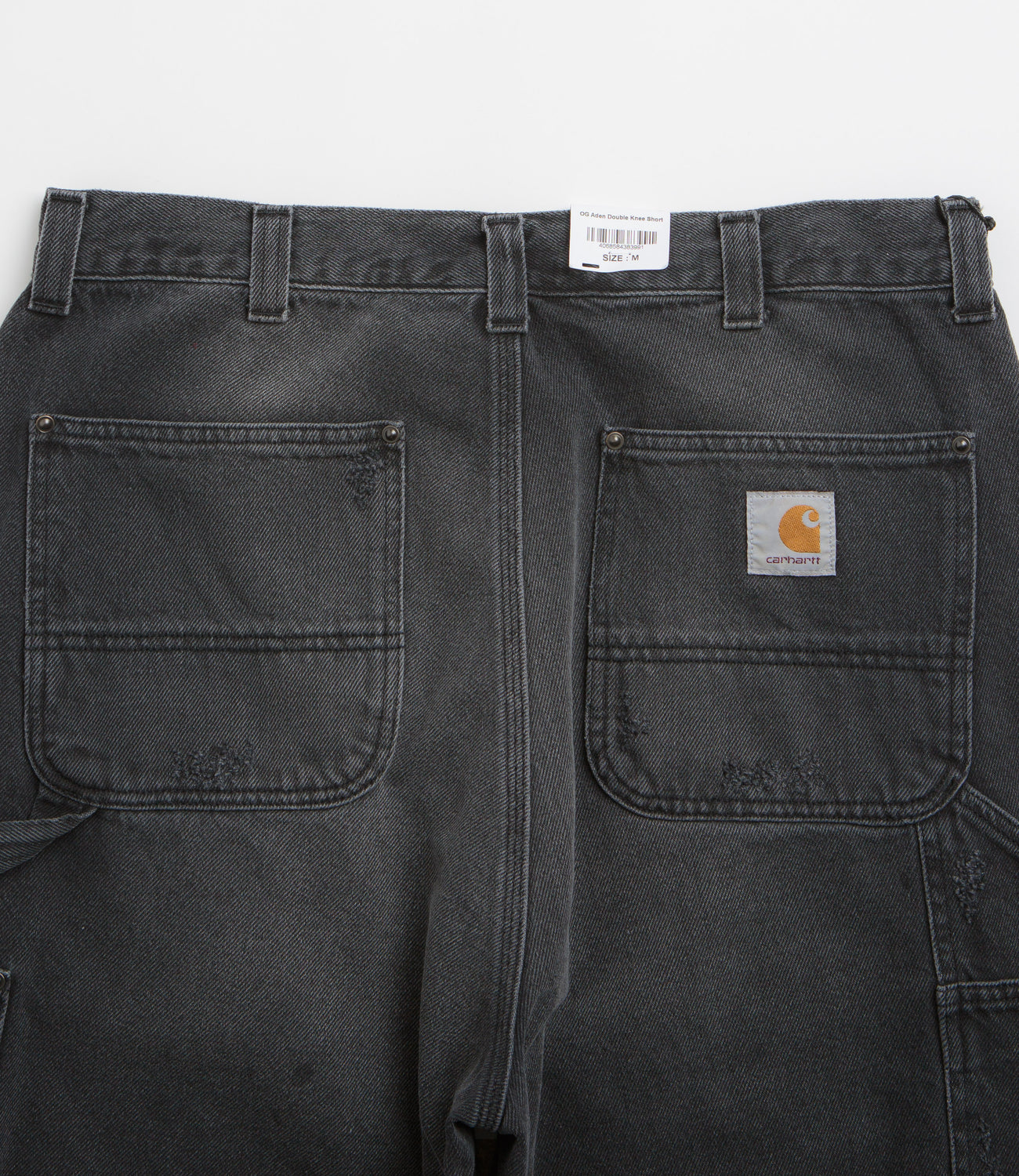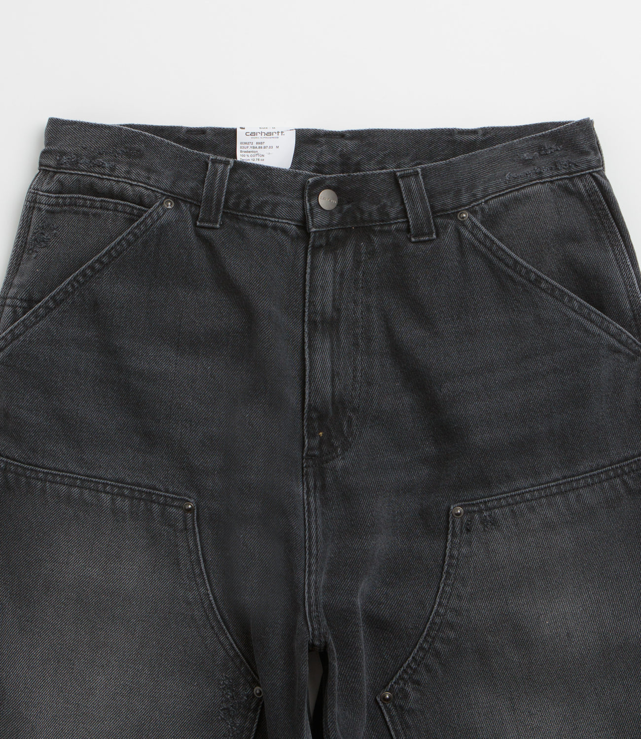 Built for days that demand both durability and ease, these Carhartt black denim shorts are made from 100% cotton with a washed finish. The wide fit and double-layered knees let you move freely wherever you're headed, whilst functional details like a woven hammer loop, extra tool pockets, and classic rivets mean they’re ready for whatever you need to carry. Plus, the belt loop waistband, zip fly, and five-pocket design keep things practical. Finished with a subtle woven label, these shorts blend workwear toughness with everyday wearability.