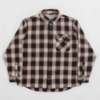 Carhartt Witten Shirt in Witten Check and Moonbeam. Workwear inspired and tailored to a loose fitting, this yarn dyed Carhartt shirt is made from 100% cotton herringbone. Featuring a classic stand collar, a full length button fastening, adjustable cuffs and a curved hem, this checkered Carhartt shirt is finished with a single chest pocket and woven flag label detailing.