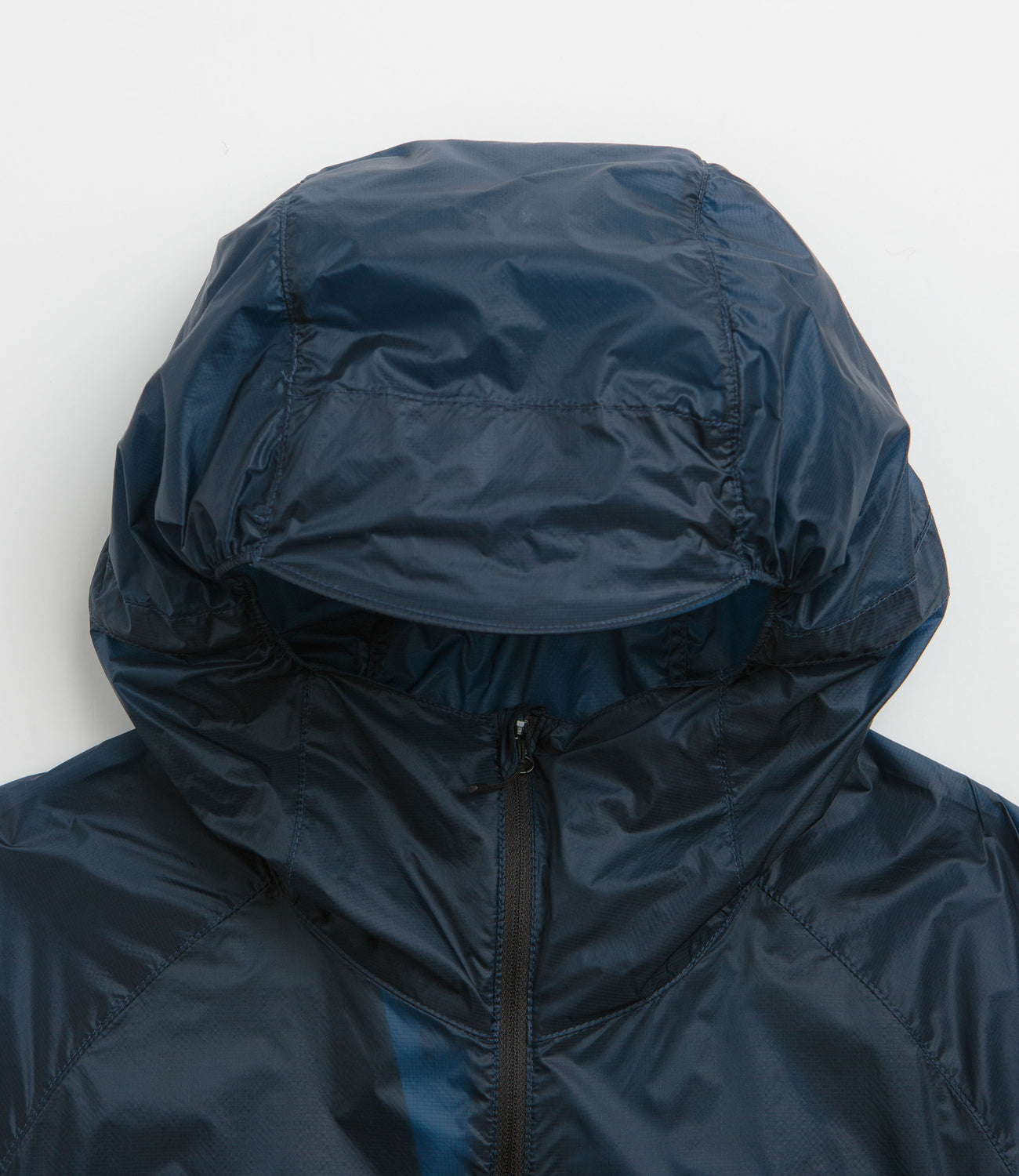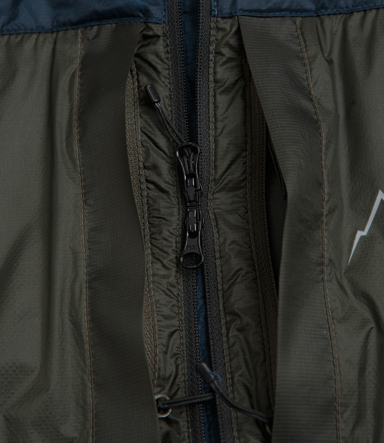 Ready for trails, summits, and sudden changes in weather, this jacket combines lightweight 12D nylon with a DWR-coated, wind-resistant shell to keep you moving comfortably outdoors. The split panel hood and raglan sleeves allow freedom of movement, while elasticated cuffs and an adjustable hem help lock out the elements. Practical details like a two-way full-length zipper, zippered chest pockets, and front hand pockets keep essentials close at hand, and its packable design makes it easy to carry when the adventure calls.