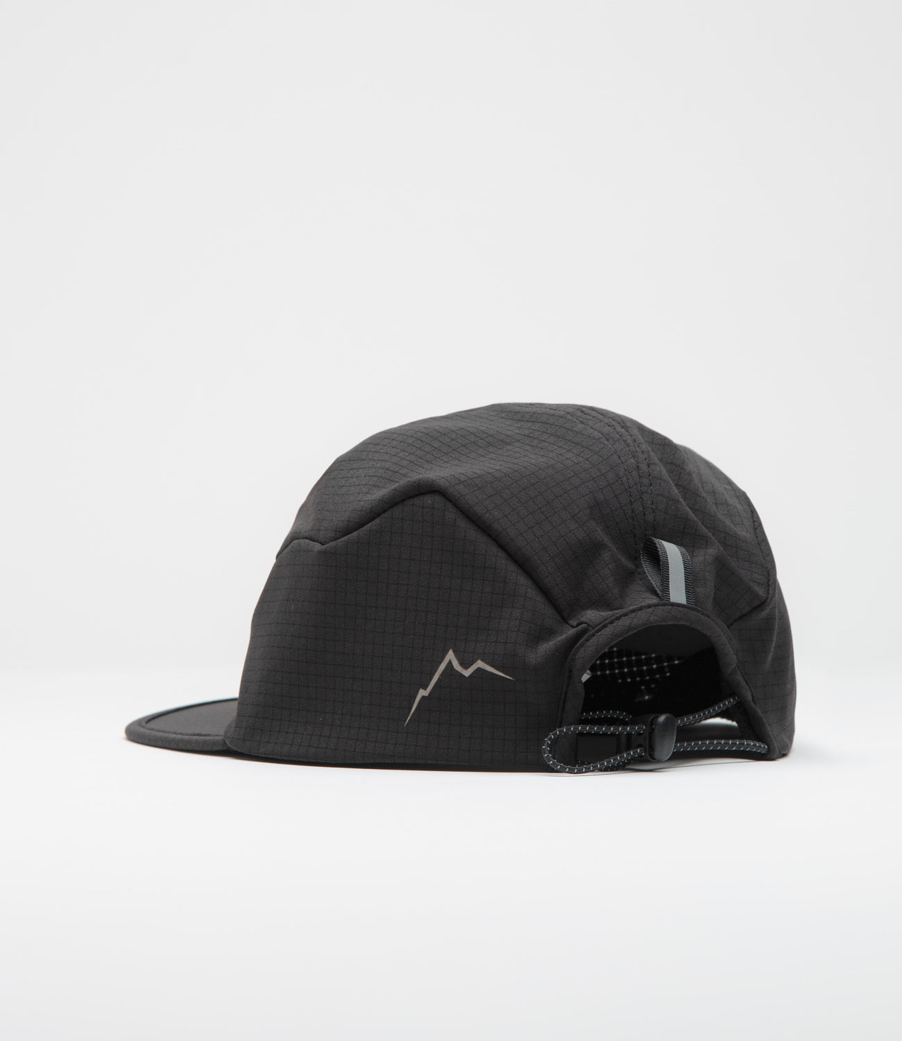 Cayl Flow Cap in Black. Crafted from a polyester-spandex blend, this six panel Cayl cap is designed with a slightly curved peak and ventilated Spanmesh fabric. Featuring a slightly curved peak, this black Cayl cap is finished with an adjustable rear fastening and printed branding.