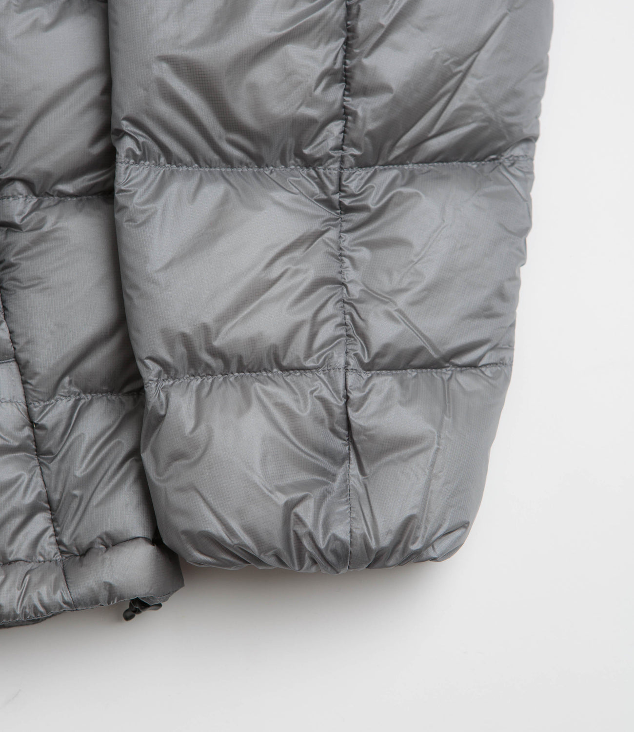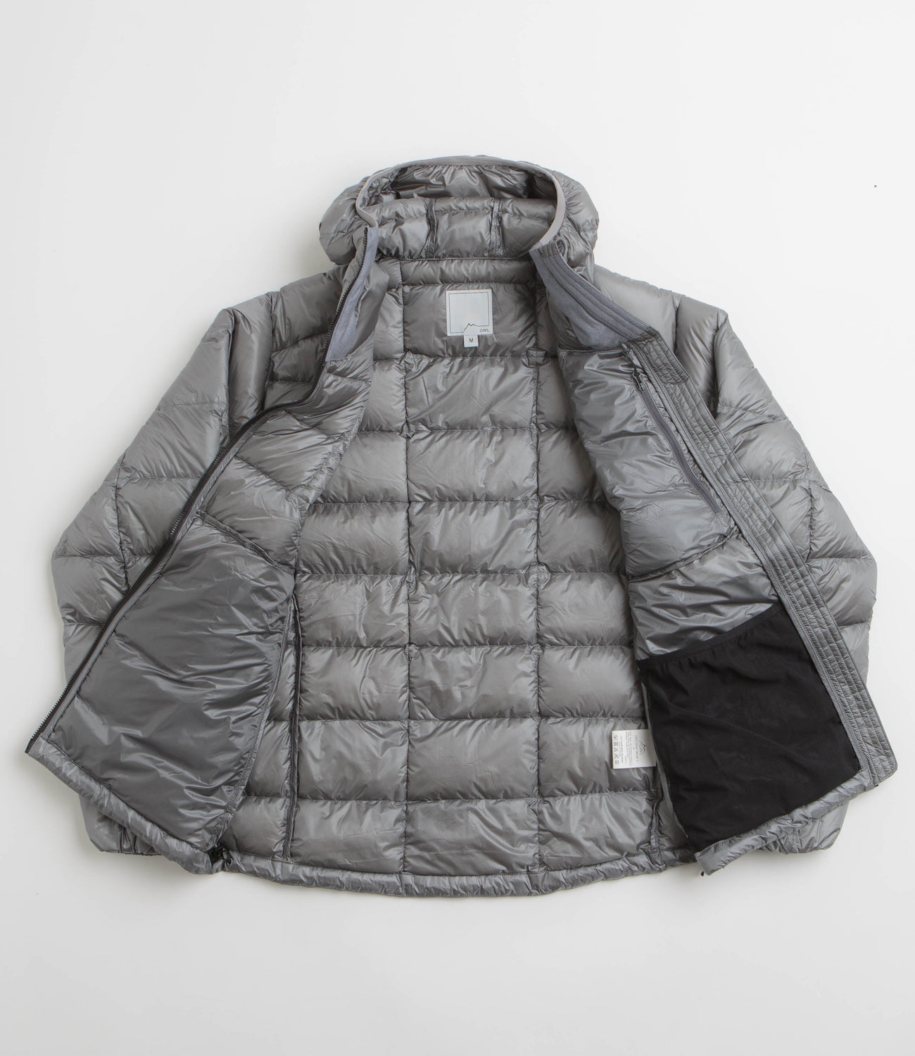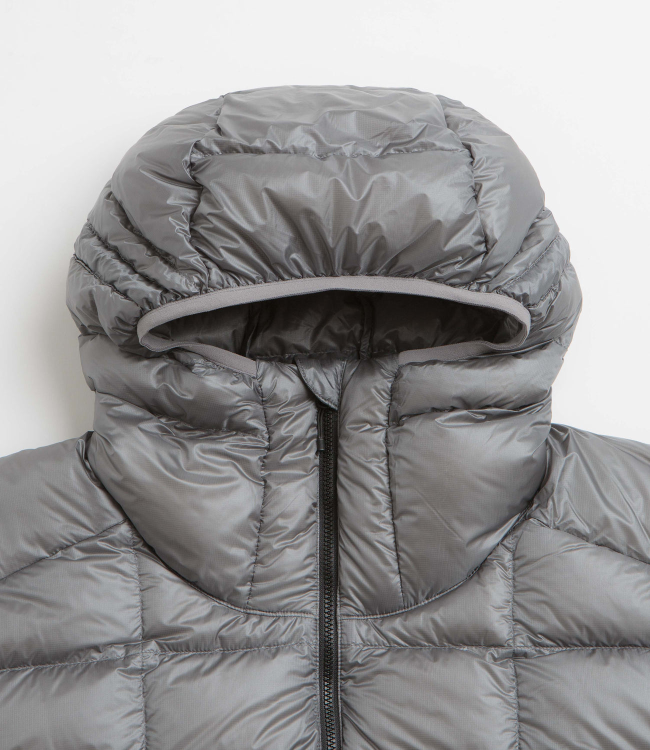 Cayl Light Down 2 Jacket in Grey. Designed with 900+ fill power insulation and heat-preserving technology, this Cayl jacket is styled with a nylon 10D Pertex Quantum shell. Packable with a two-way zipper fastening, an adjustable hood and elasticated cuffs, this grey Cayl jacket also features four front pockets and a DWR coating. Finished with a toggle-cord hem and printed logo branding.