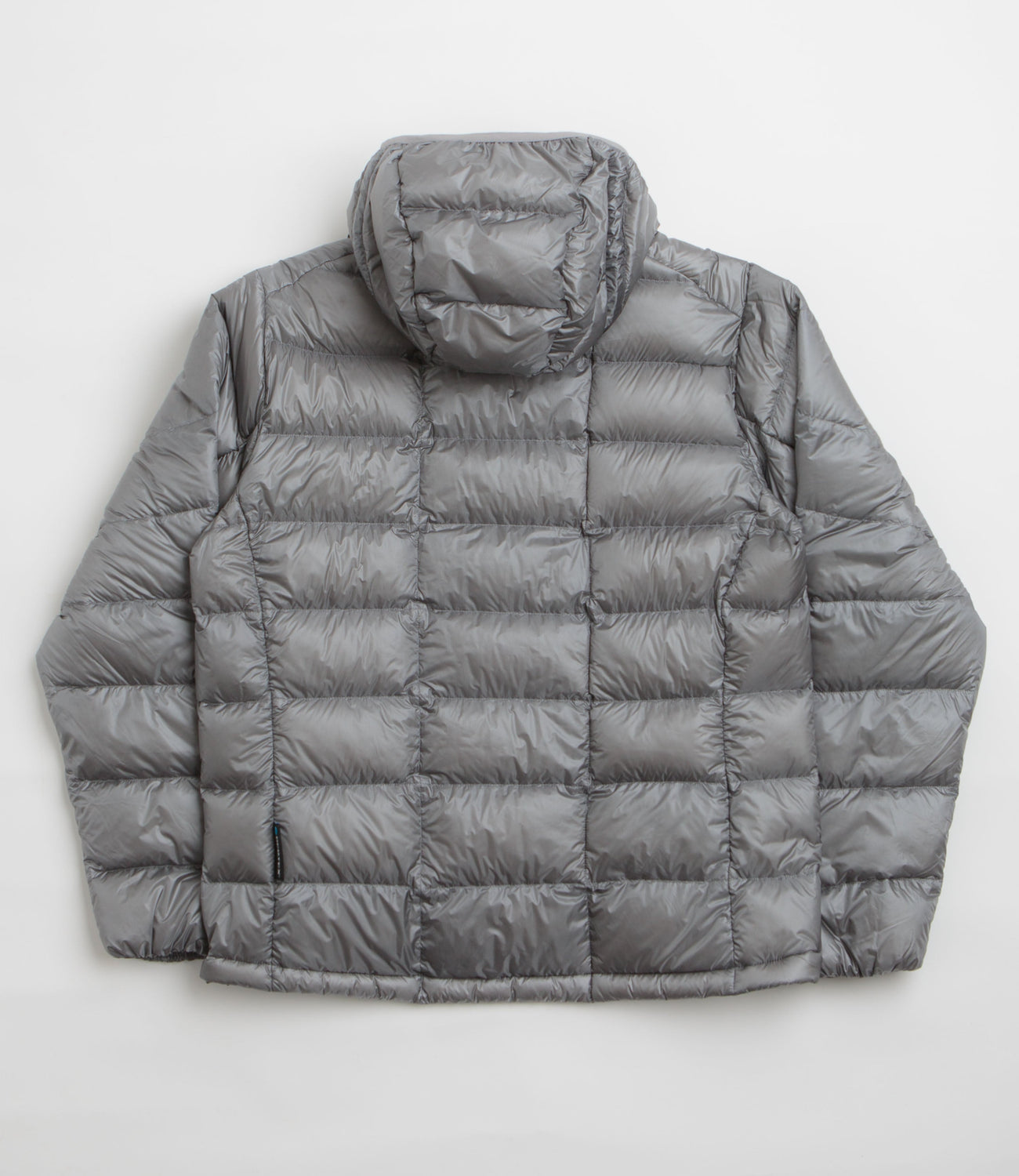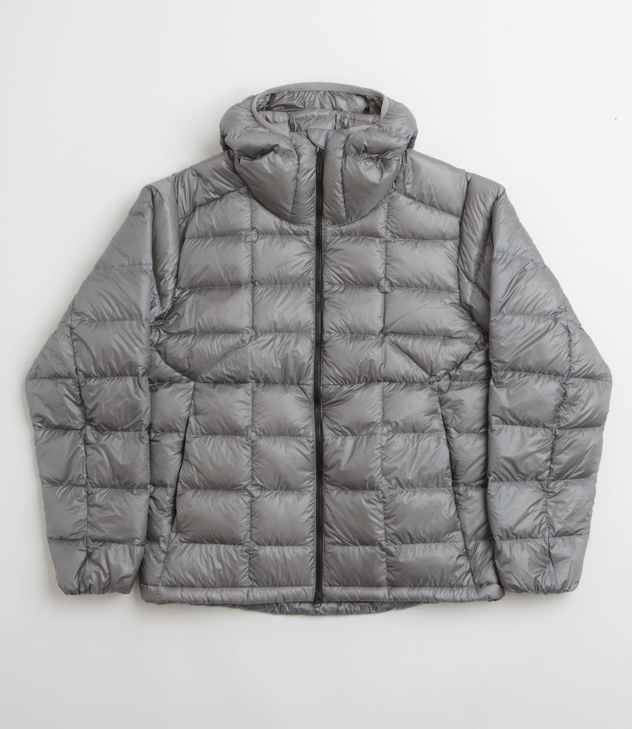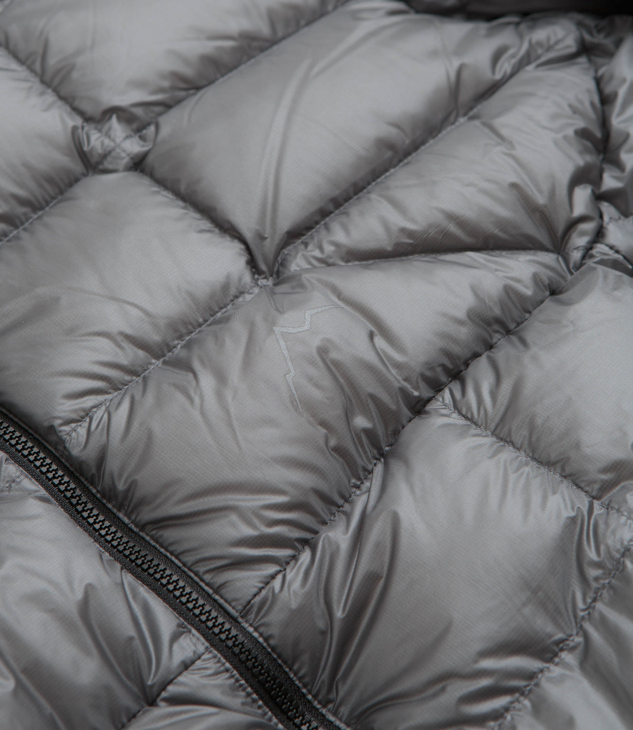 Cayl Light Down 2 Jacket in Grey. Designed with 900+ fill power insulation and heat-preserving technology, this Cayl jacket is styled with a nylon 10D Pertex Quantum shell. Packable with a two-way zipper fastening, an adjustable hood and elasticated cuffs, this grey Cayl jacket also features four front pockets and a DWR coating. Finished with a toggle-cord hem and printed logo branding.